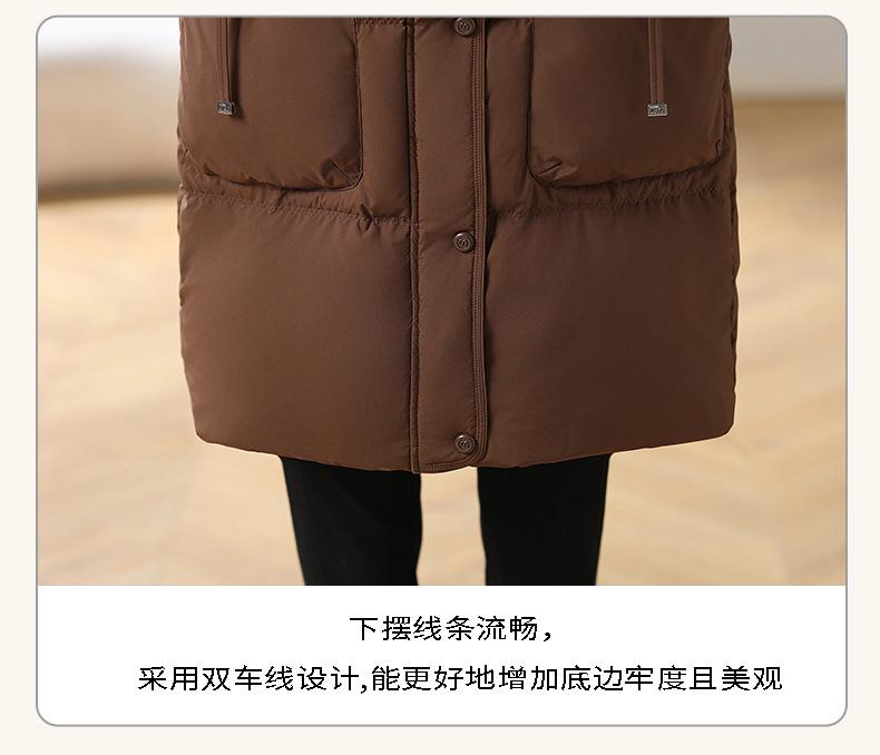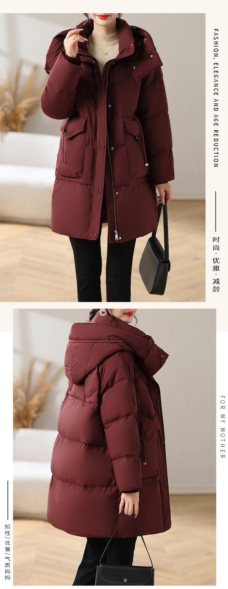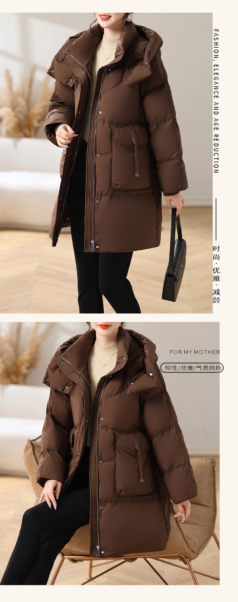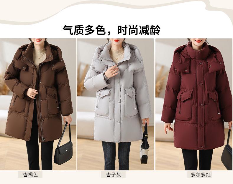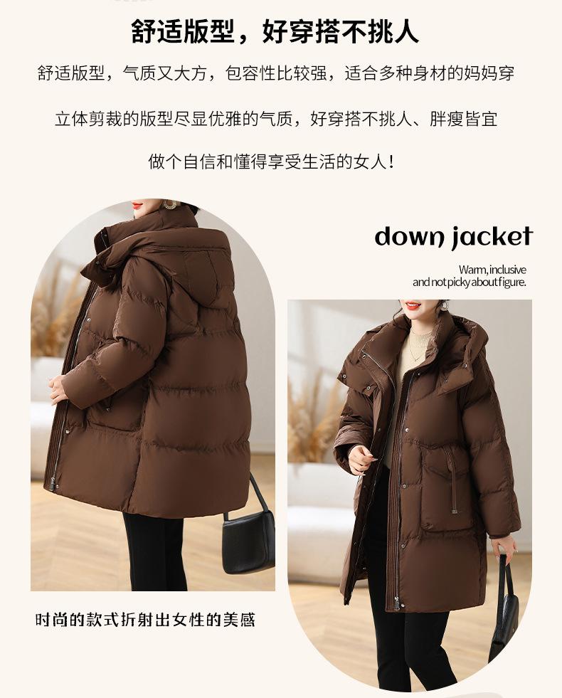 Chaqueta de plumón con capucha de longitud media para madre, nuevo estilo, estilo occidental, gruesa, cálida, ropa de invierno para mujeres de mediana edad y mayores, abrigo acolchado de algodón de talla grande
