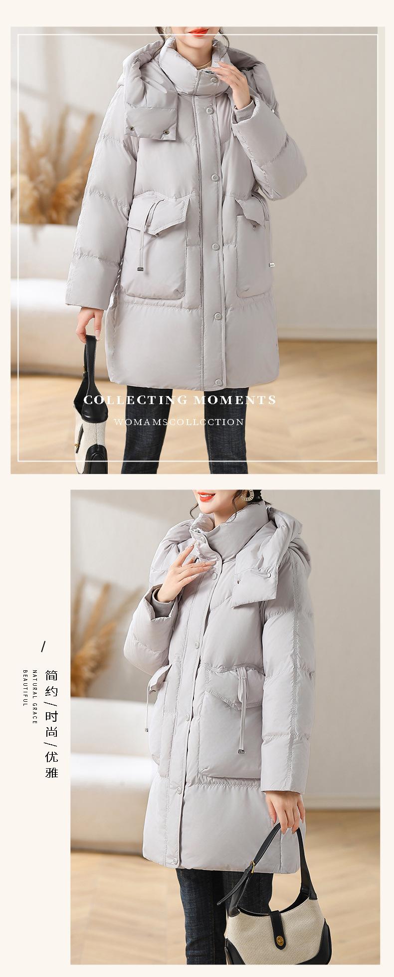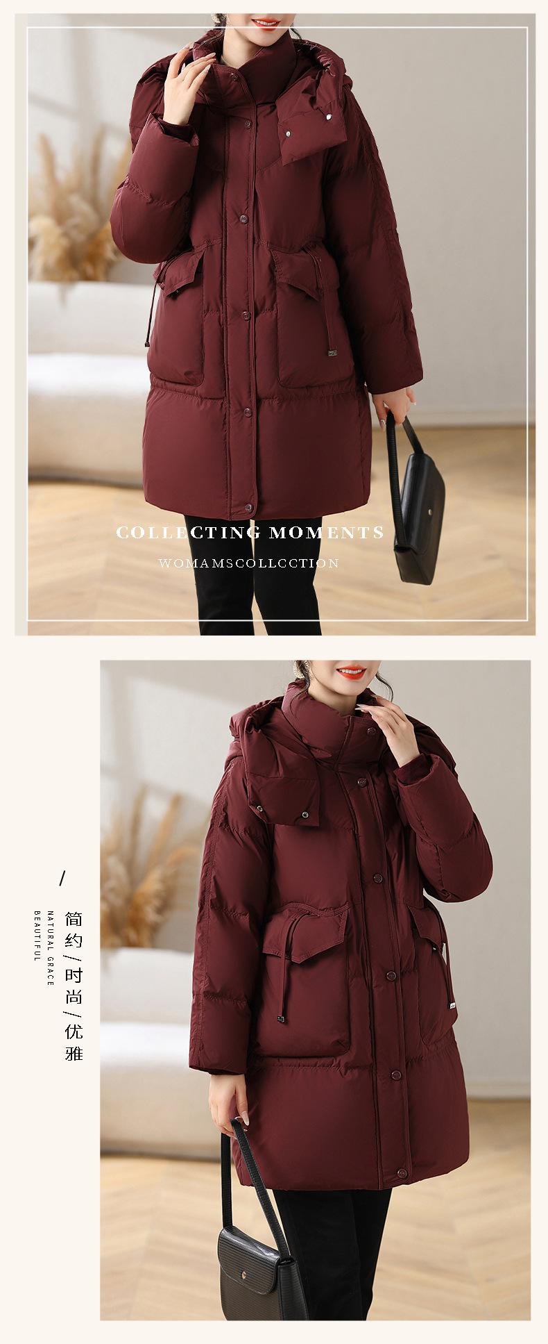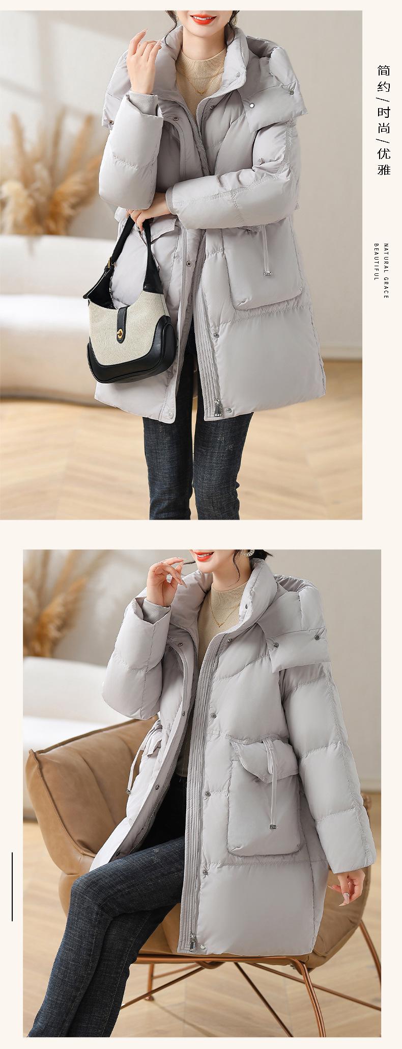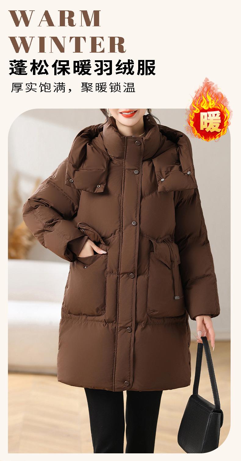 Chaqueta de plumón con capucha de longitud media para madre, nuevo estilo, estilo occidental, gruesa, cálida, ropa de invierno para mujeres de mediana edad y mayores, abrigo acolchado de algodón de talla grande