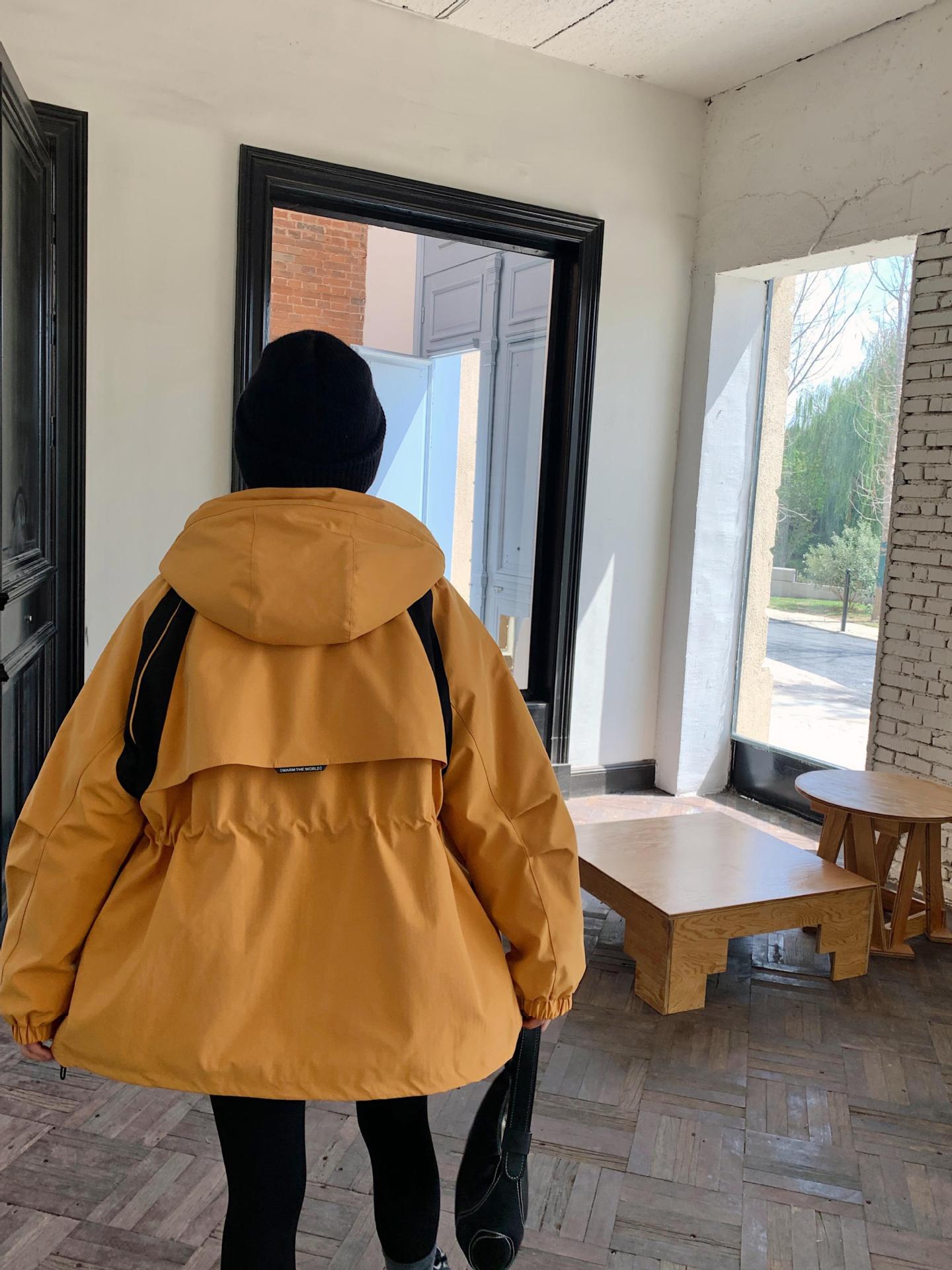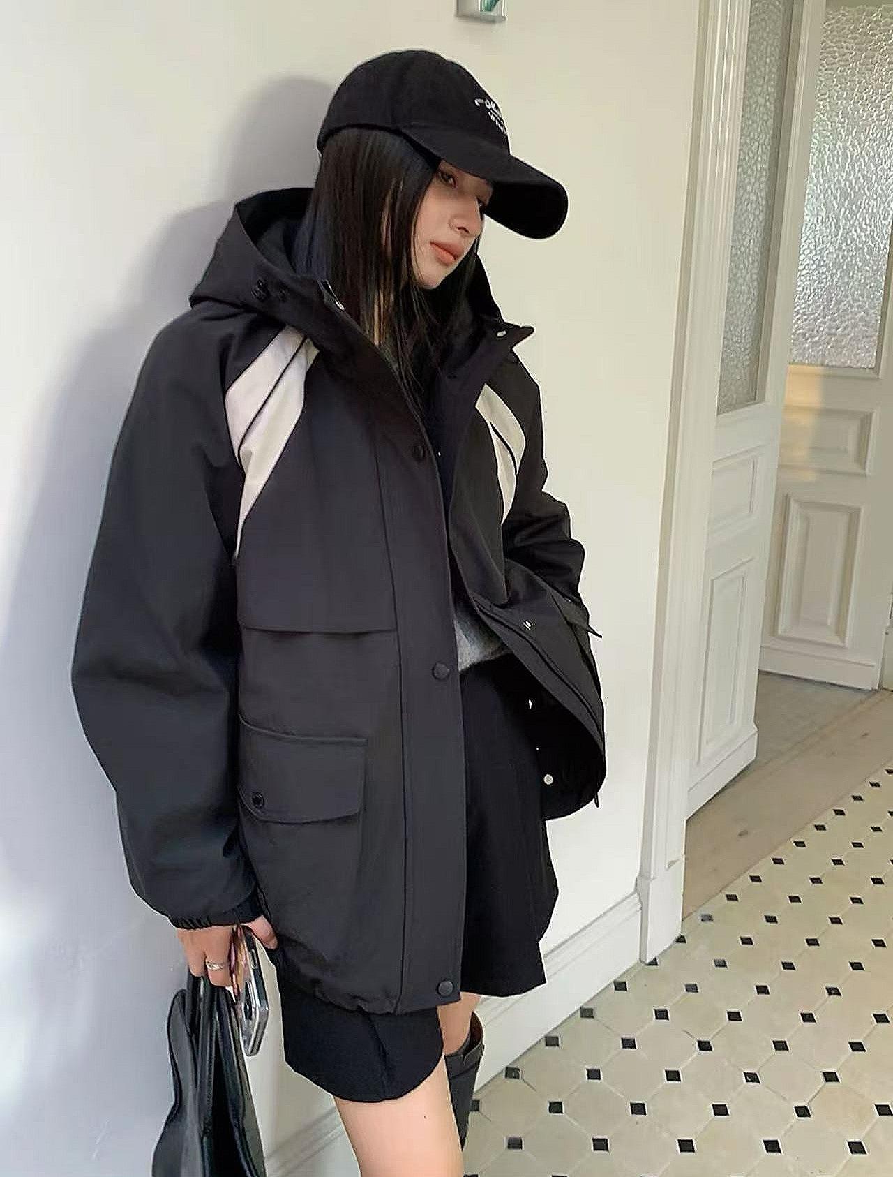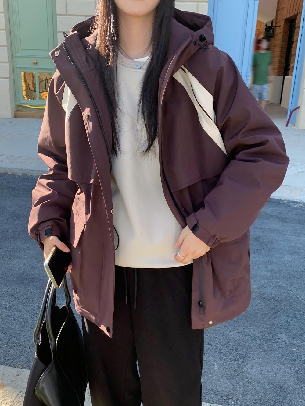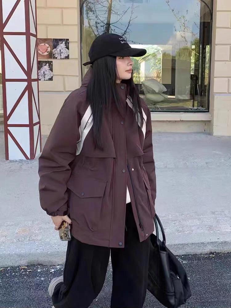 Abrigo Parker Europeo con Capucha Abrigo de Algodón para Mujer 2024 Otoño e Invierno Nuevo Cintura Casual Abrigo Acolchado de Contraste Algodón