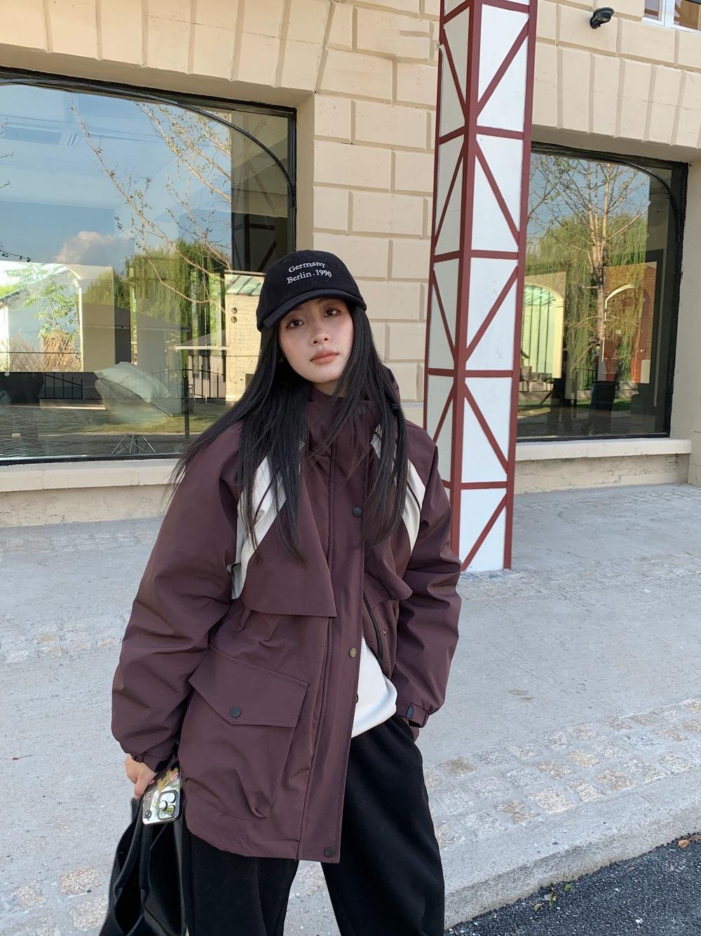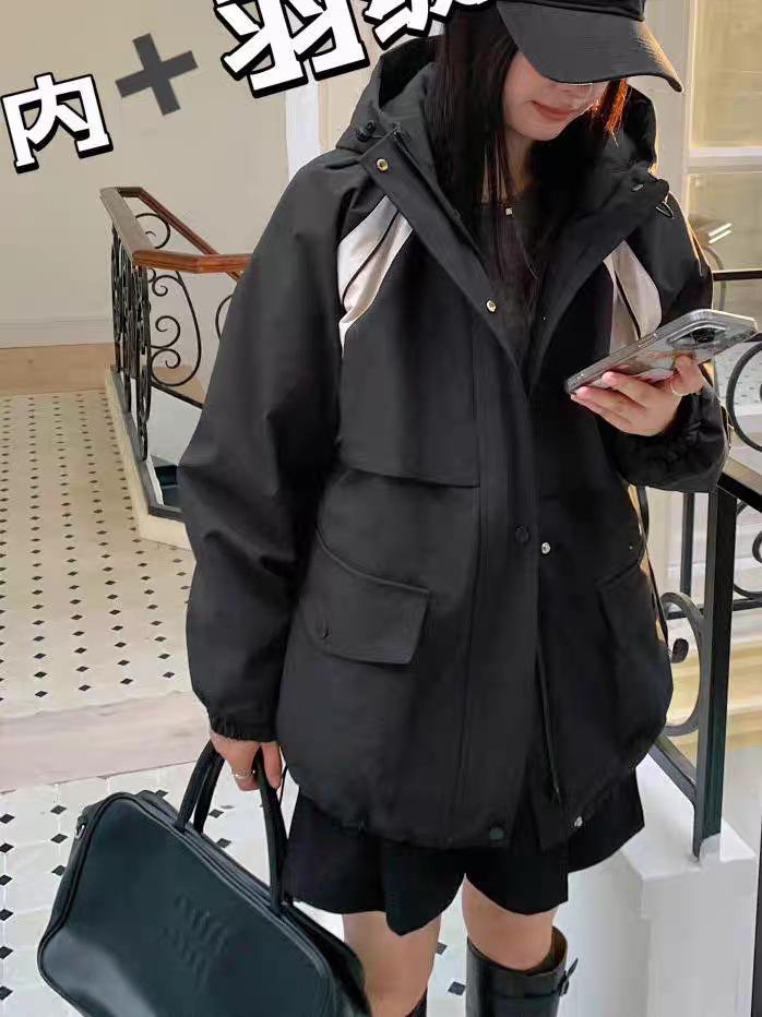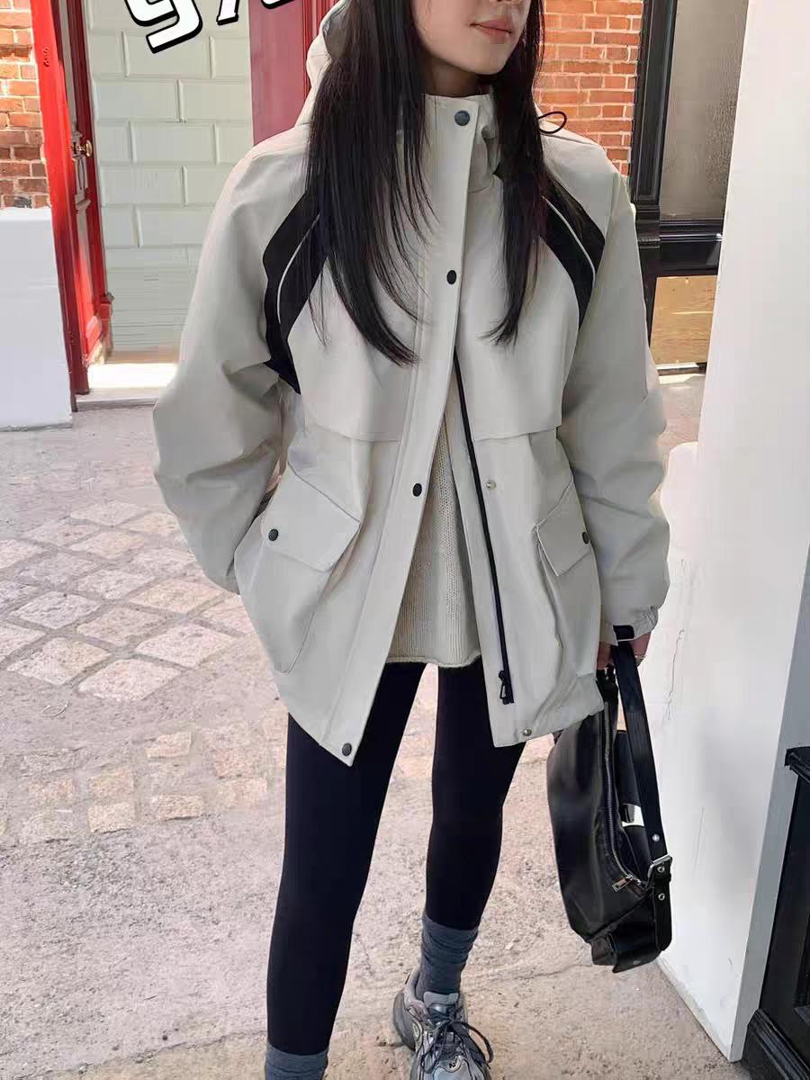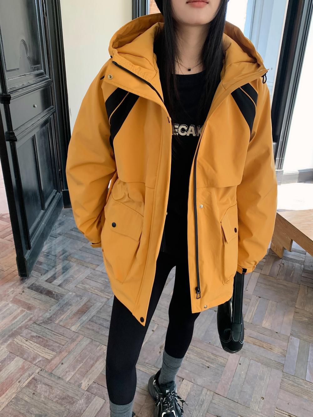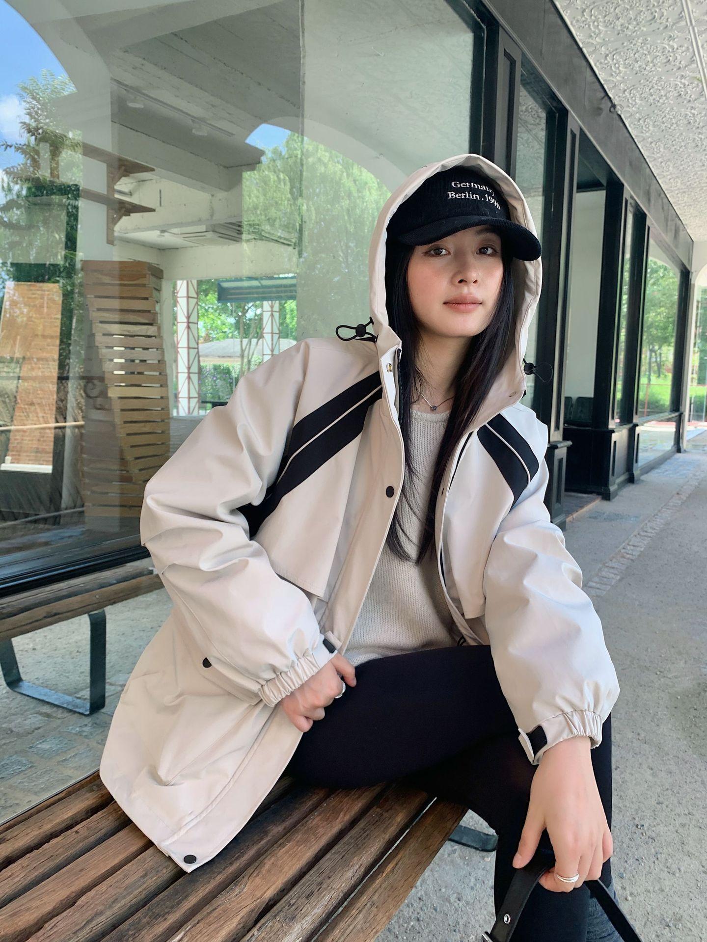 Abrigo Parker Europeo con Capucha Abrigo de Algodón para Mujer 2024 Otoño e Invierno Nuevo Cintura Casual Abrigo Acolchado de Contraste Algodón