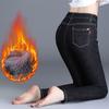 Pantalones vaqueros ajustados de mujer con forro polar, ajustados, de cintura alta y elásticos, para otoño e invierno.