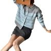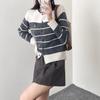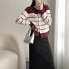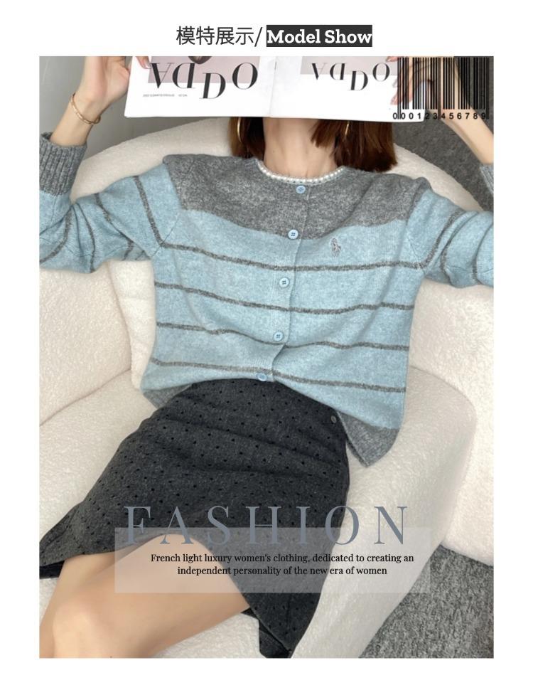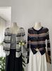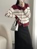 Suéter Holgado Slim Retro Color Block Rayado con Bordado de Pony de un Solo Botón Cárdigan de Punto Top para Mujer X2450