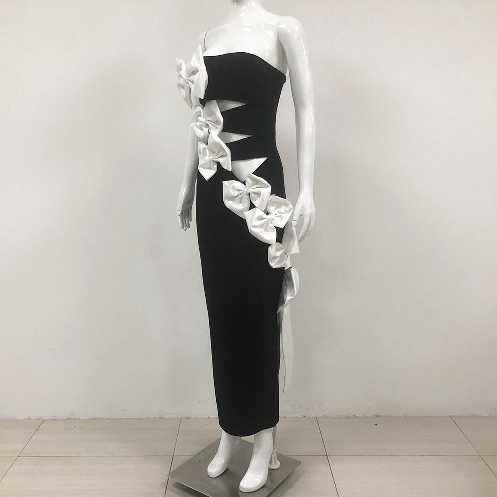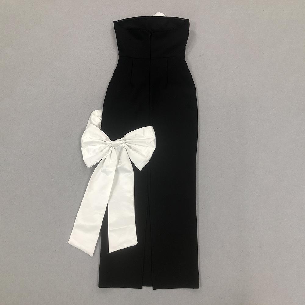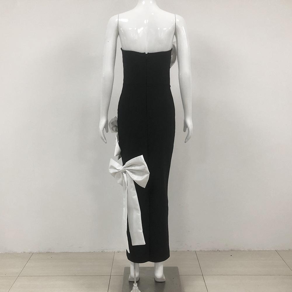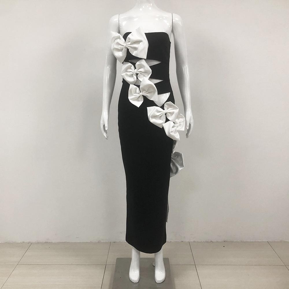 Vestido de fiesta negro sencillo de moda con falda de vendaje con lazo tridimensional sin tirantes transfronterizo europeo y americano de otoño 2024