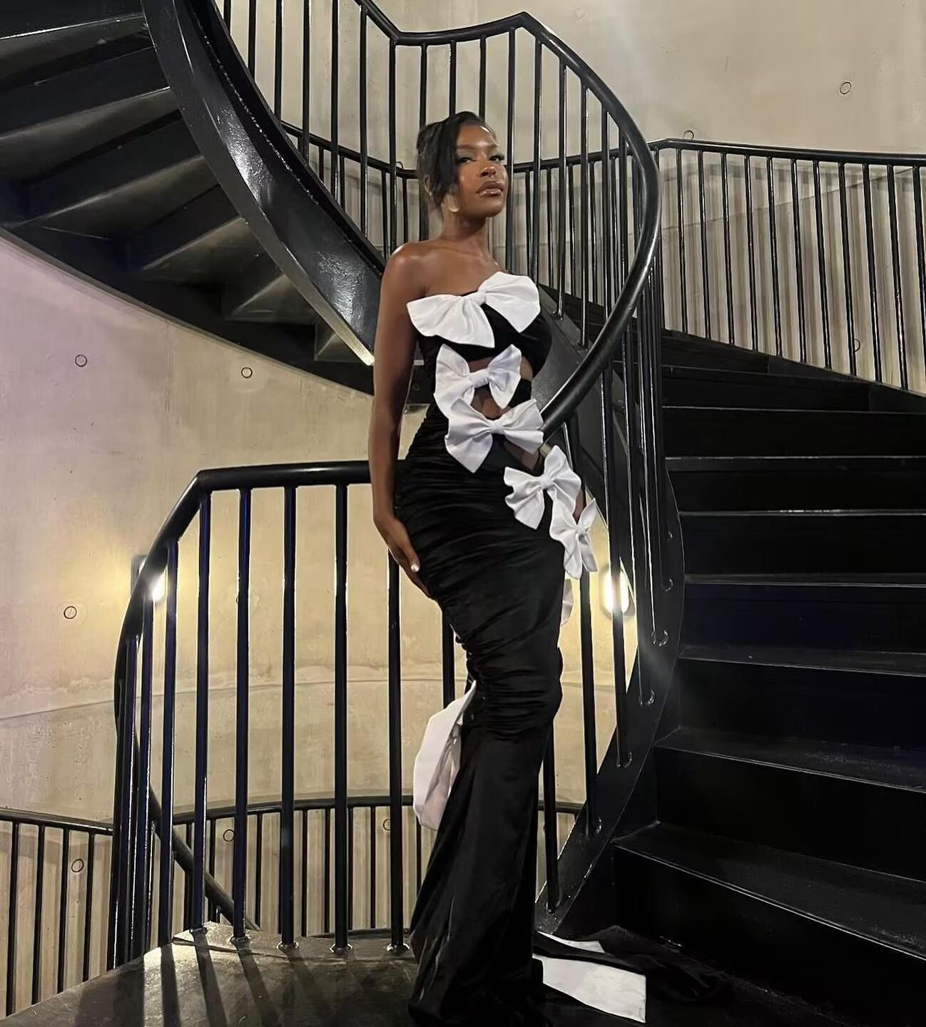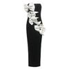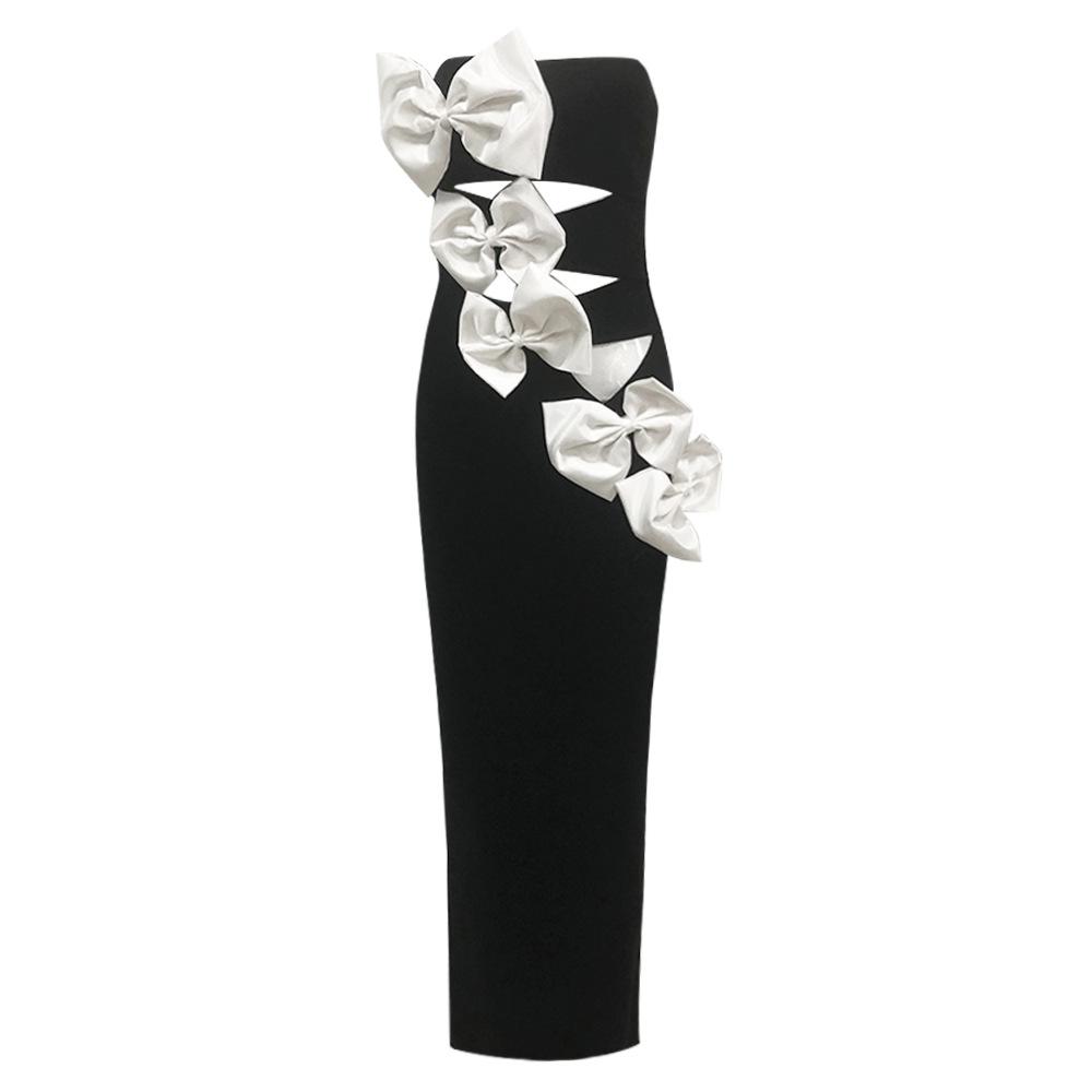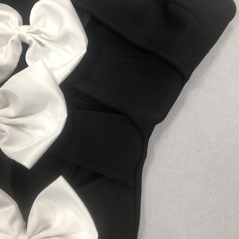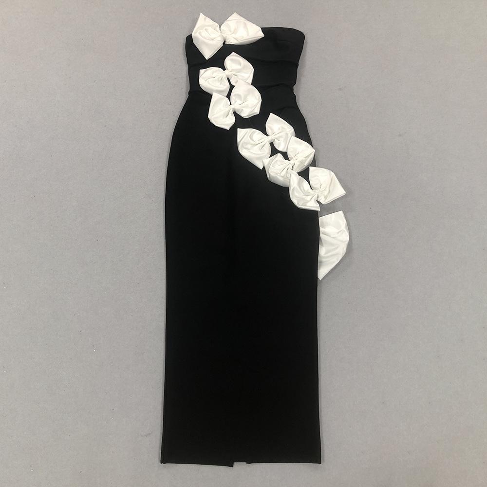 Vestido de fiesta negro sencillo de moda con falda de vendaje con lazo tridimensional sin tirantes transfronterizo europeo y americano de otoño 2024