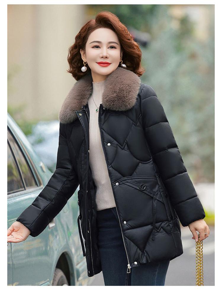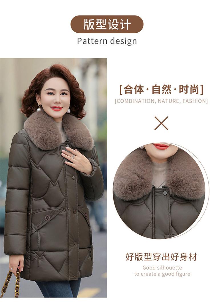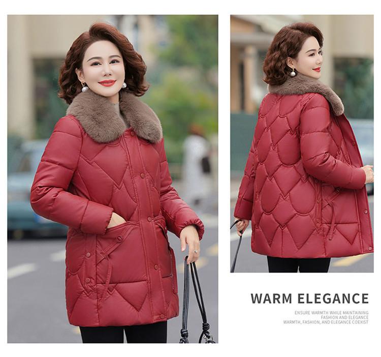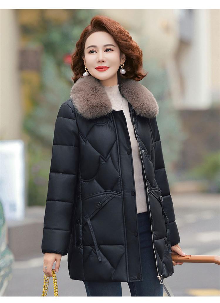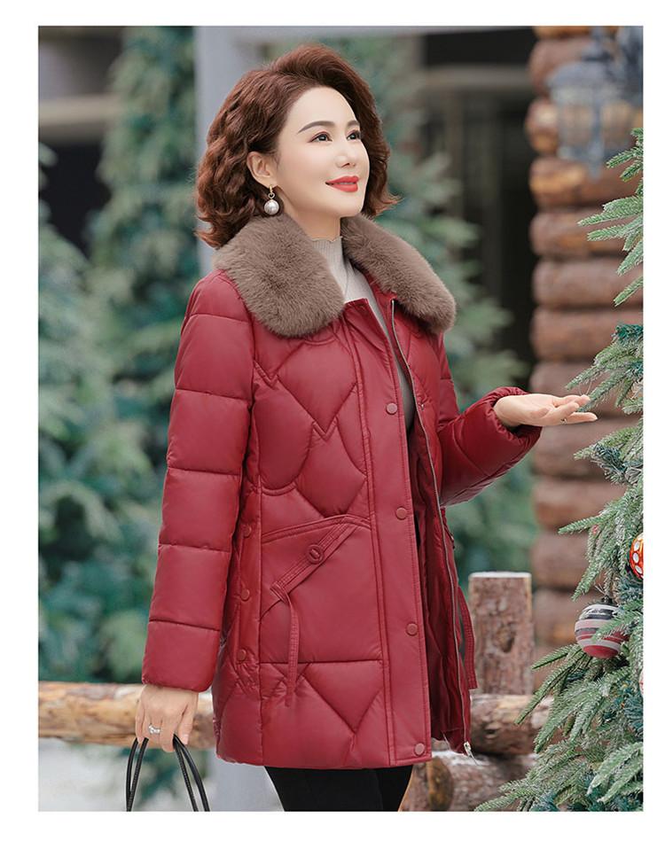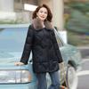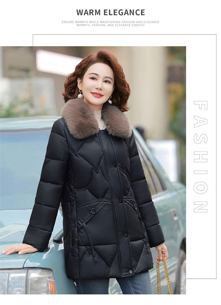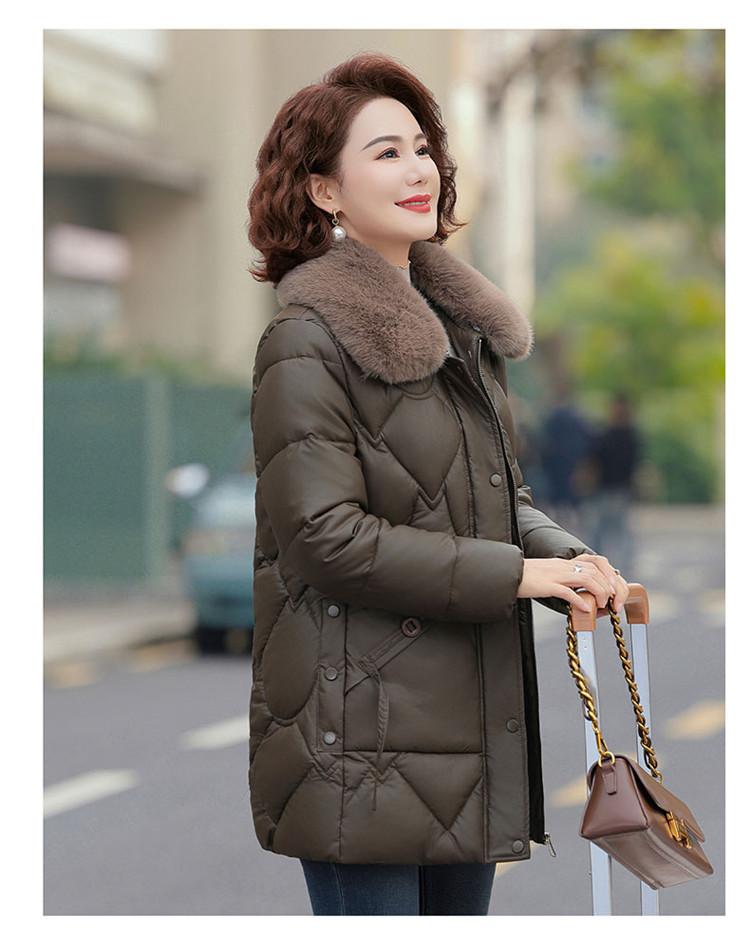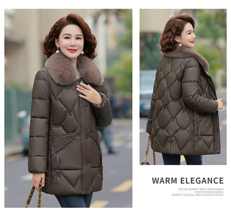 Ropa de Temperamento para Madre Invierno 2024 Nuevo Abrigo de Algodón de Cuero Repujado a Cuadros Diamante Color Puro Talla Grande Largo Medio Abrigo de Algodón Cálido