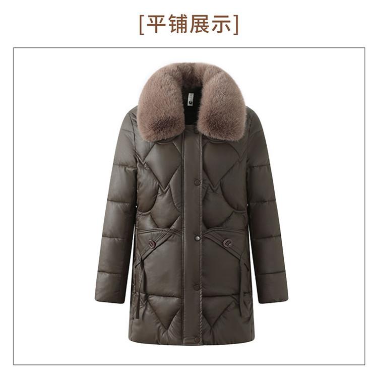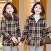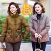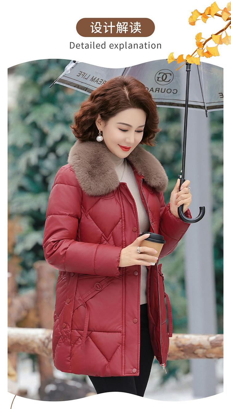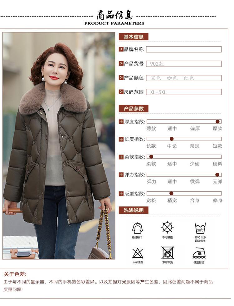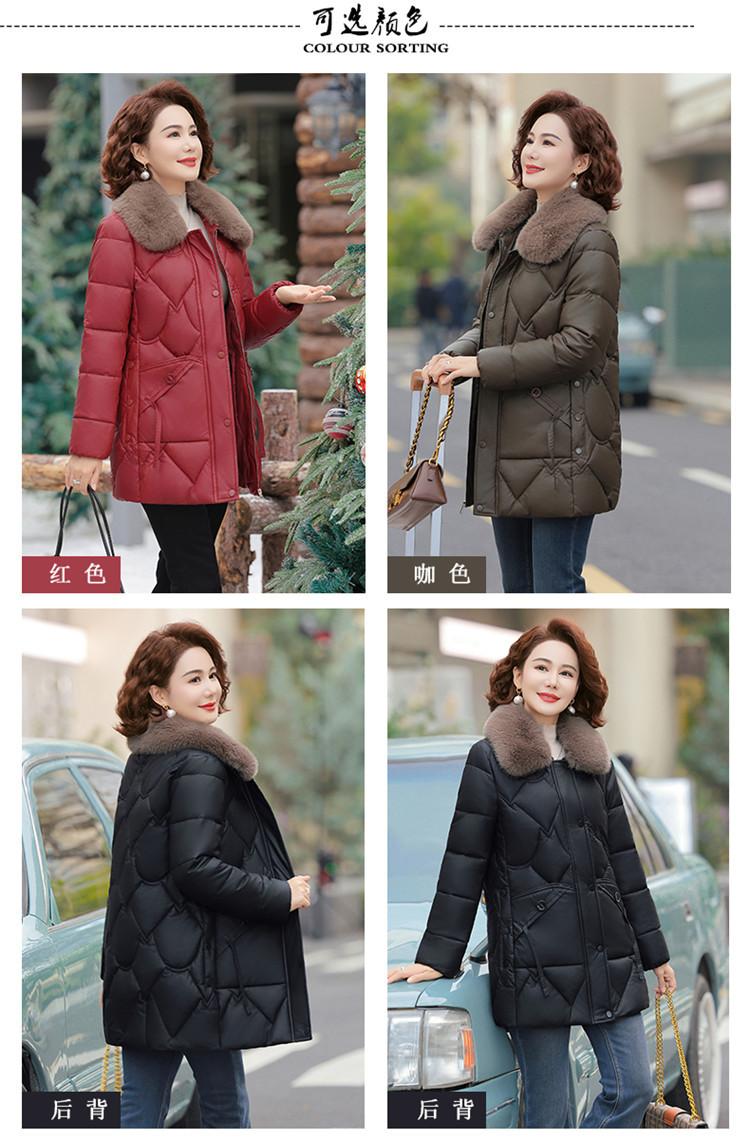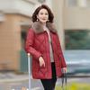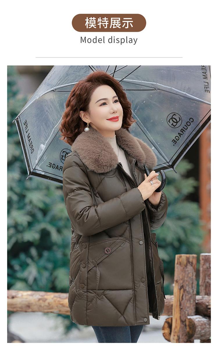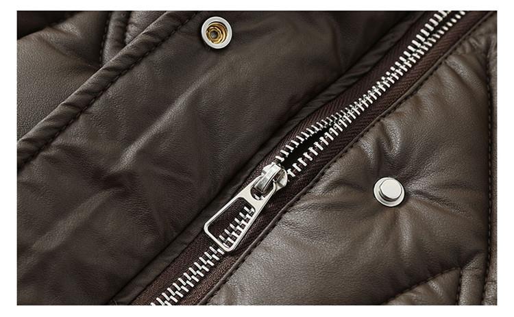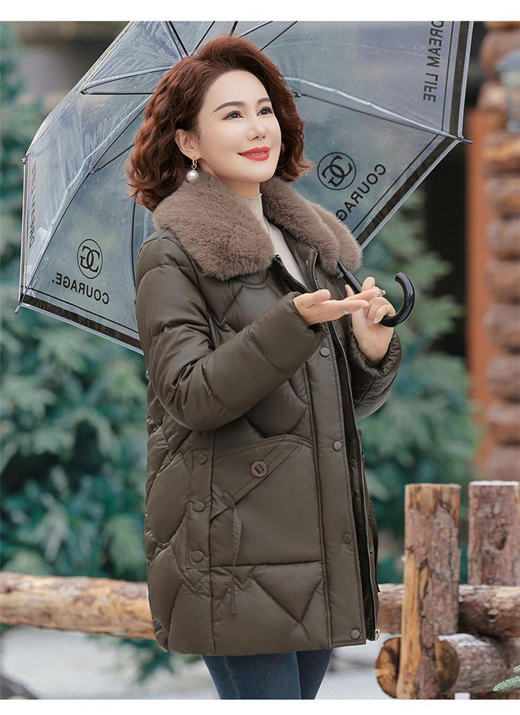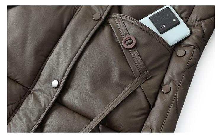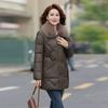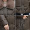 Ropa de Temperamento para Madre Invierno 2024 Nuevo Abrigo de Algodón de Cuero Repujado a Cuadros Diamante Color Puro Talla Grande Largo Medio Abrigo de Algodón Cálido