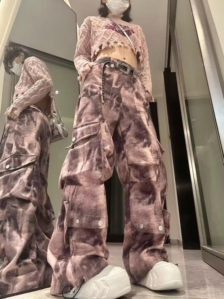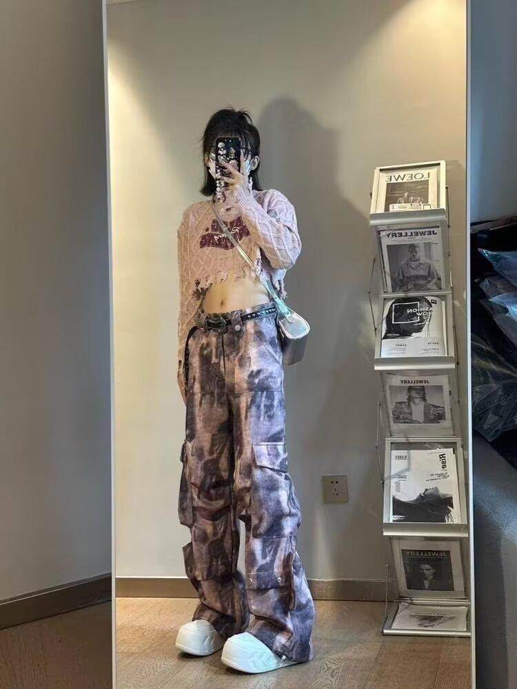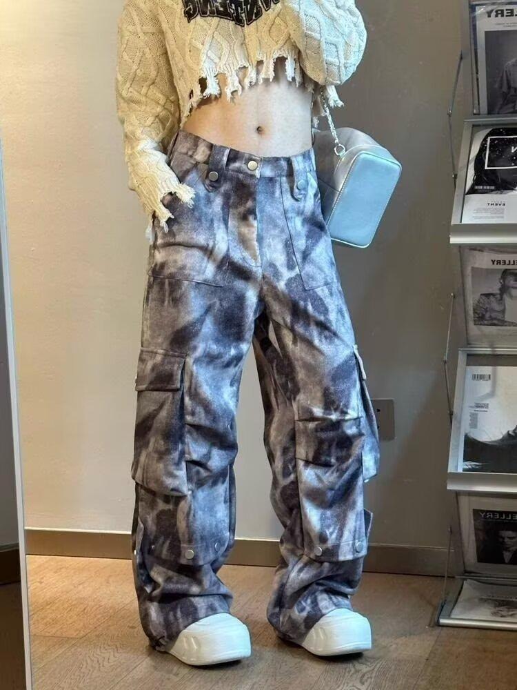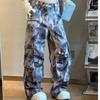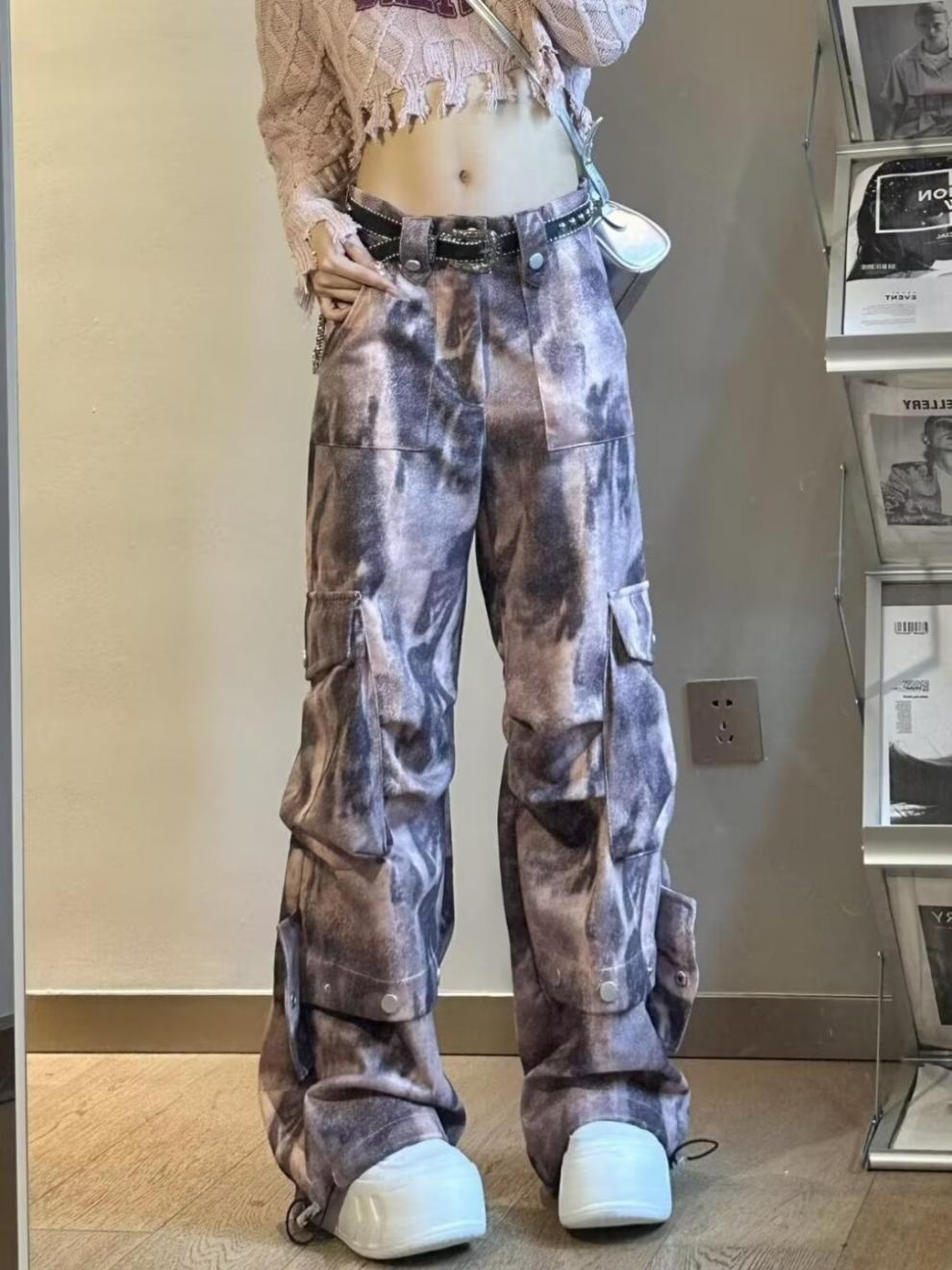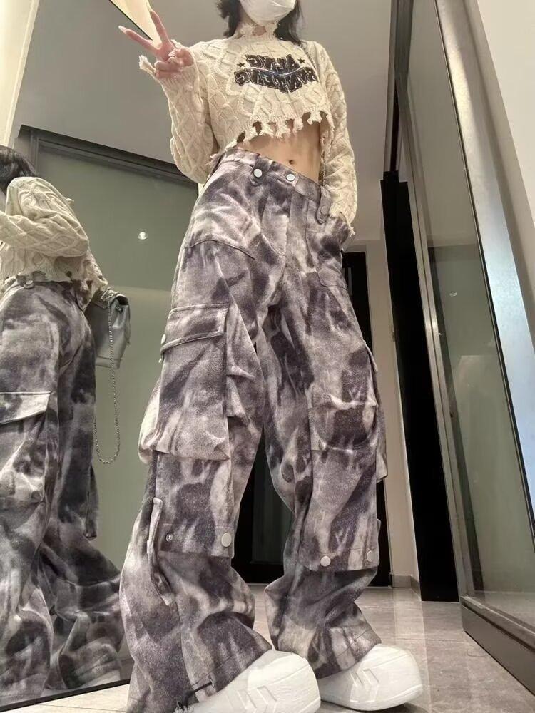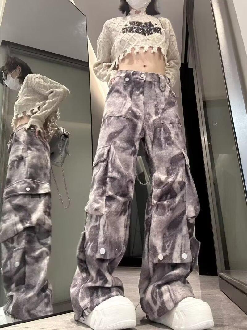 2024 Americano Retro High Street Tie-Dye Otoño Nuevo Pantalón de Bobina Diseño para Mujer Camuflaje Recto Pierna Ancha Primavera y Otoño Largo