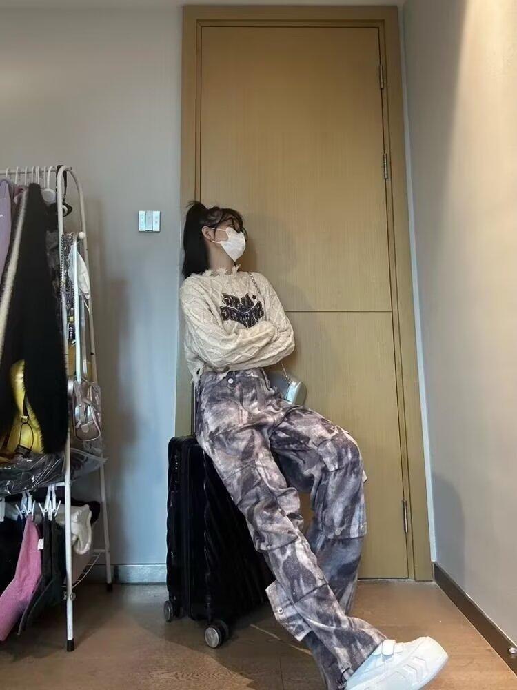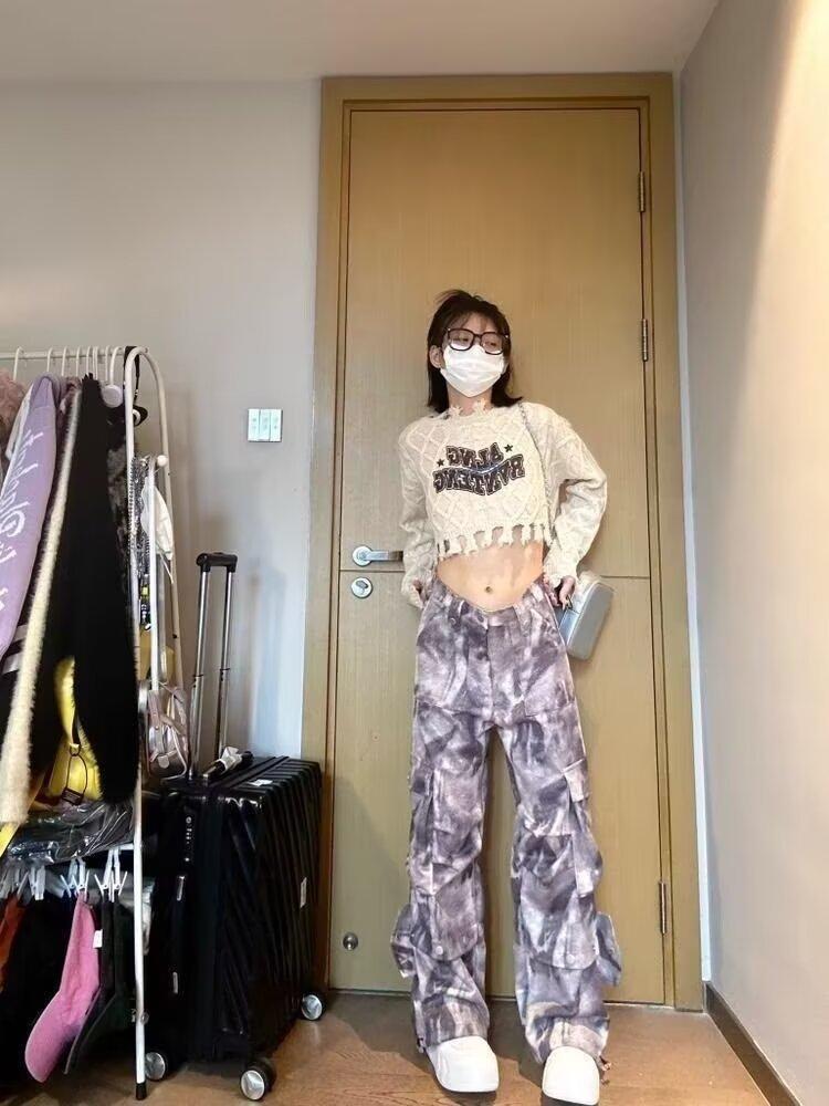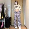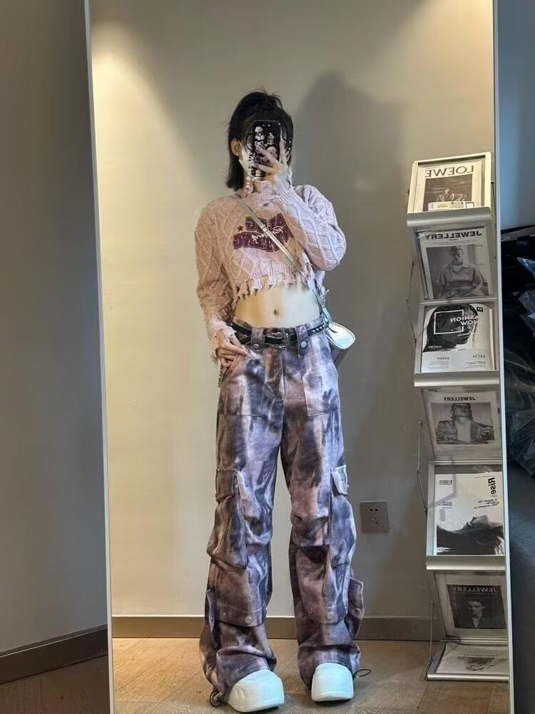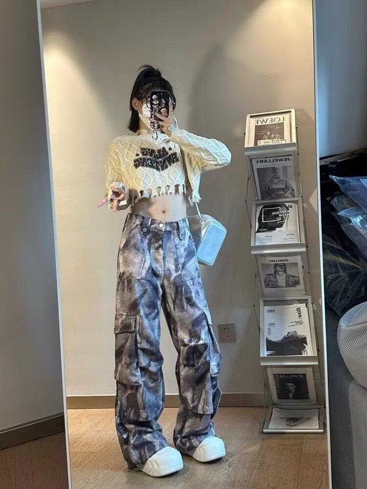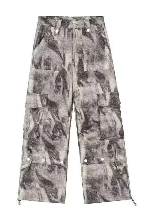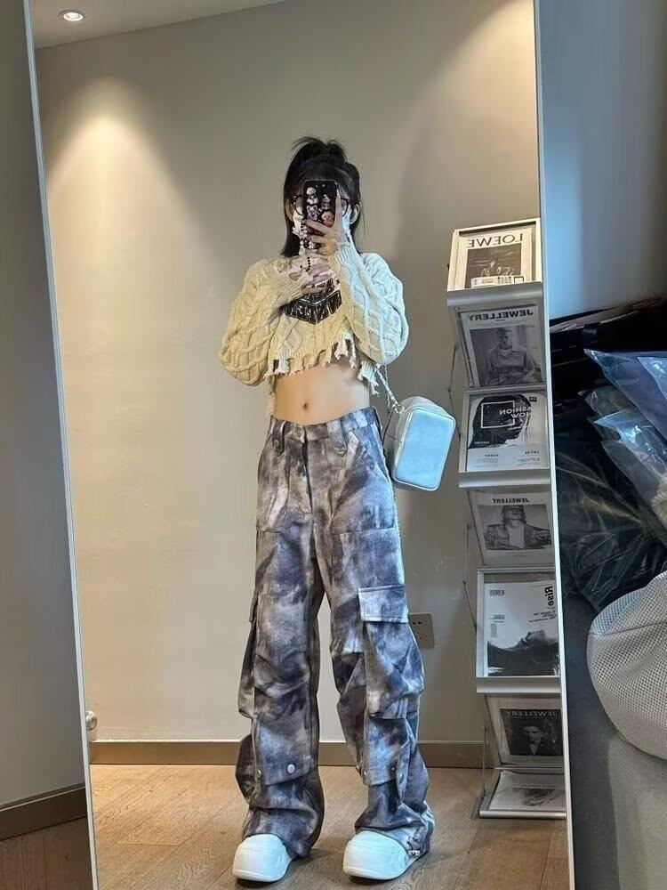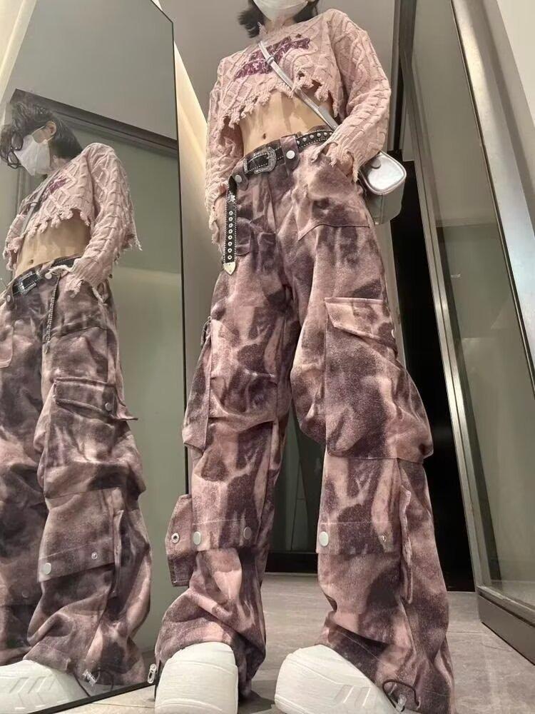 2024 Americano Retro High Street Tie-Dye Otoño Nuevo Pantalón de Bobina Diseño para Mujer Camuflaje Recto Pierna Ancha Primavera y Otoño Largo