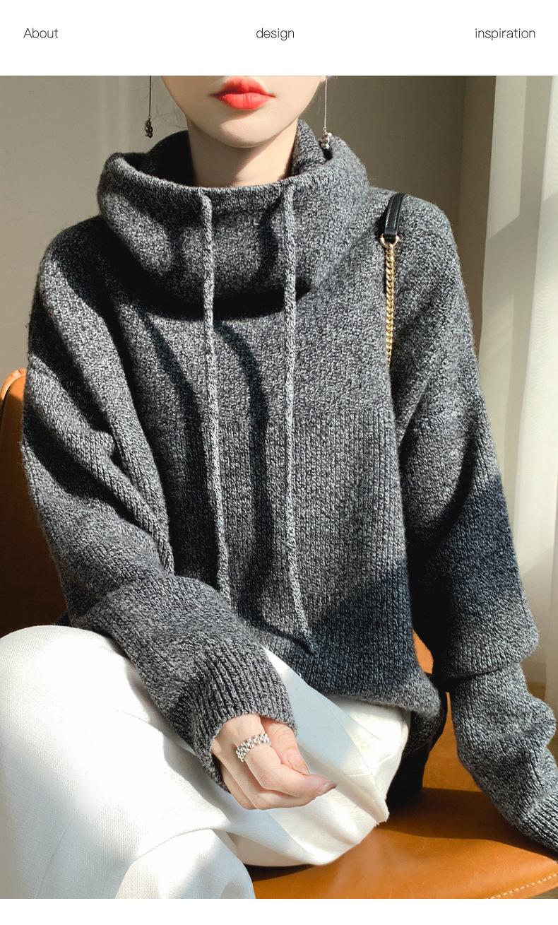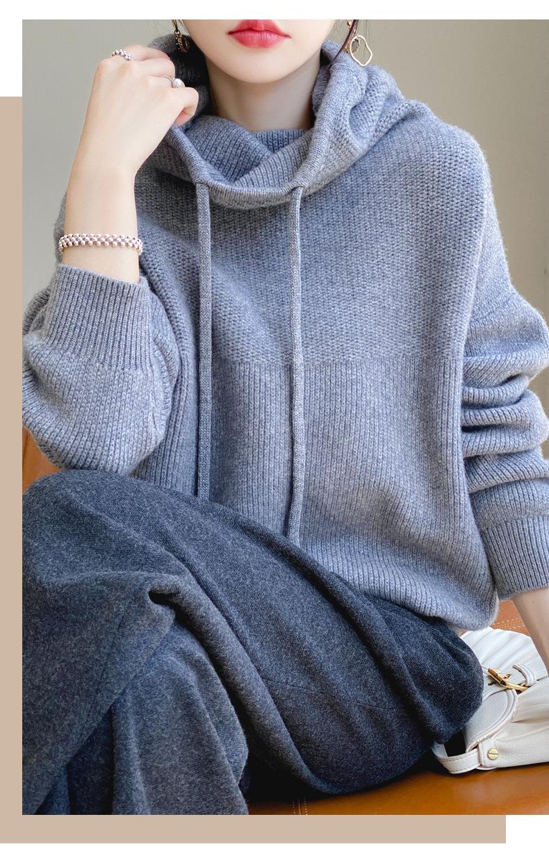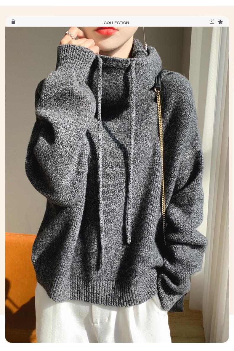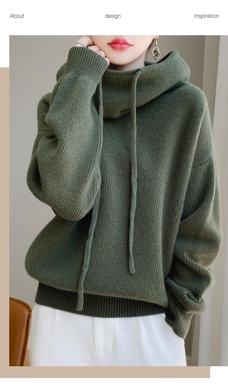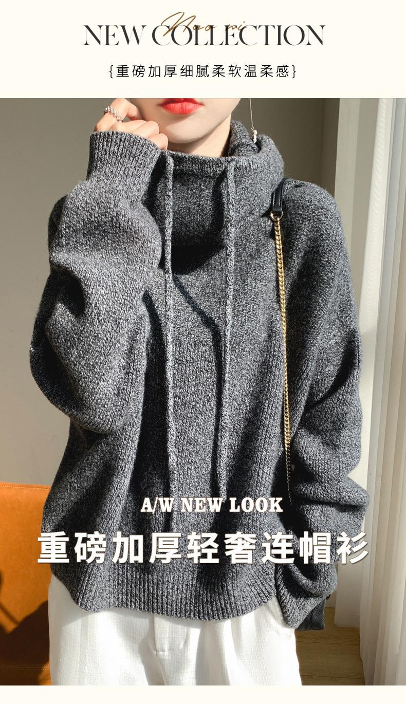 Sudadera con capucha de lana gruesa para mujer, estilo holgazán de otoño e invierno, suéter de punto de cachemira, top tipo jersey cálido y agradable para la piel