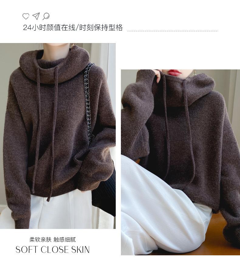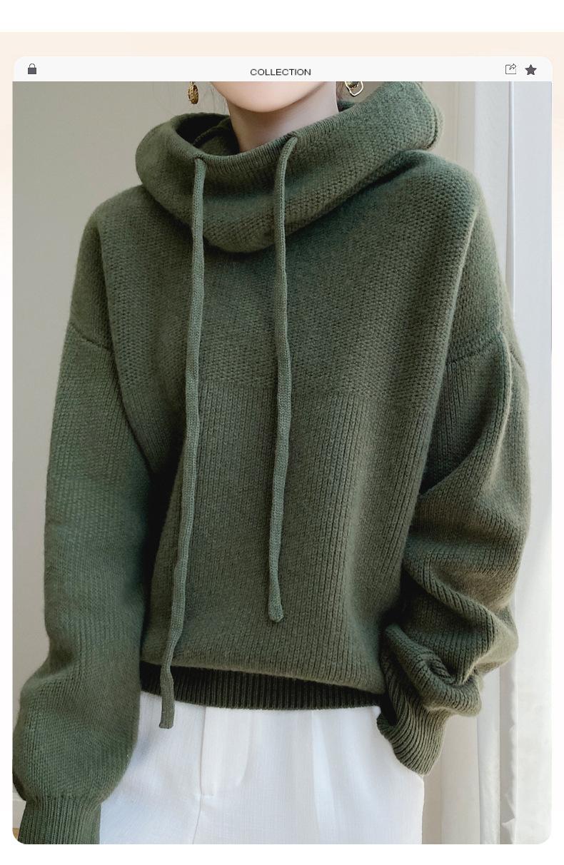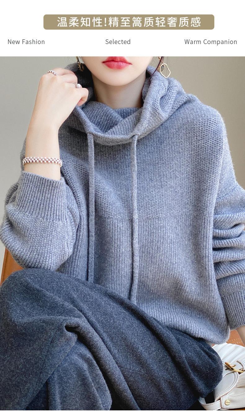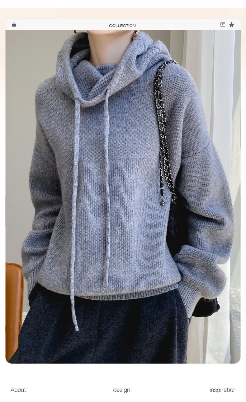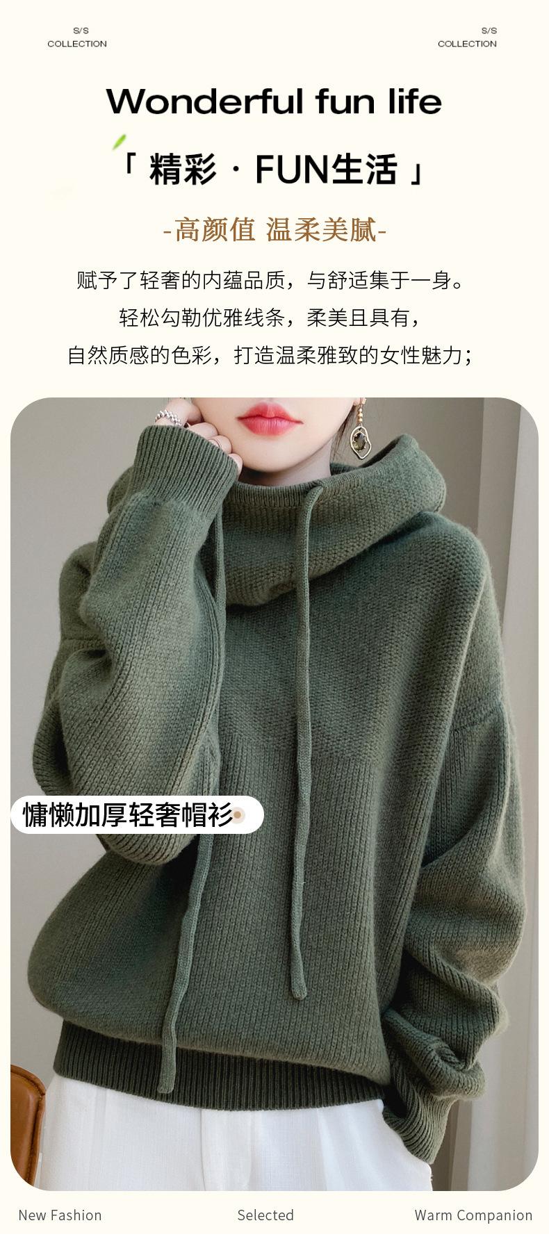Sudadera con capucha de lana gruesa para mujer, estilo holgazán de otoño e invierno, suéter de punto de cachemira, top tipo jersey cálido y agradable para la piel