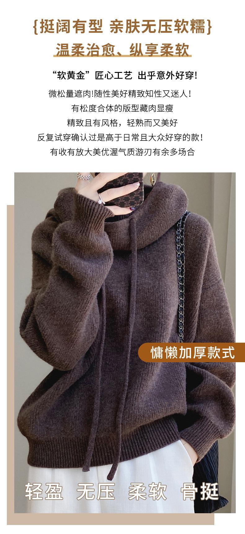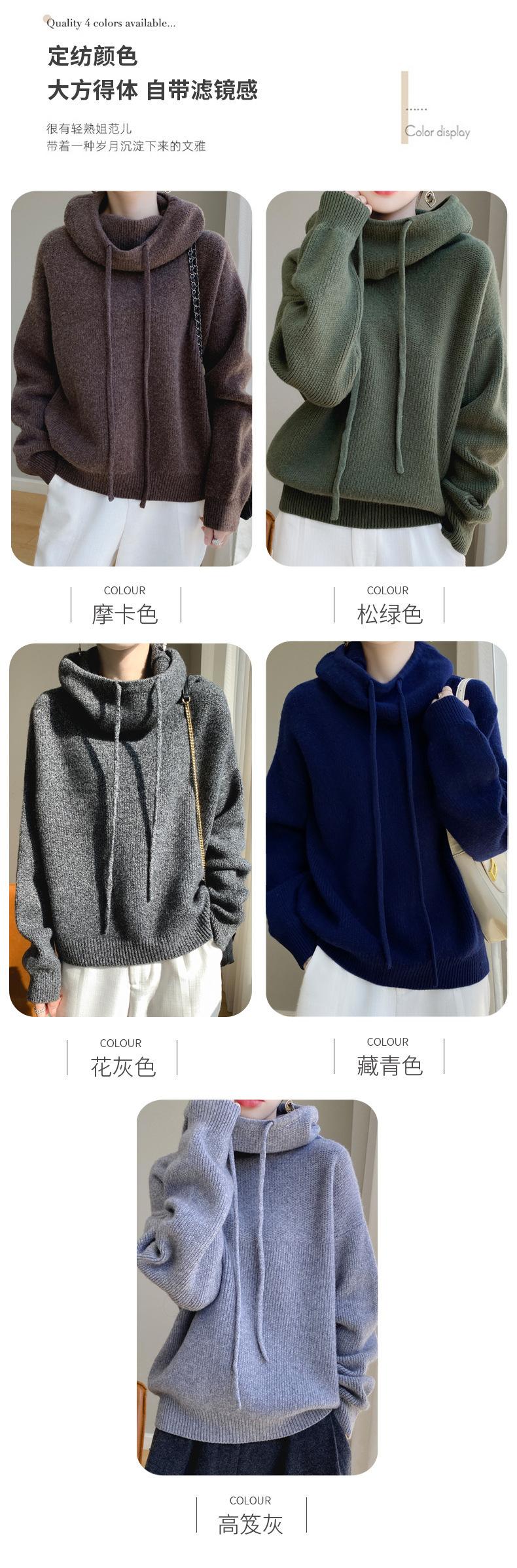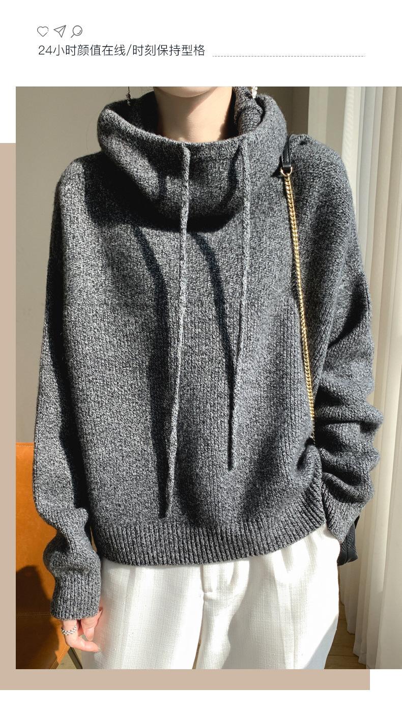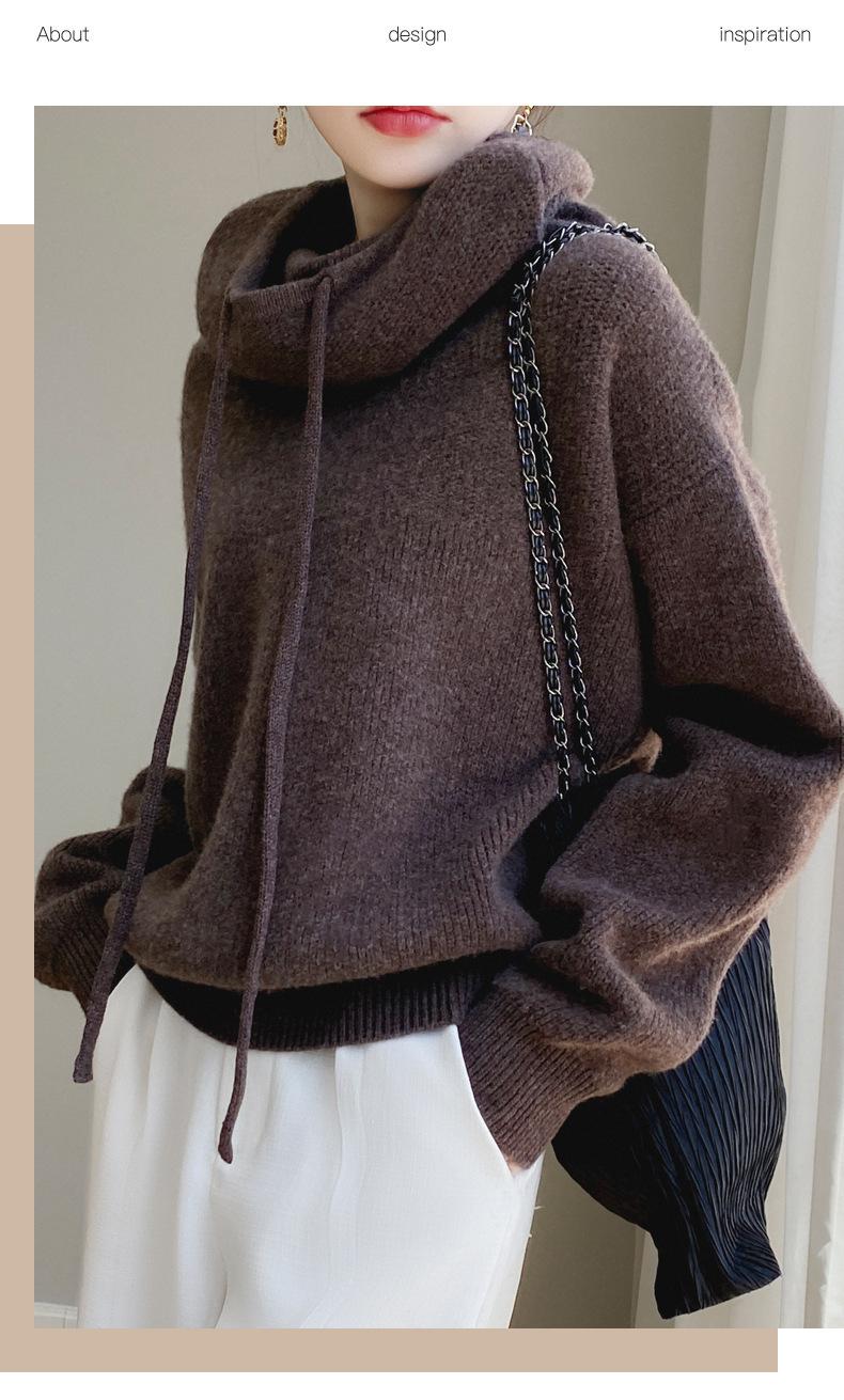 Sudadera con capucha de lana gruesa para mujer, estilo holgazán de otoño e invierno, suéter de punto de cachemira, top tipo jersey cálido y agradable para la piel