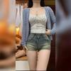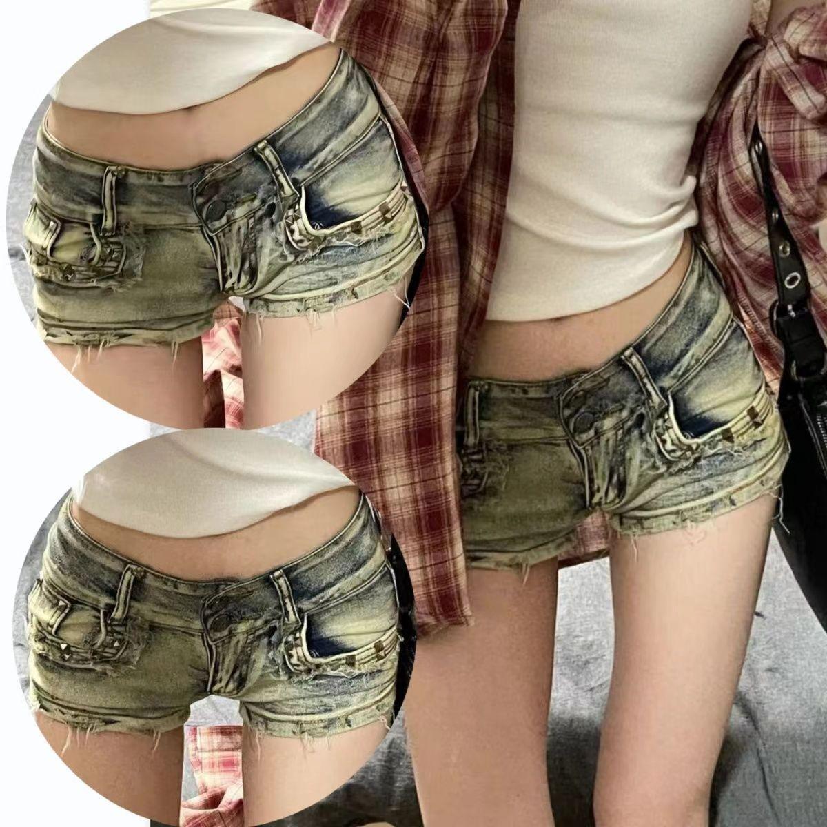 Spice Girls Estilo Americano Shorts de Mezclilla de Cintura Baja para Mujer Verano Nuevo Ajustados Cadera Pantalones Calientes Azul Sexy Pantalones Rectos