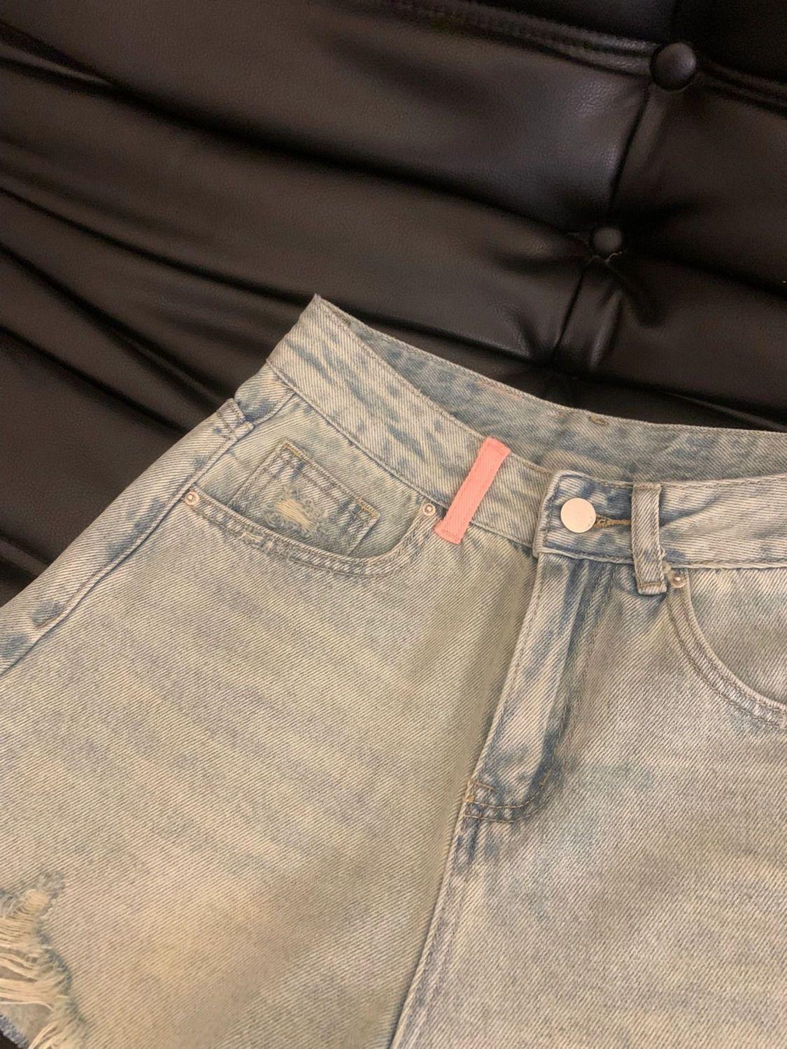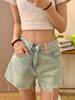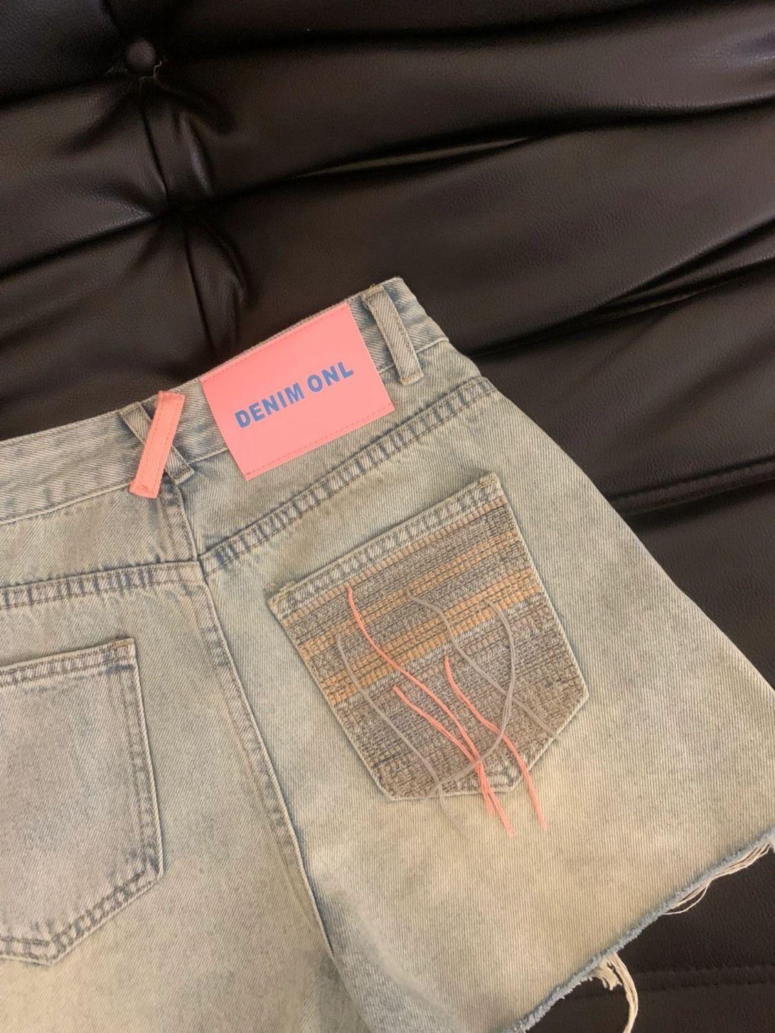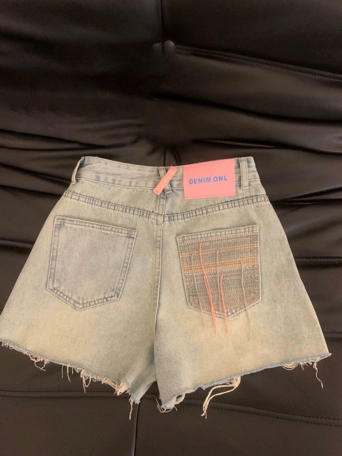 Pantalones vaqueros de cintura alta para mujer, con borlas bordadas en contraste de color, para verano, 2024