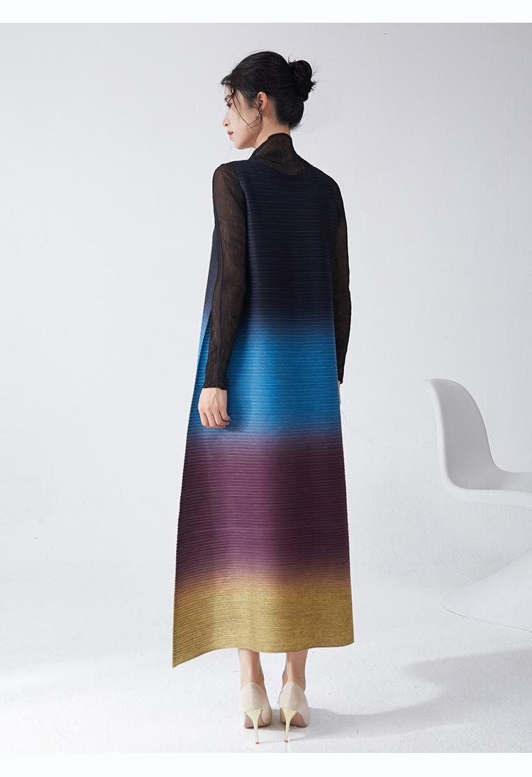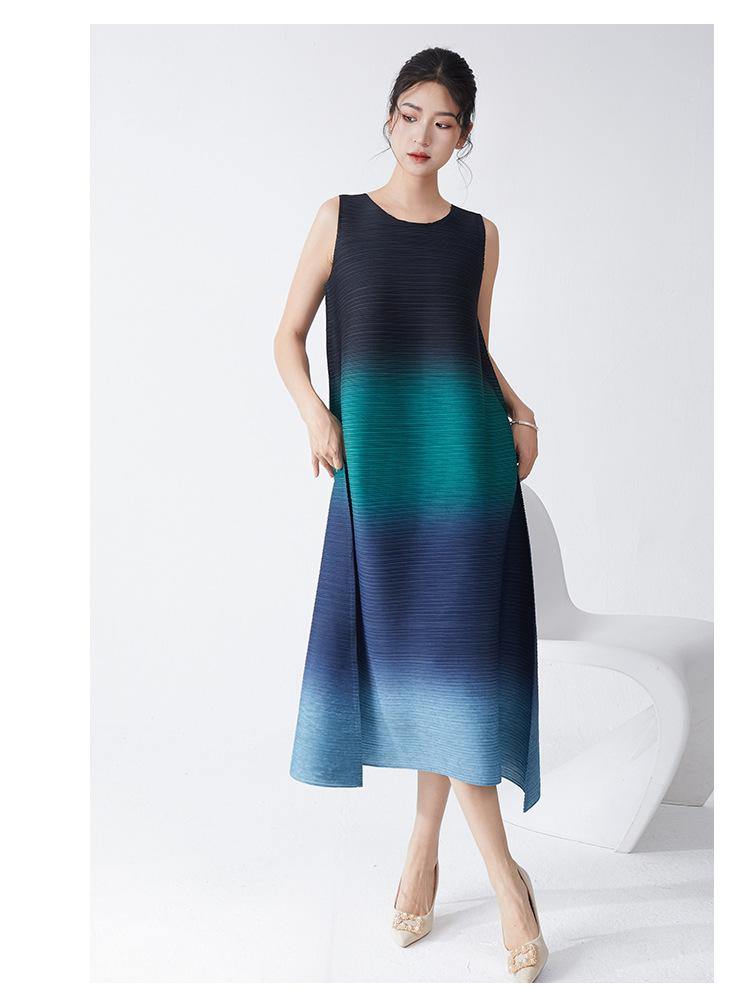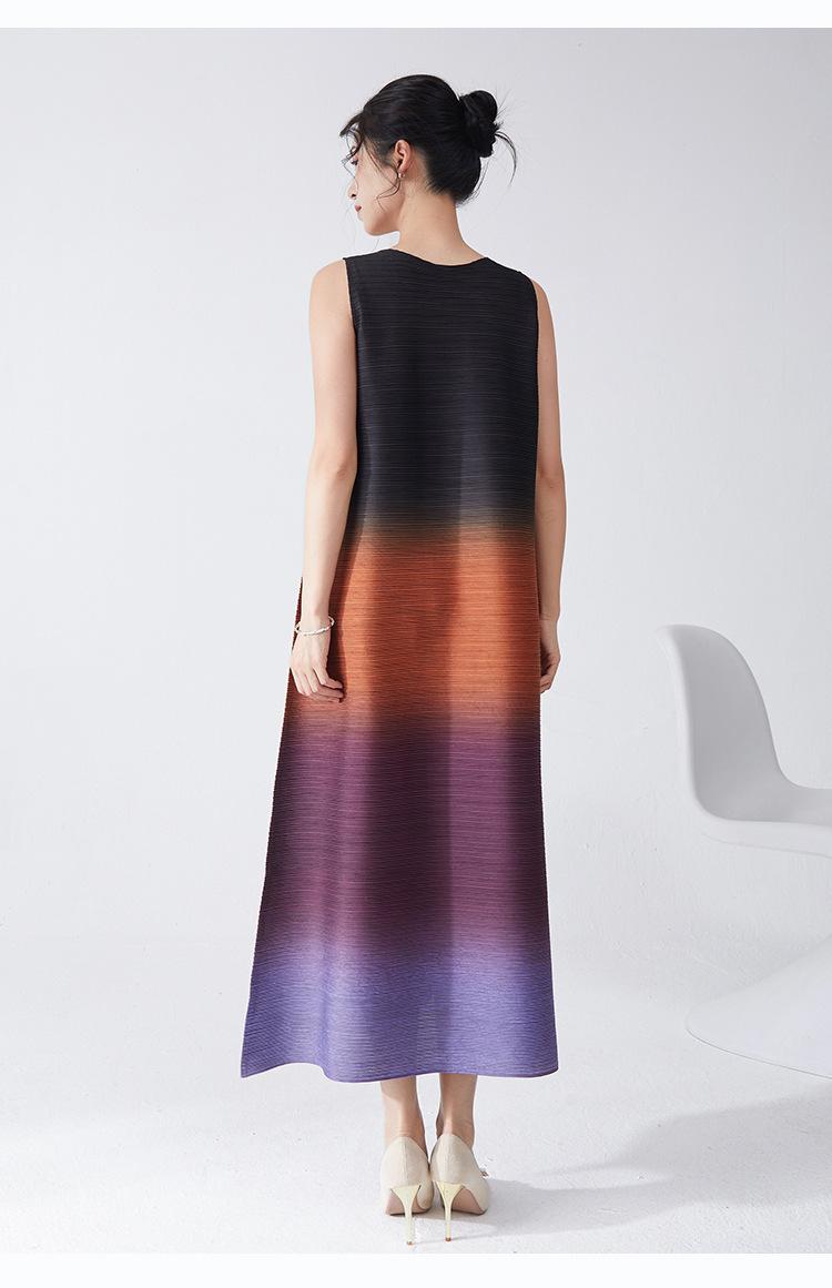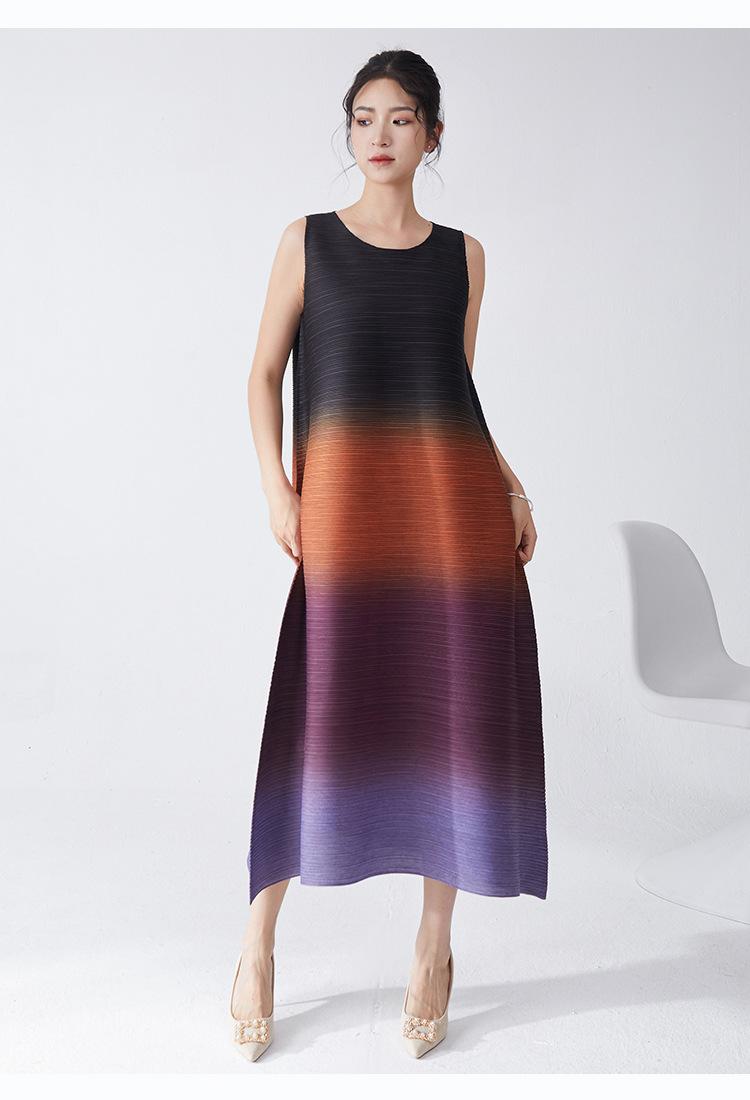 Una generación de cabello Miyake vestido de mujer de alta gama 2025 nuevo degradado sin mangas vestido suelto marea