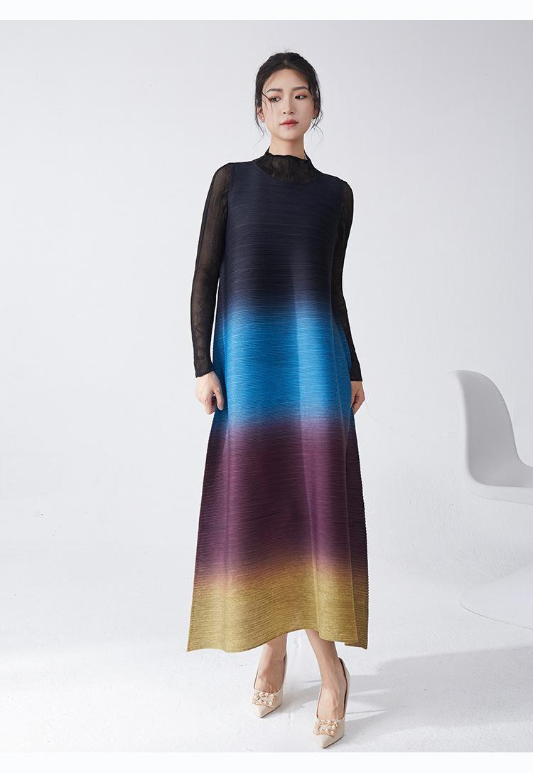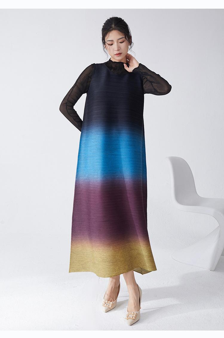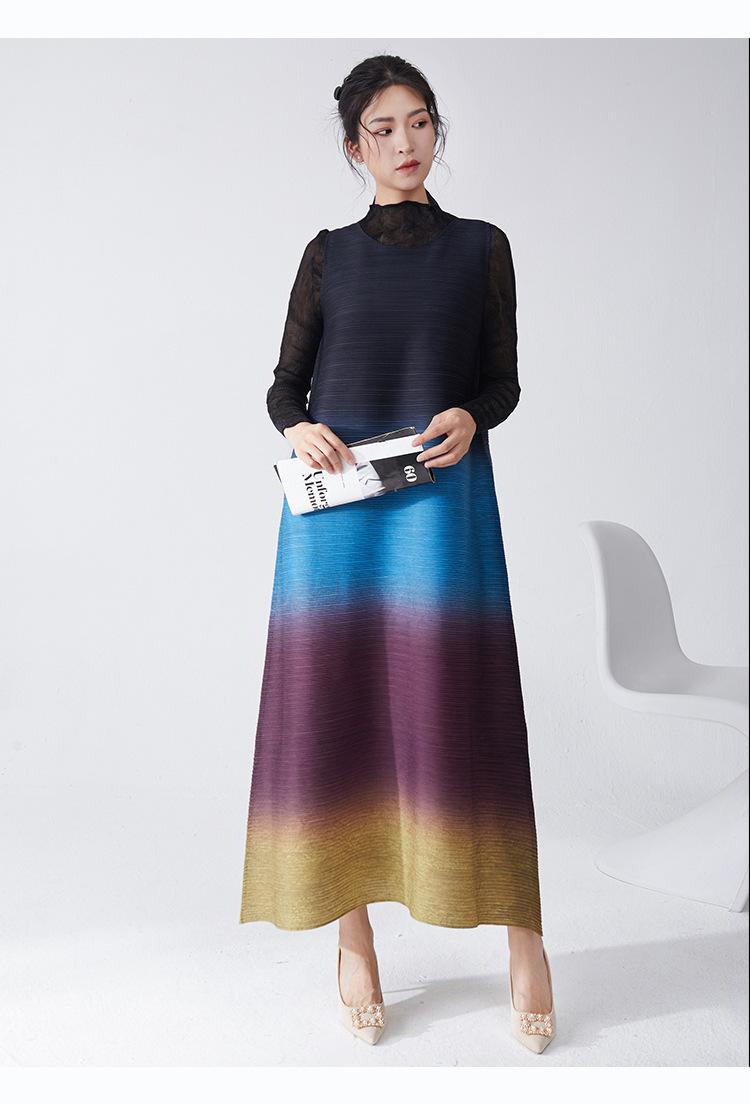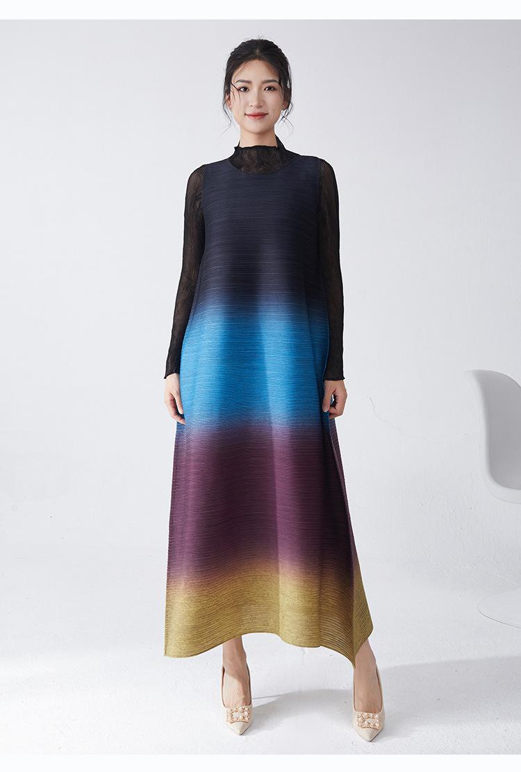 Una generación de cabello Miyake vestido de mujer de alta gama 2025 nuevo degradado sin mangas vestido suelto marea