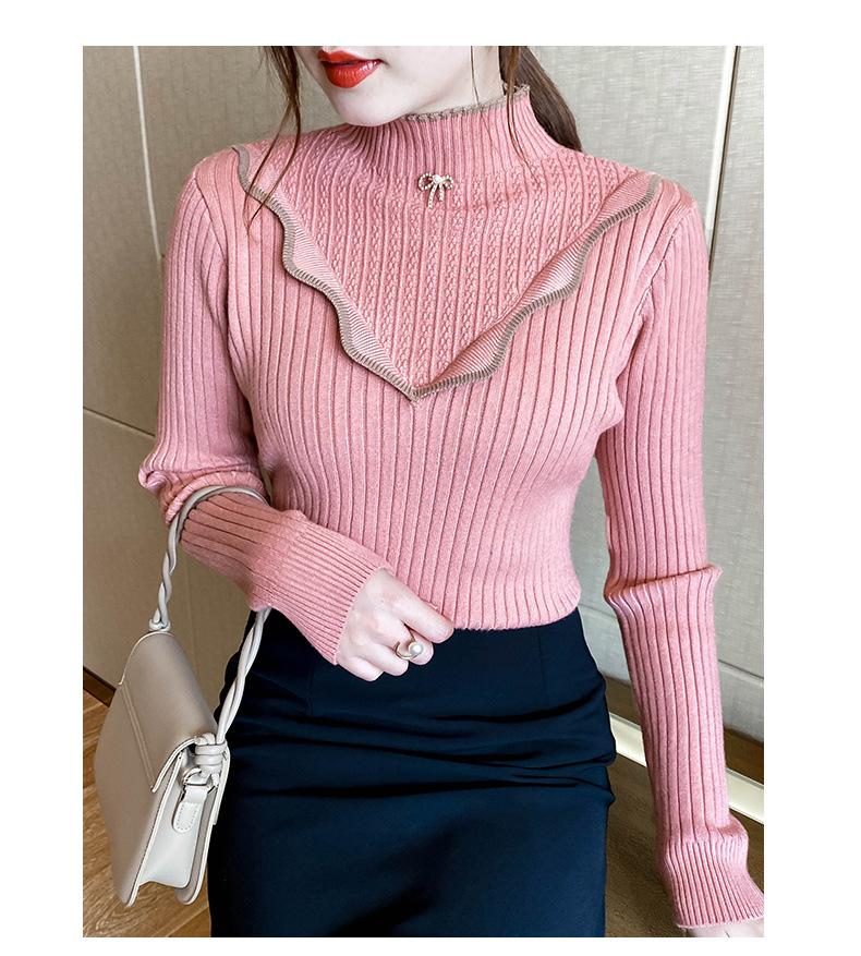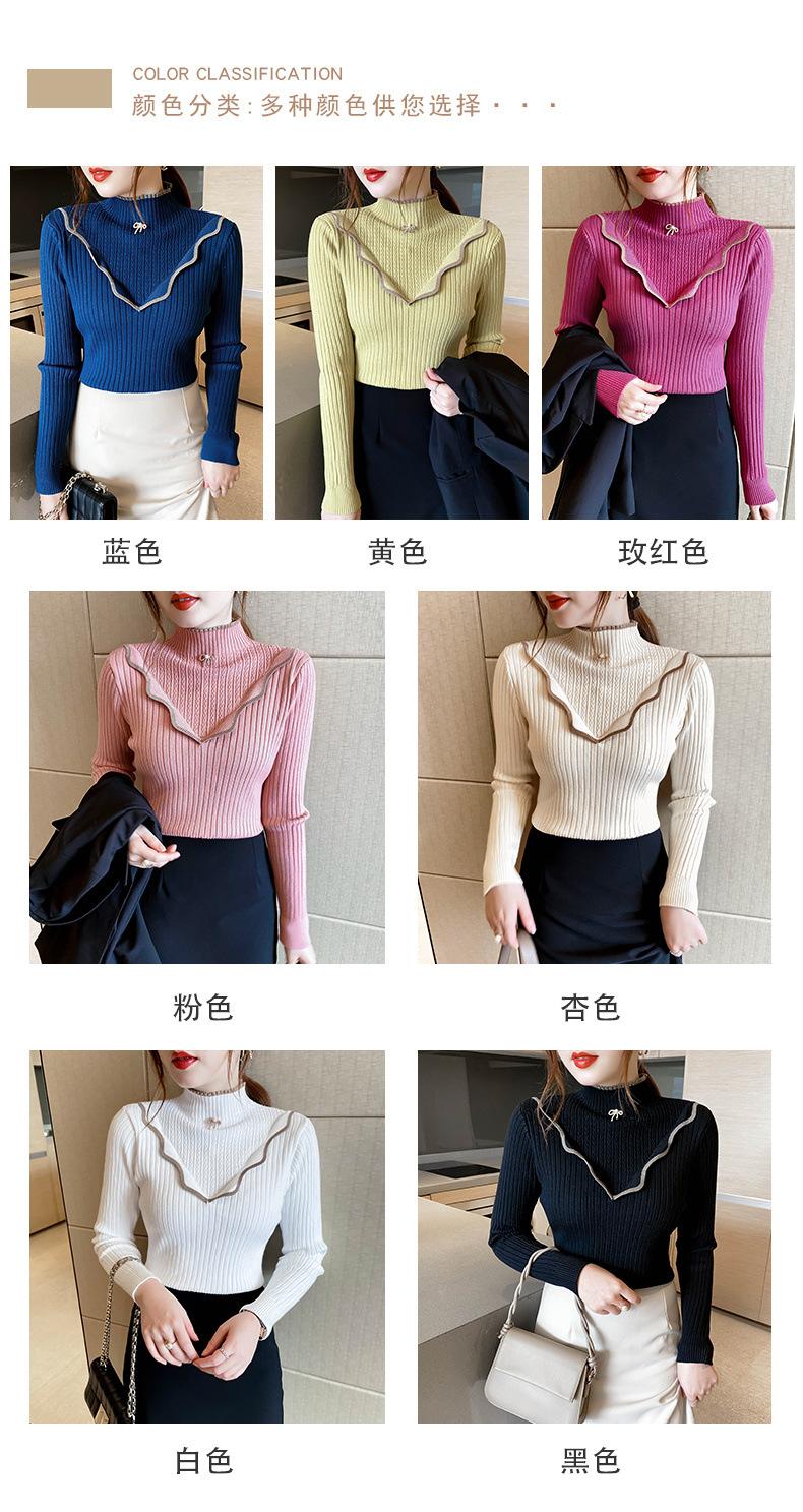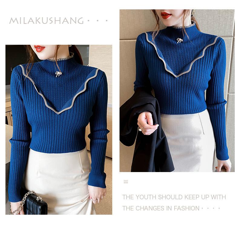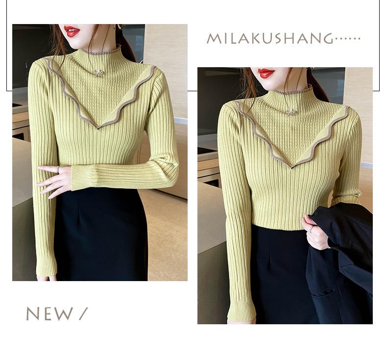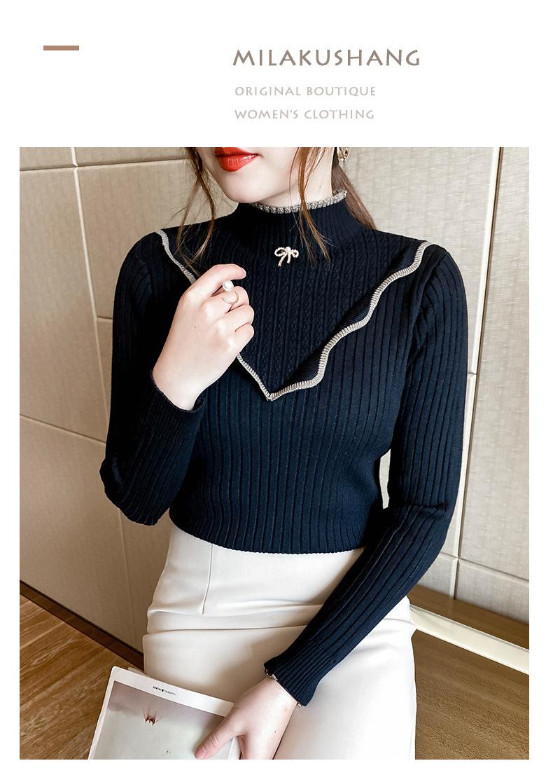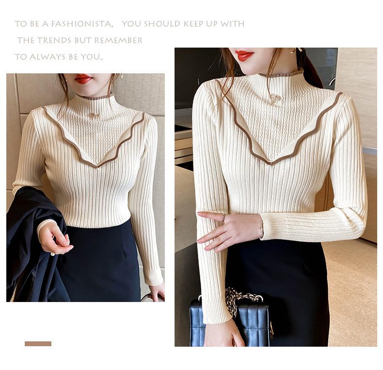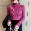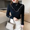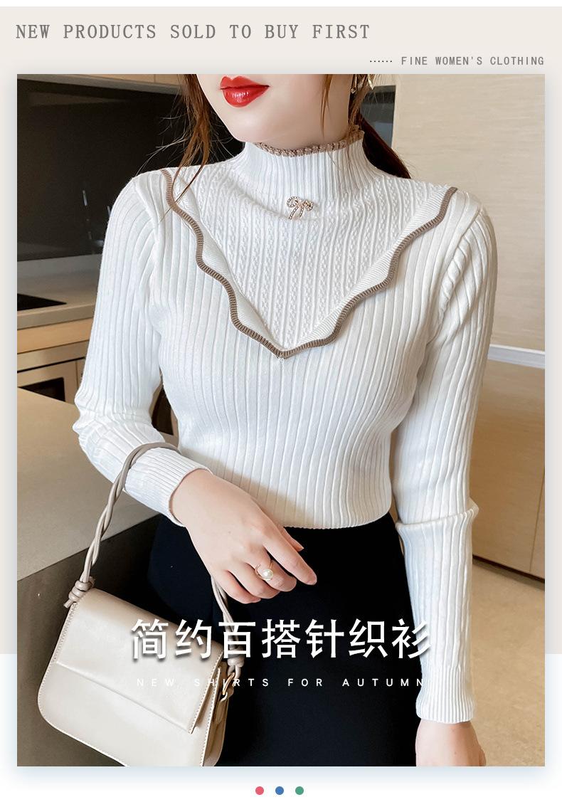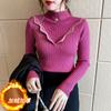 Camisa de base blanca para mujer, nueva llegada de otoño e invierno, suéter con forro polar interior, suéter de punto grueso de estilo occidental con cuello medio alto para mujer