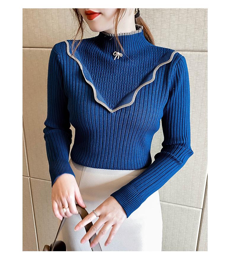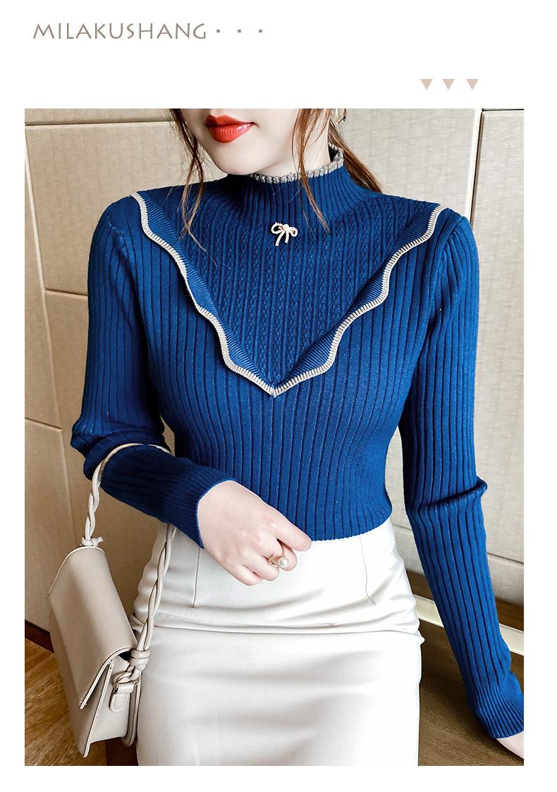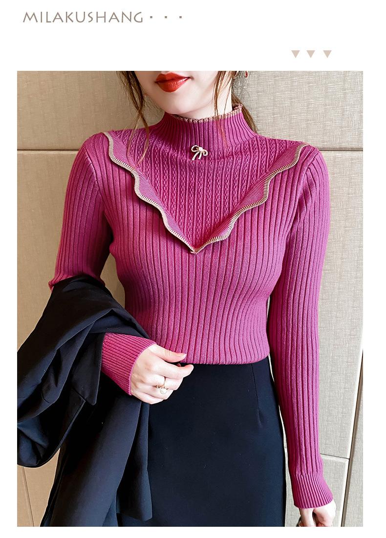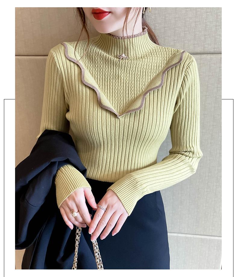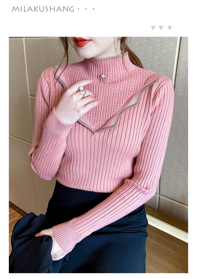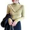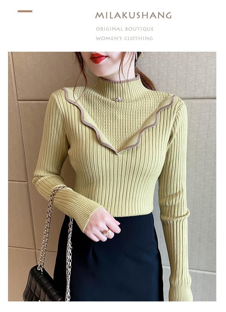 Camisa de base blanca para mujer, nueva llegada de otoño e invierno, suéter con forro polar interior, suéter de punto grueso de estilo occidental con cuello medio alto para mujer