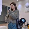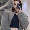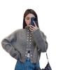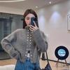 Chaqueta suéter gris de doble botonadura con cremallera de alta calidad 2024 nuevo cárdigan de punto versátil holgado perezoso retro otoño e invierno