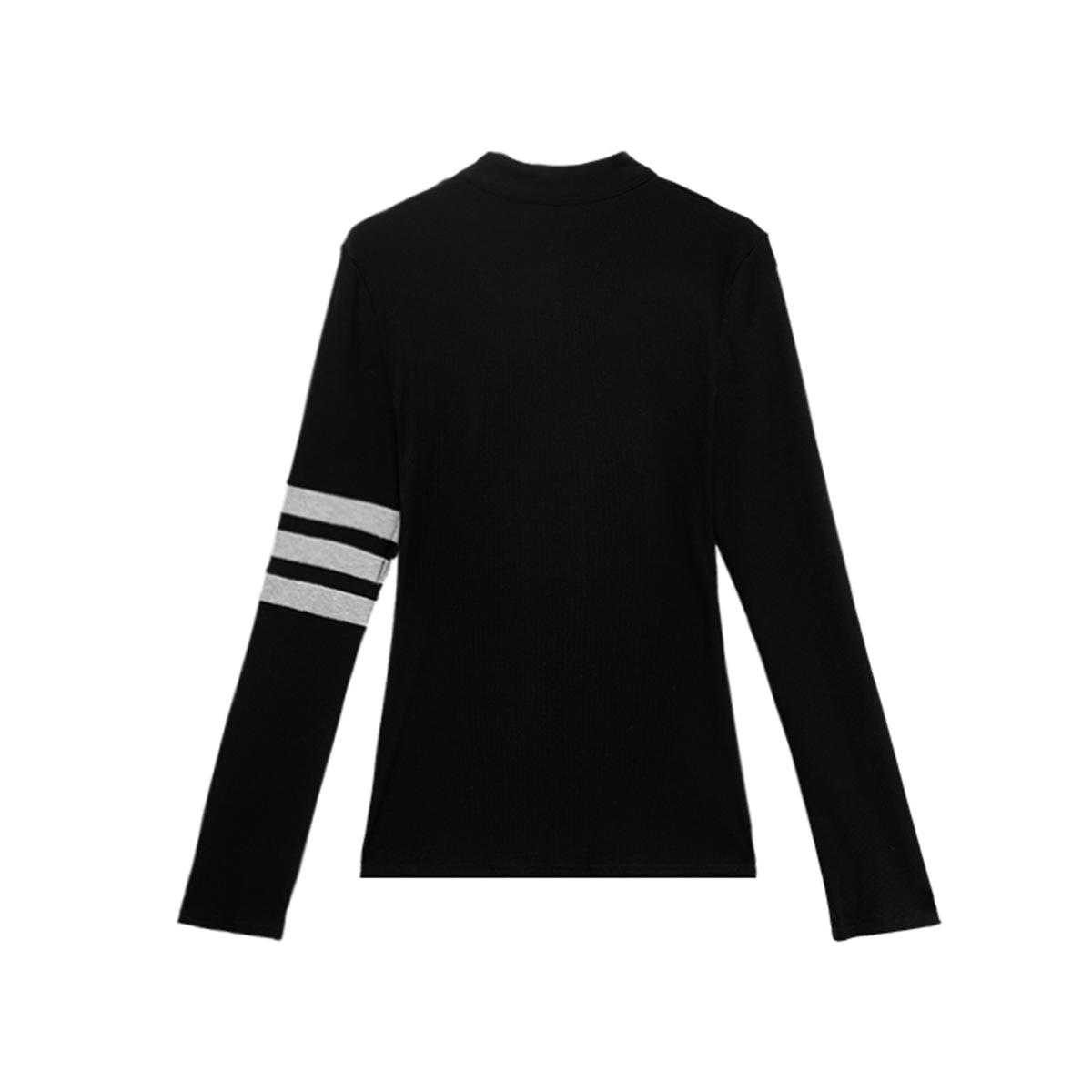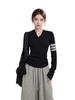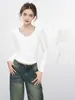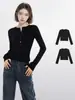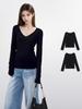 Camiseta negra de manga larga con escote en V y hombros descubiertos para mujer, primavera y otoño, principios de otoño, camiseta interior ajustada, top corto para chica atractiva, principios de otoño