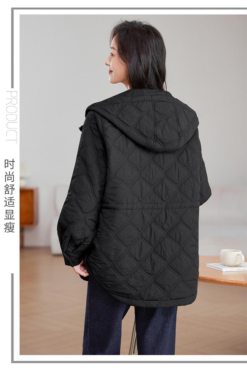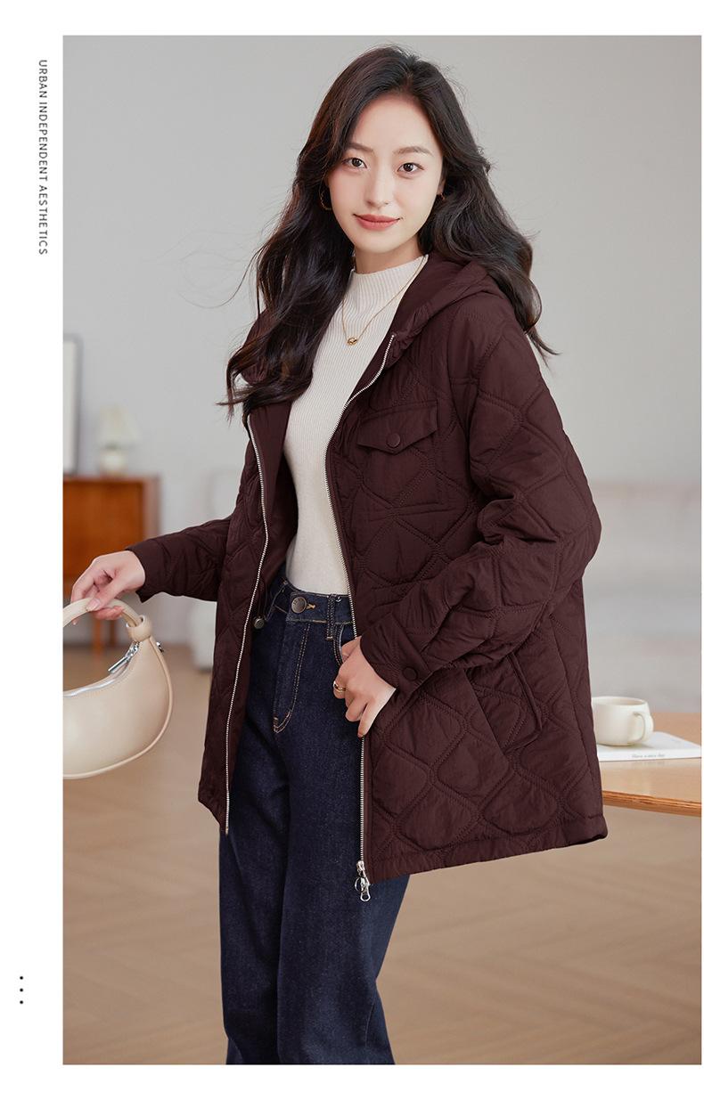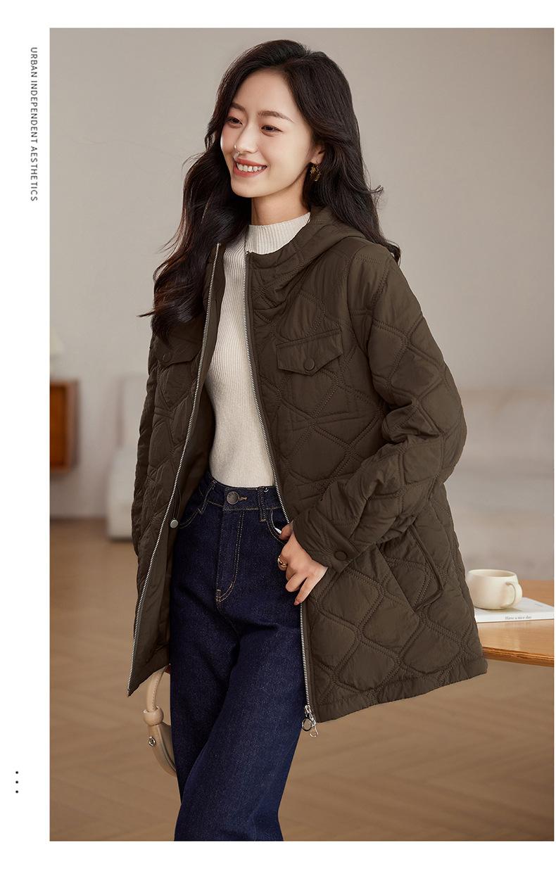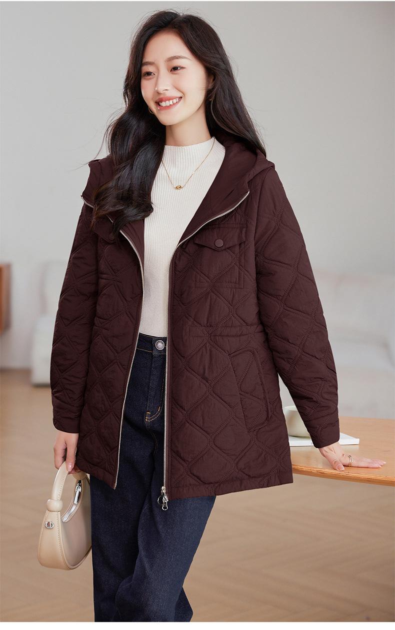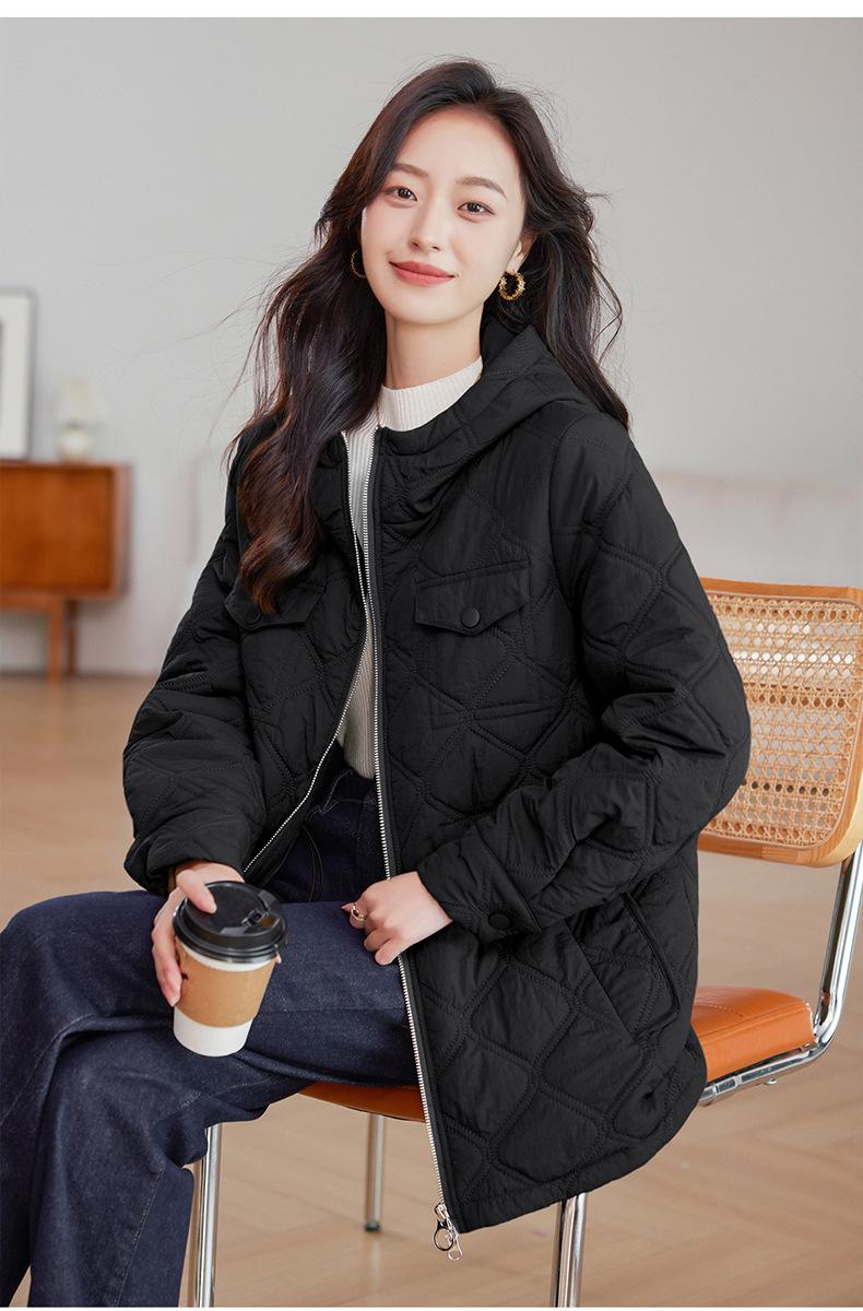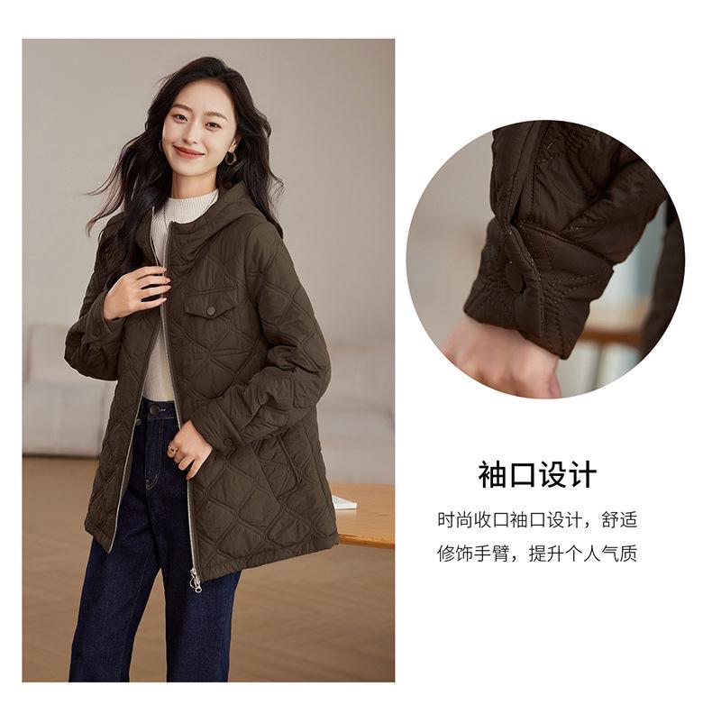 Chaqueta acolchada de algodón de longitud media para mujer invierno 2024 nueva corte relajado adelgazante de cintura madre de mediana edad casual con capucha chaqueta acolchada de algodón