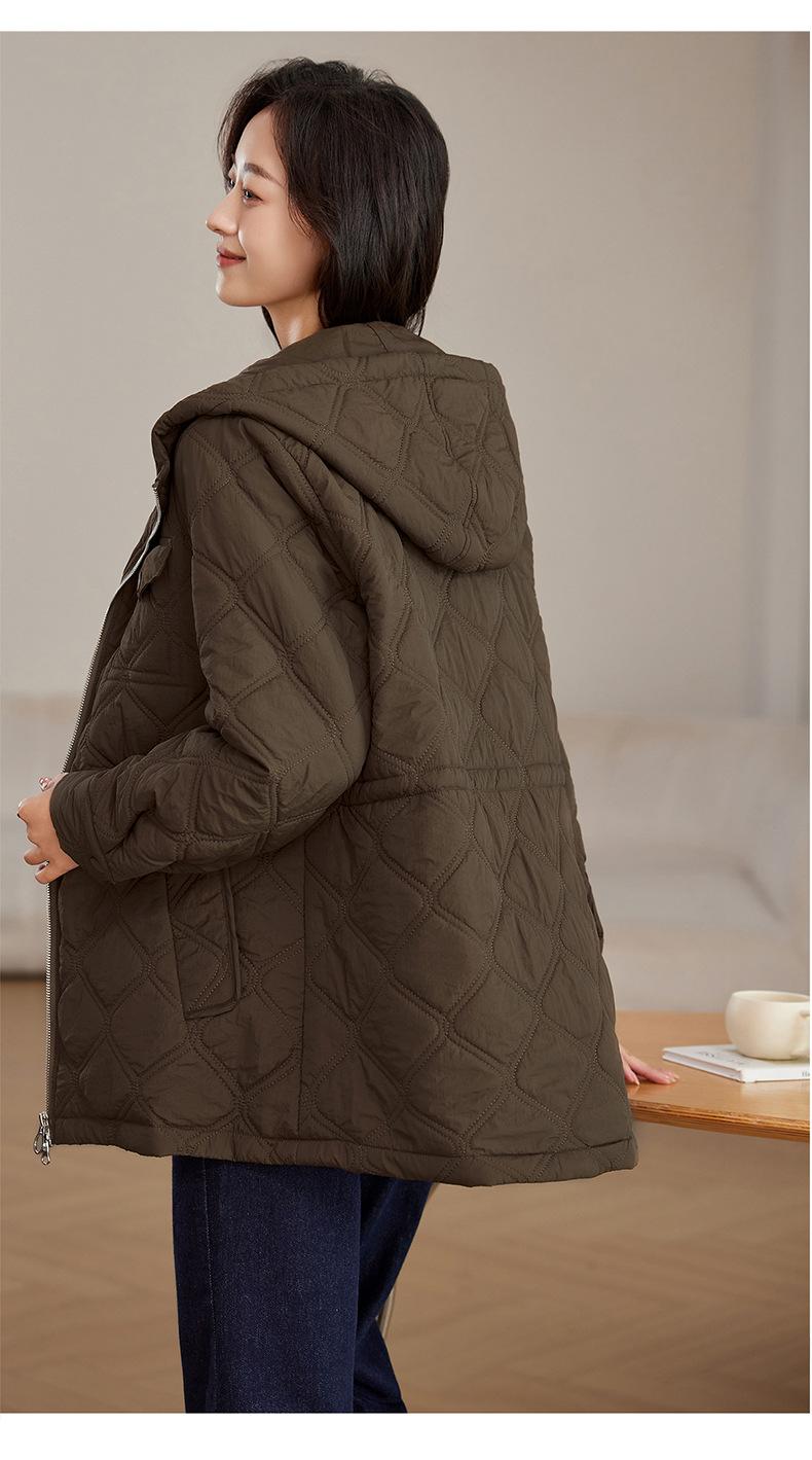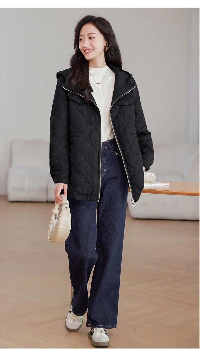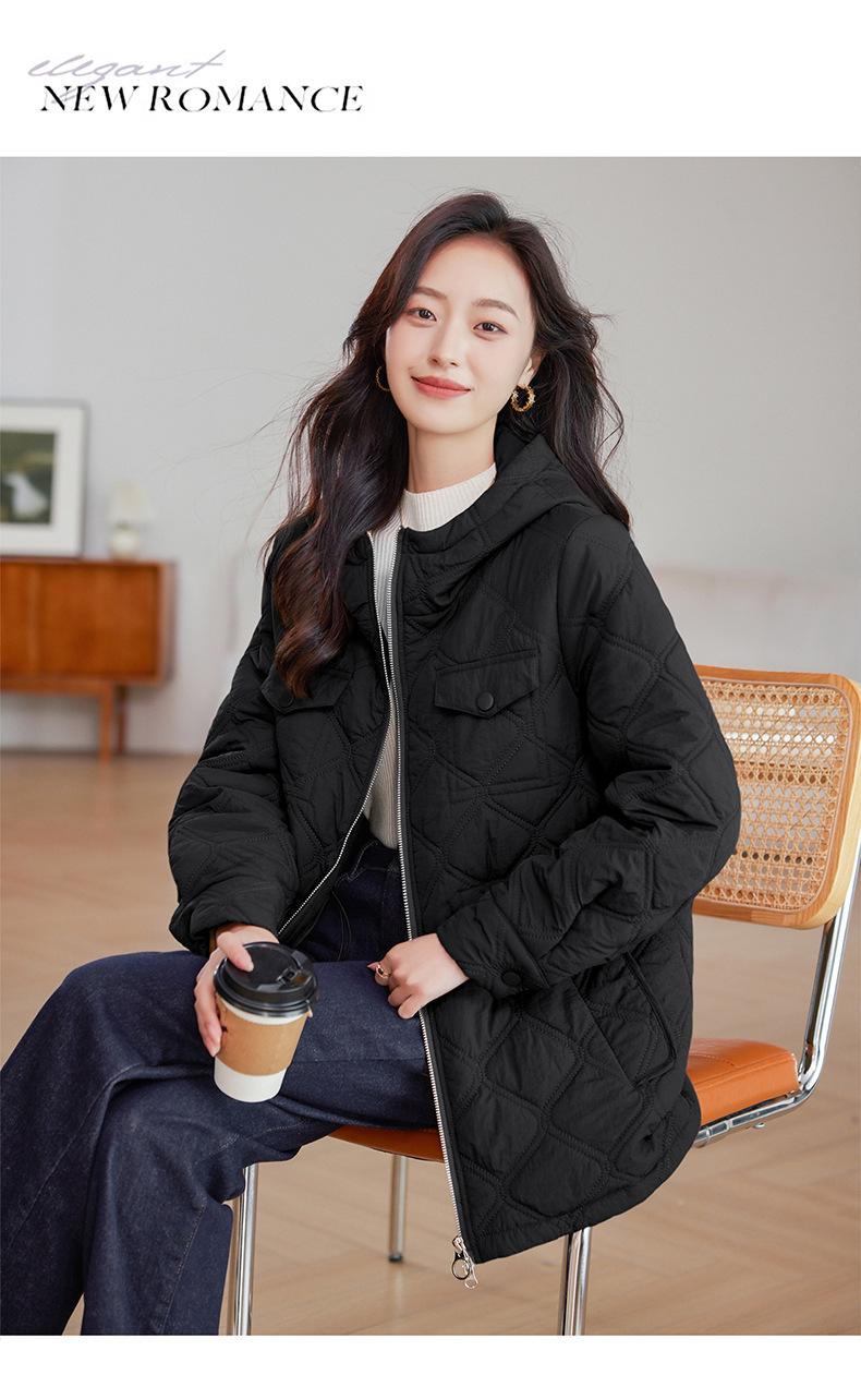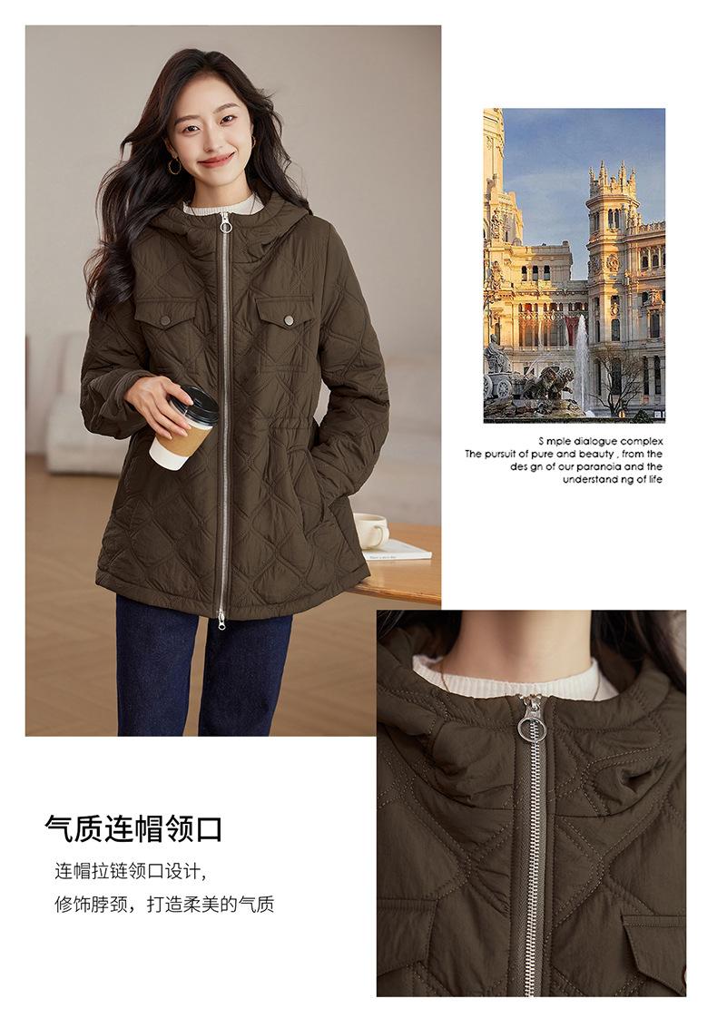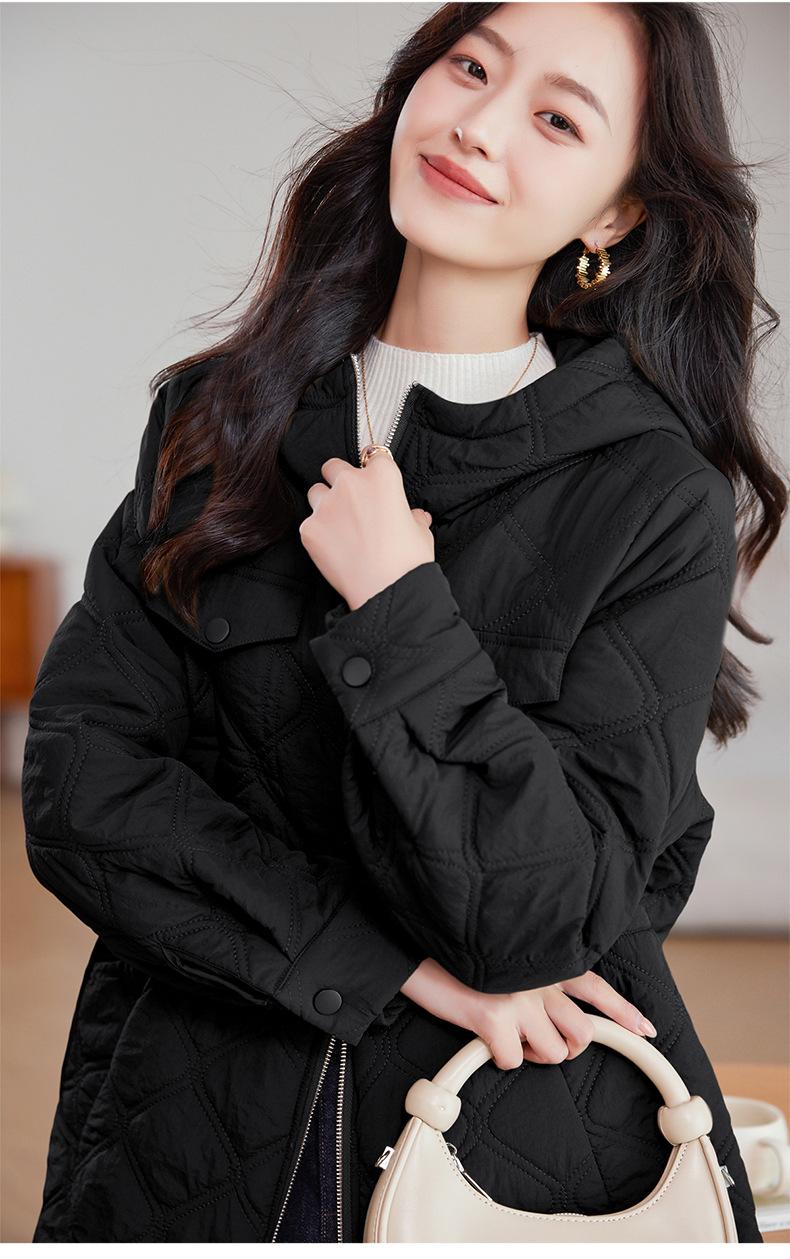 Chaqueta acolchada de algodón de longitud media para mujer invierno 2024 nueva corte relajado adelgazante de cintura madre de mediana edad casual con capucha chaqueta acolchada de algodón