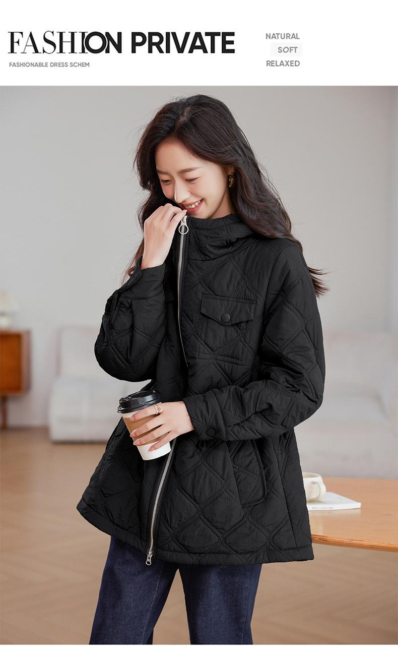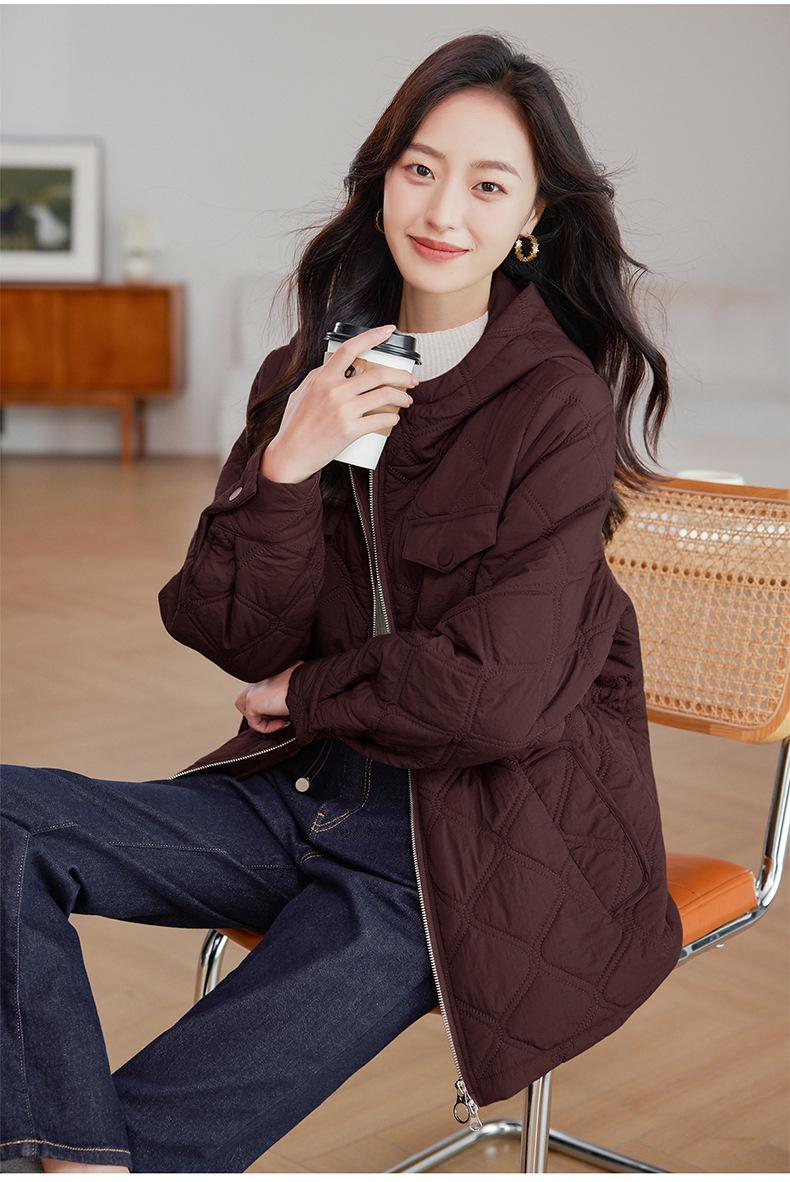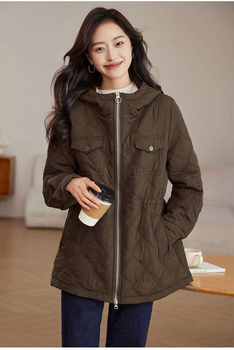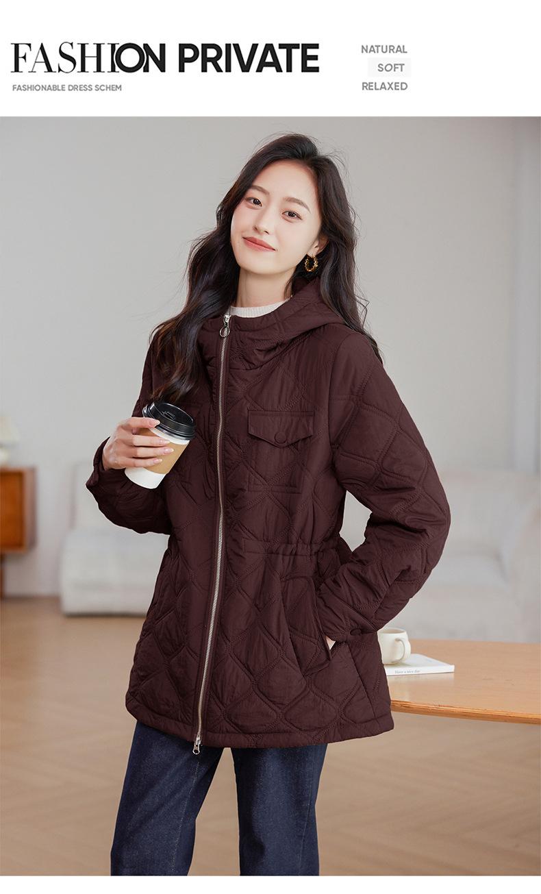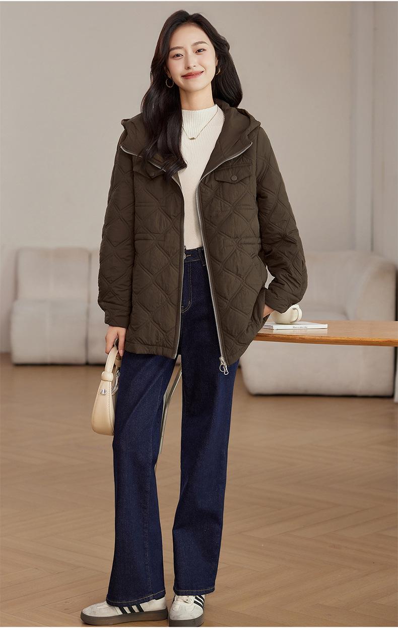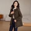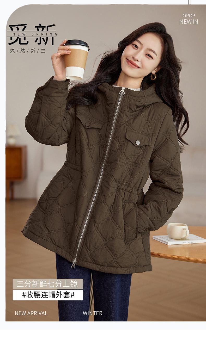 Chaqueta acolchada de algodón de longitud media para mujer invierno 2024 nueva corte relajado adelgazante de cintura madre de mediana edad casual con capucha chaqueta acolchada de algodón