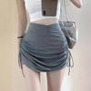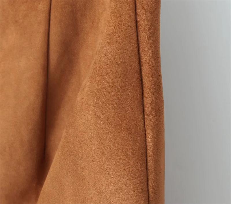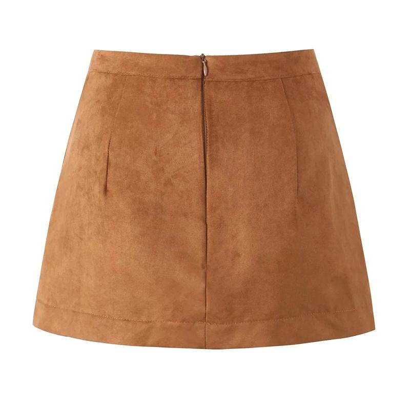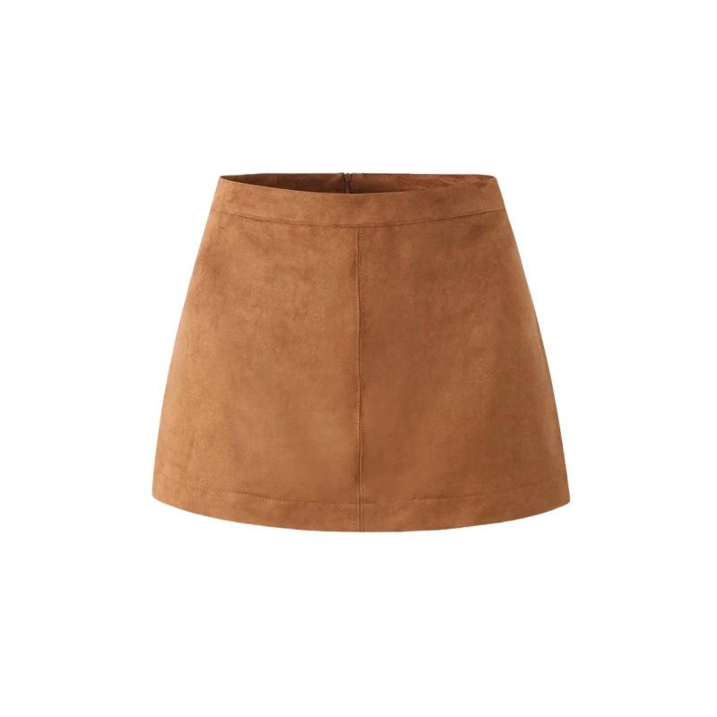 Falda de cintura alta estilo retro americano de primavera y otoño para mujer, falda de gamuza antideslumbrante de corte A, falda corta de color liso.