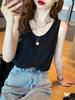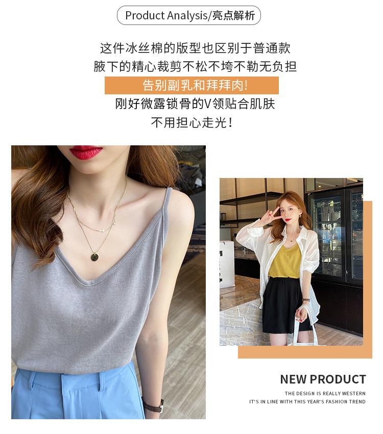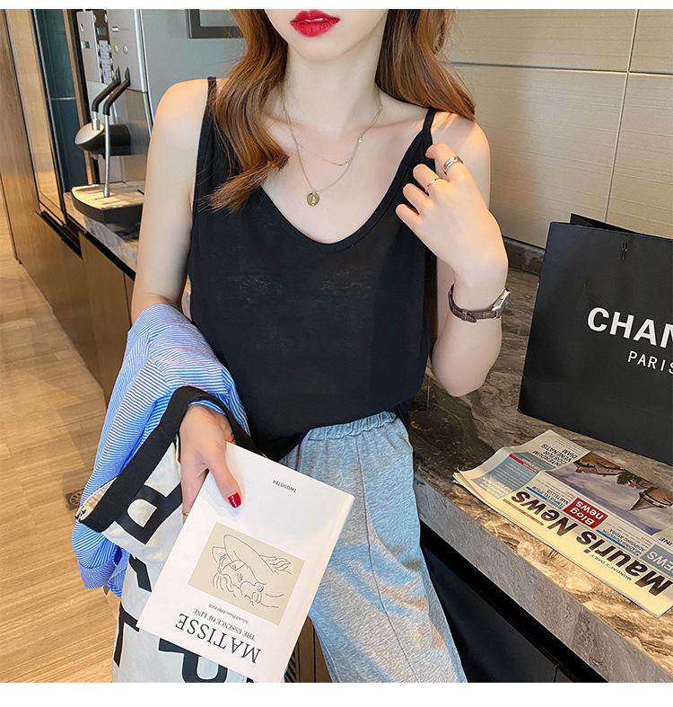 Camisola de cuello en V para mujer, Top de verano holgado y delgado de talla grande sin mangas, Tank blanco básico para ropa exterior