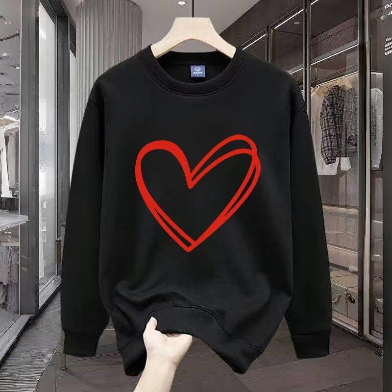 Moda Otoñal Americana Nuevo Sudadera Cálida de Moda Cool Versátil con Estampado de Carta de Amor de Doble Línea