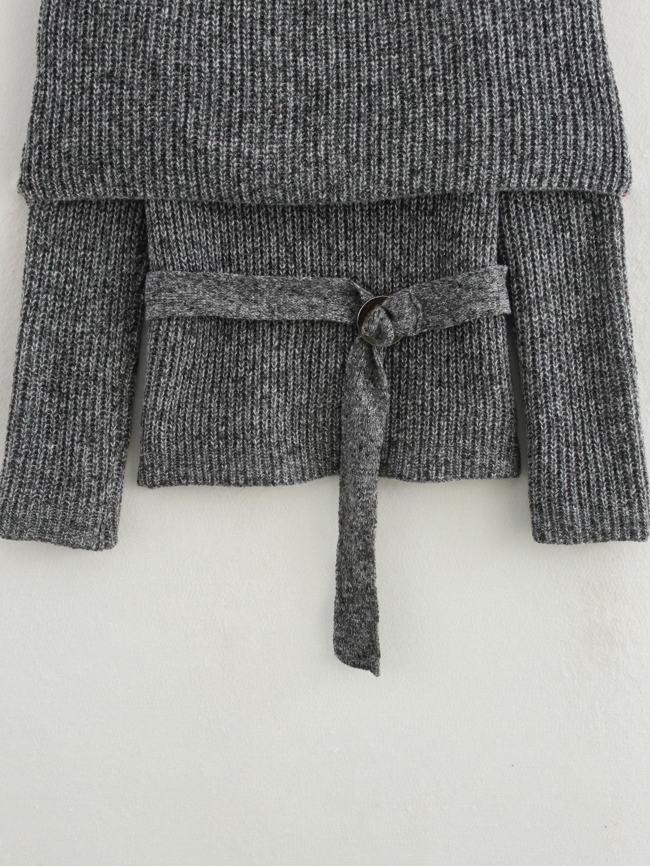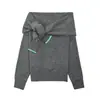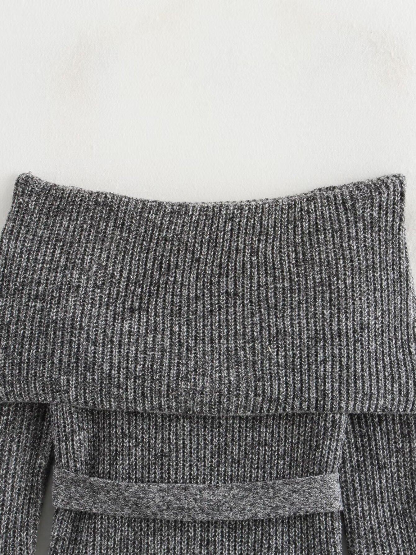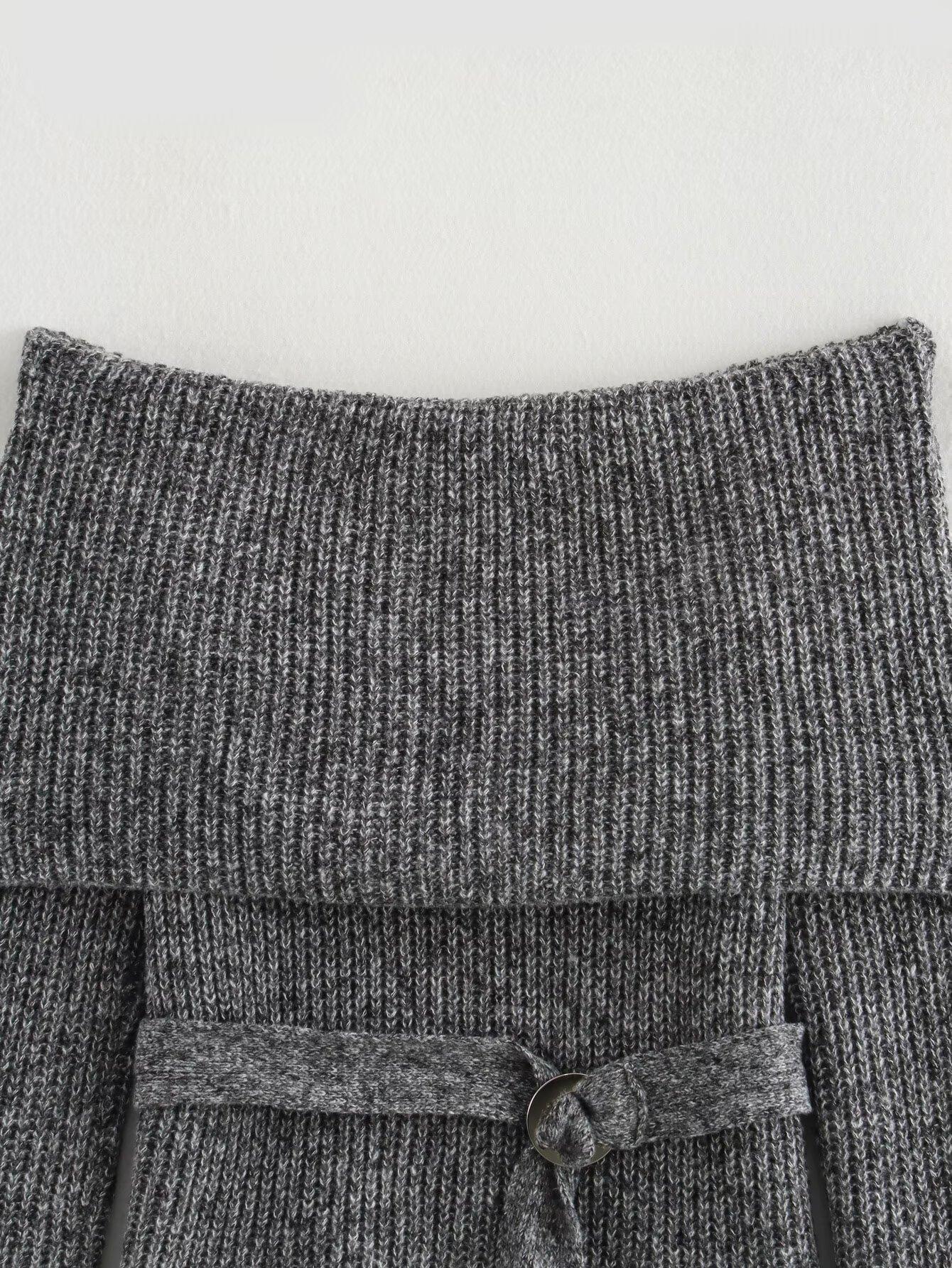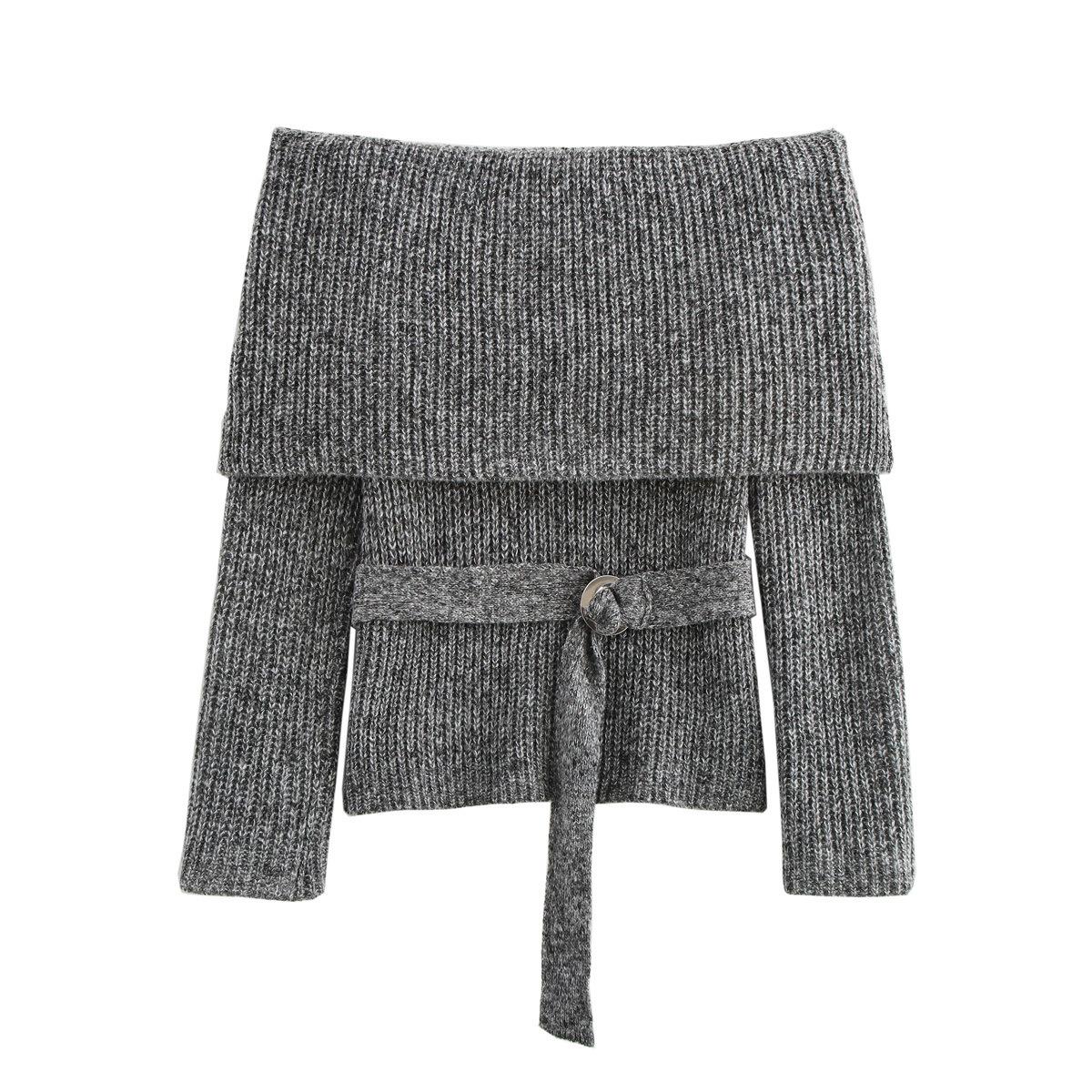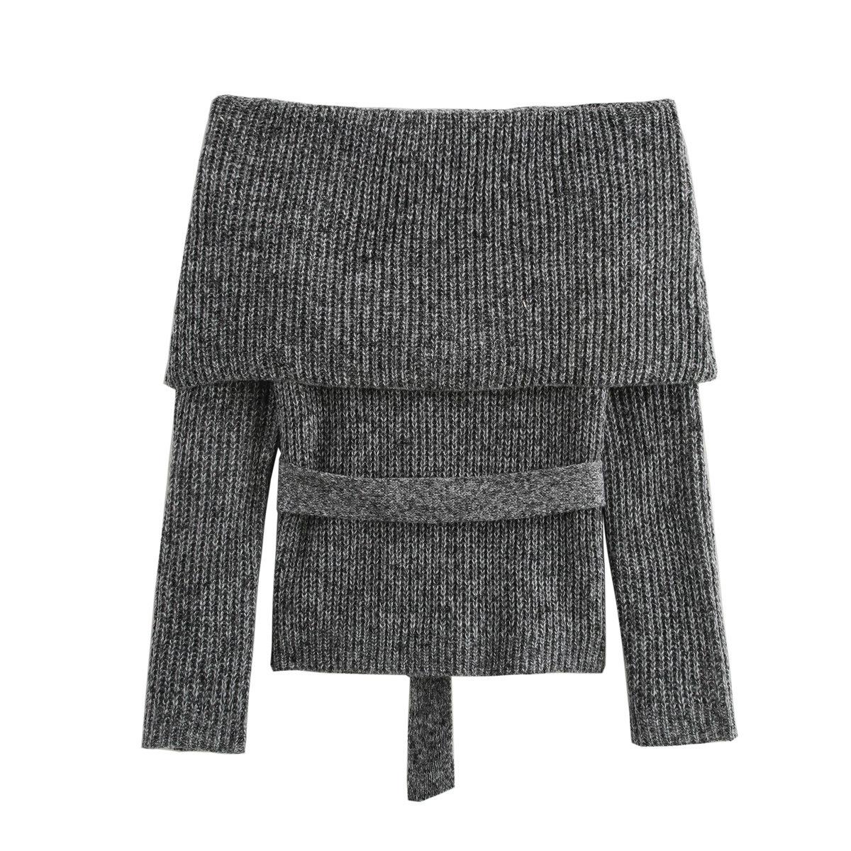 Ropa Europea y Americana Transfronteriza Aliexpress Popular Estilo Retro Moderno Elegante Tejido de Punto con Cinturón y Hombros Descubiertos