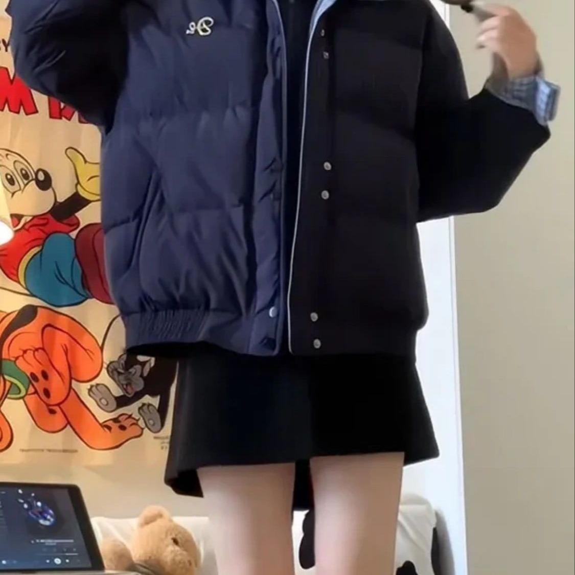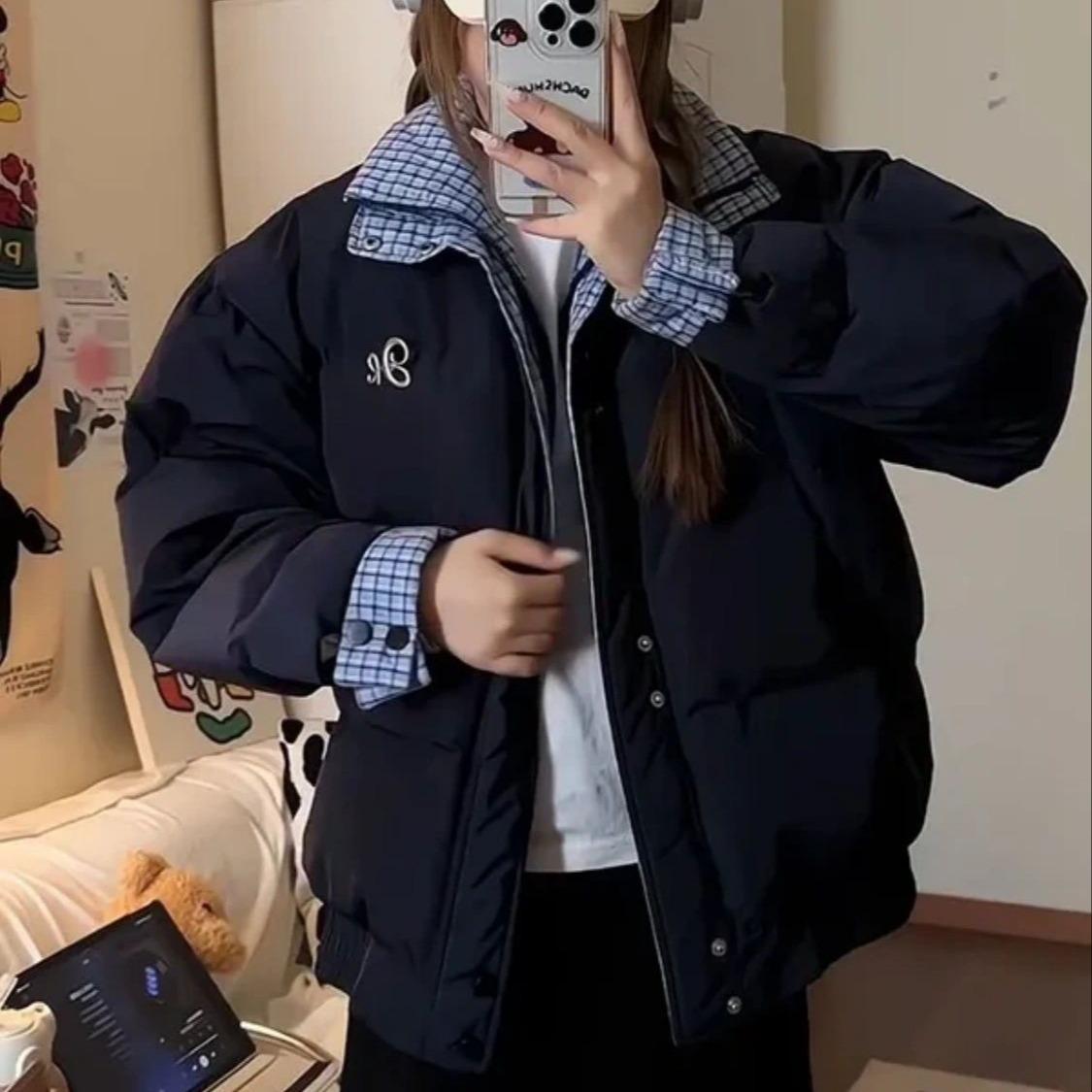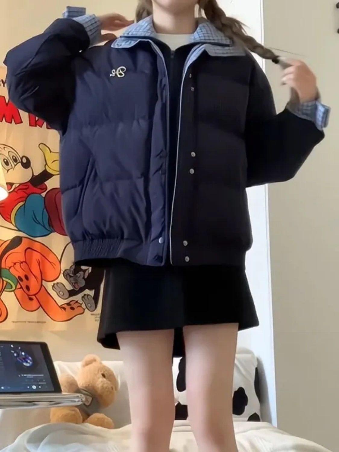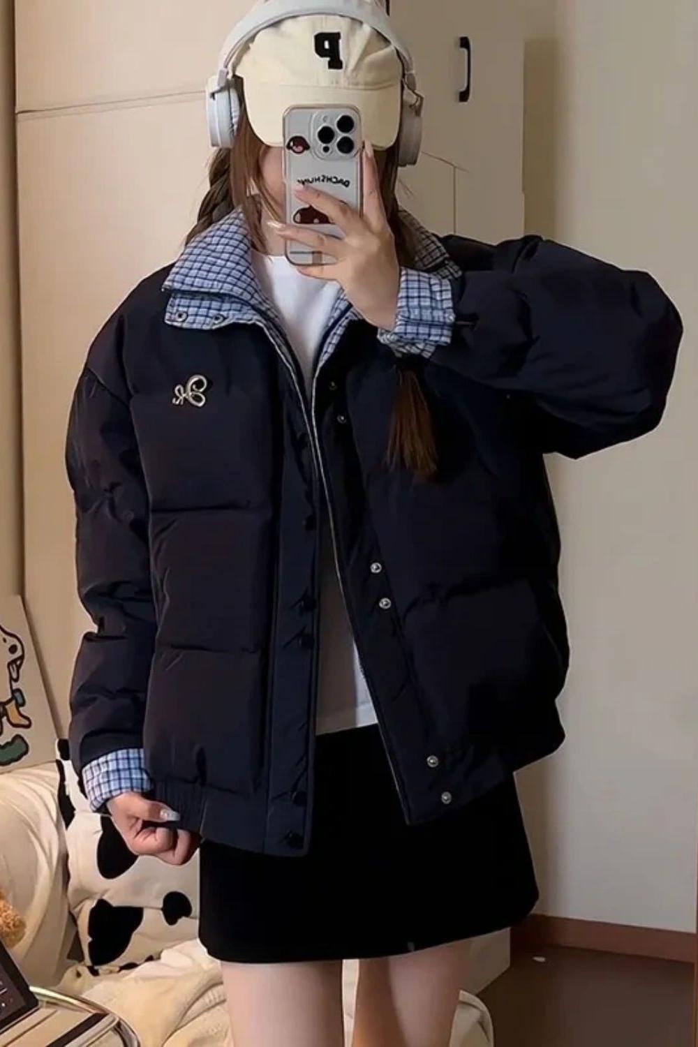 Abrigo acolchado de algodón con cuello doble y cuadros retro con costuras de estilo coreano para mujer, nuevo traje de invierno de dos piezas falso que combina con todo, cálido