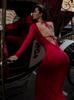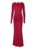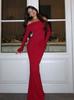 Amazon más vendido transfronterizo nuevo color sólido corte ajustado manga larga ceñido a la cintura empalmado nudo retorcido abertura vestido largo para mujer