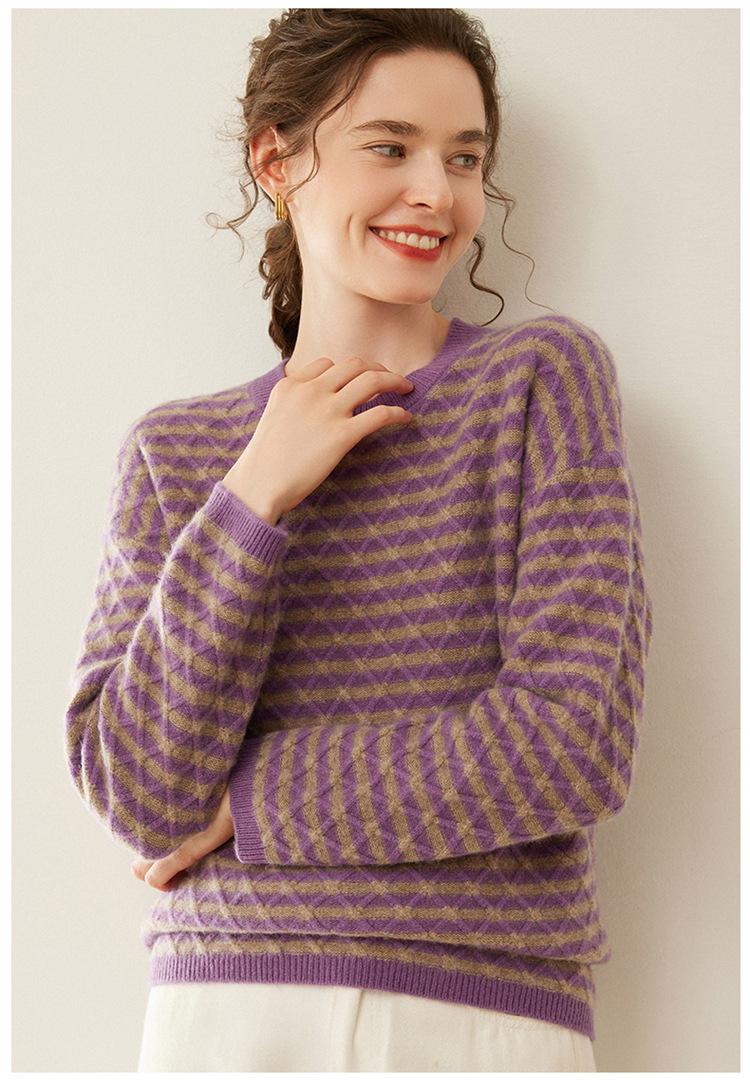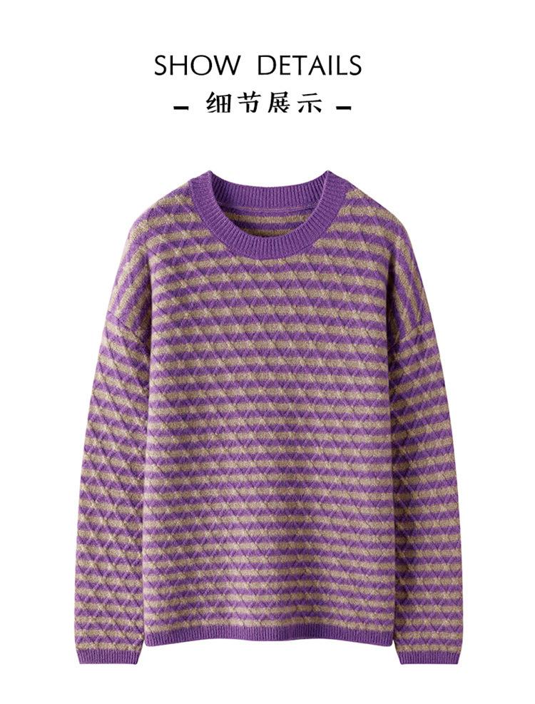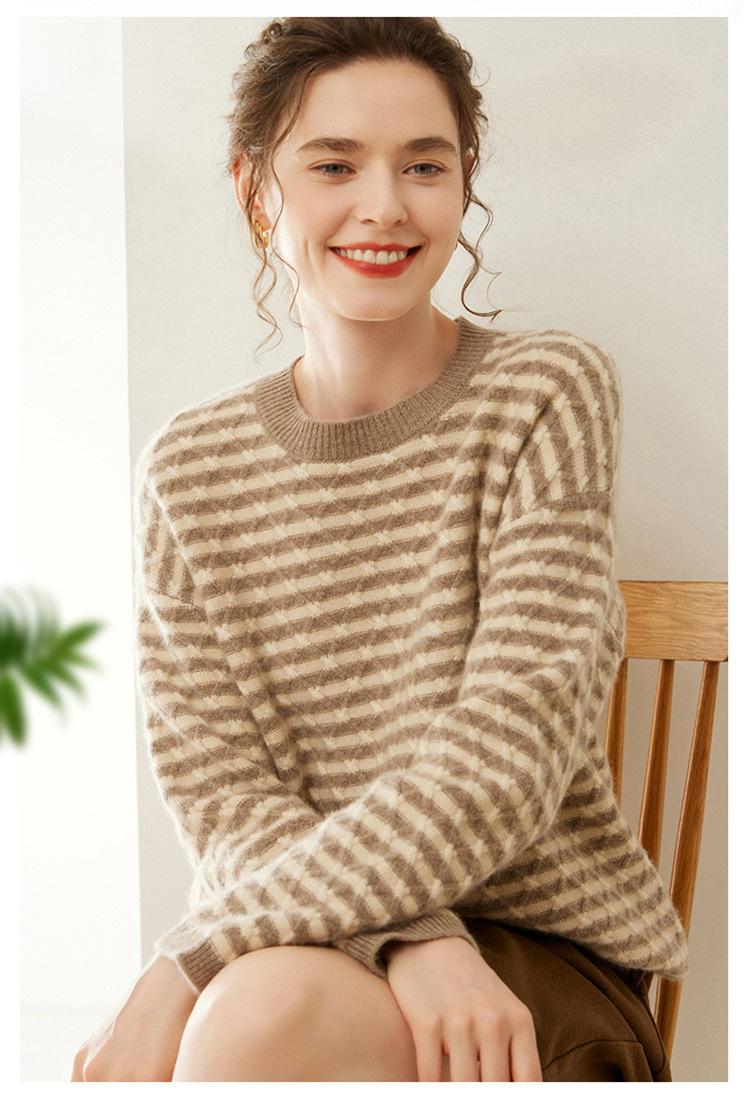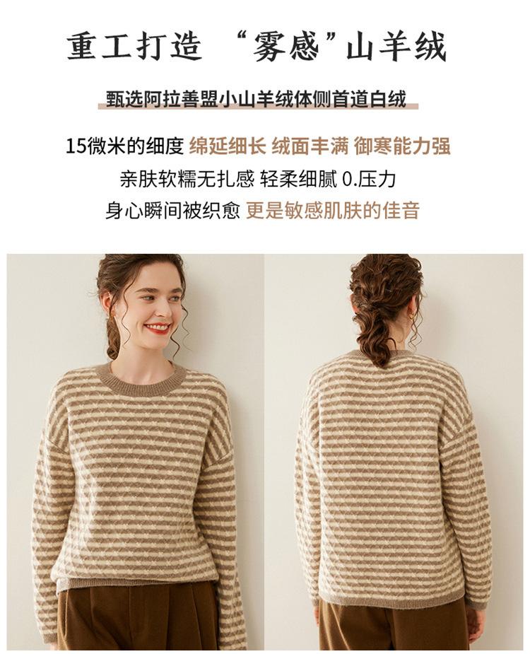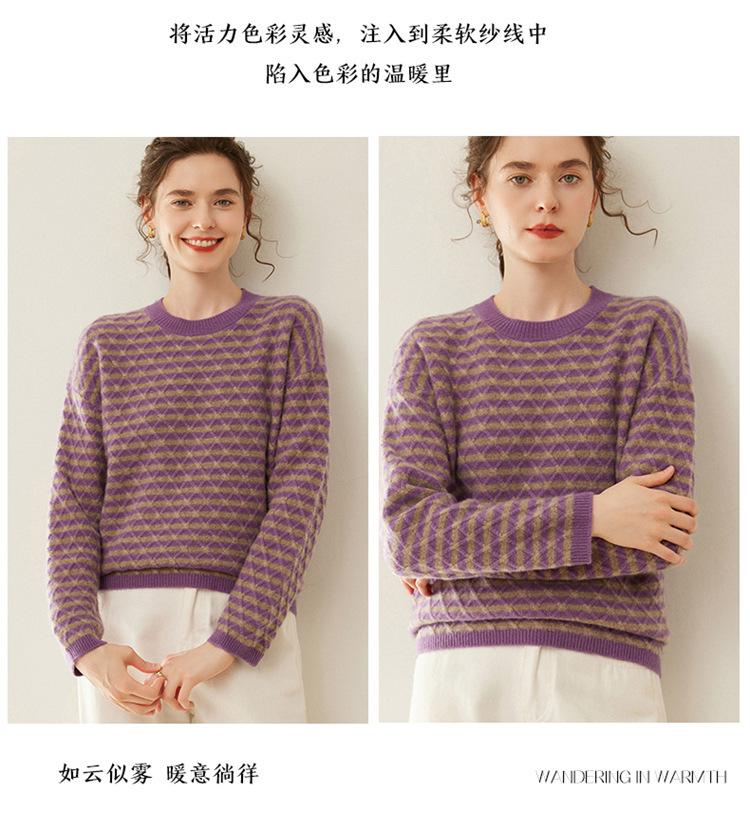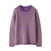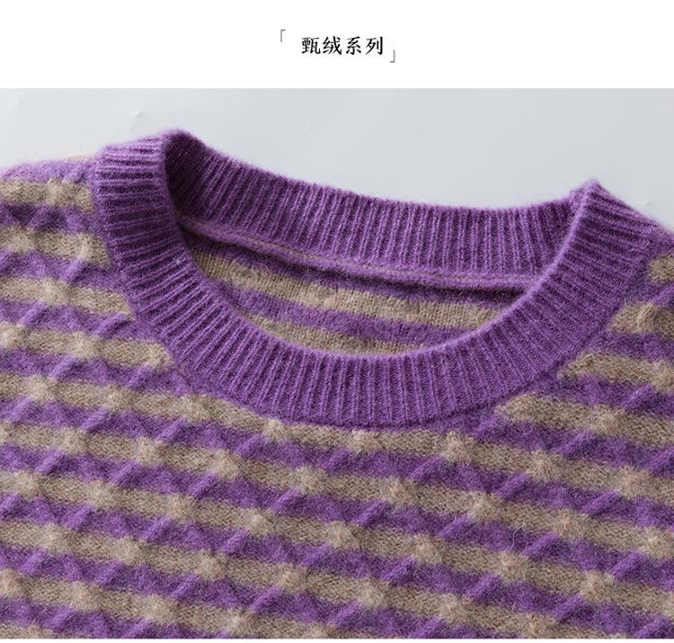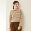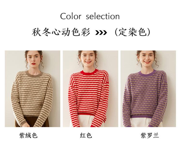 Otoño e Invierno Nuevo Suéter Retro de Cachemira de Cuello Redondo Manga Larga Rayado a Contraste Suave Ceroso Camiseta Base Suéter