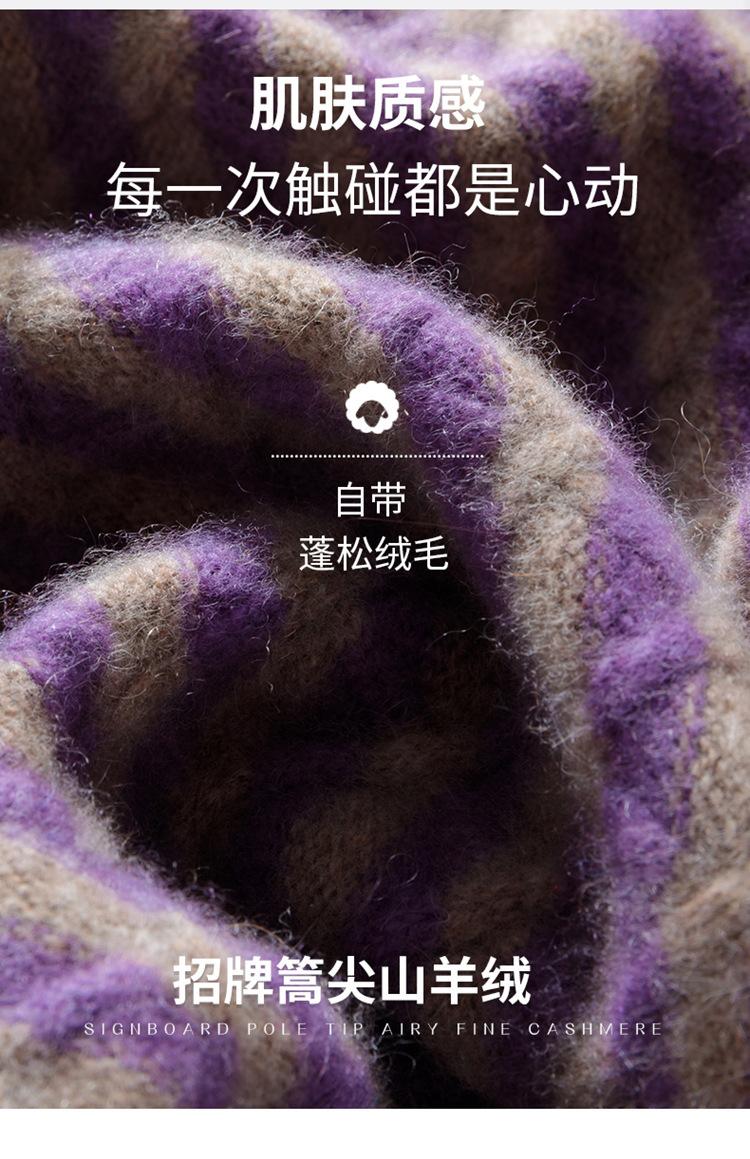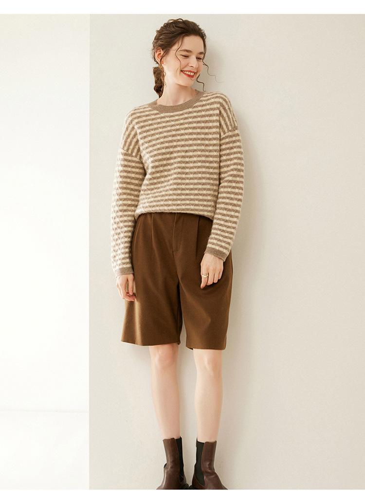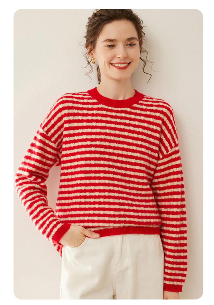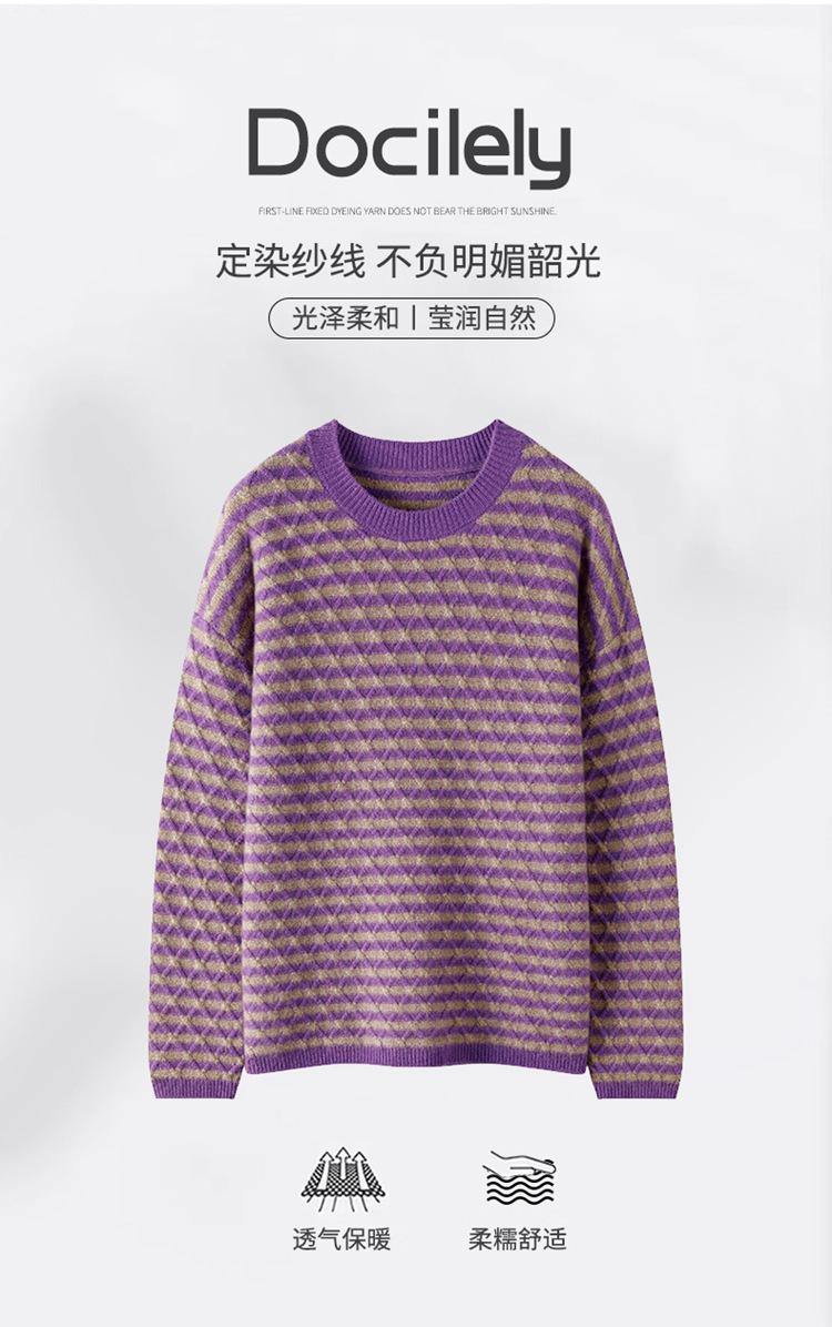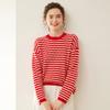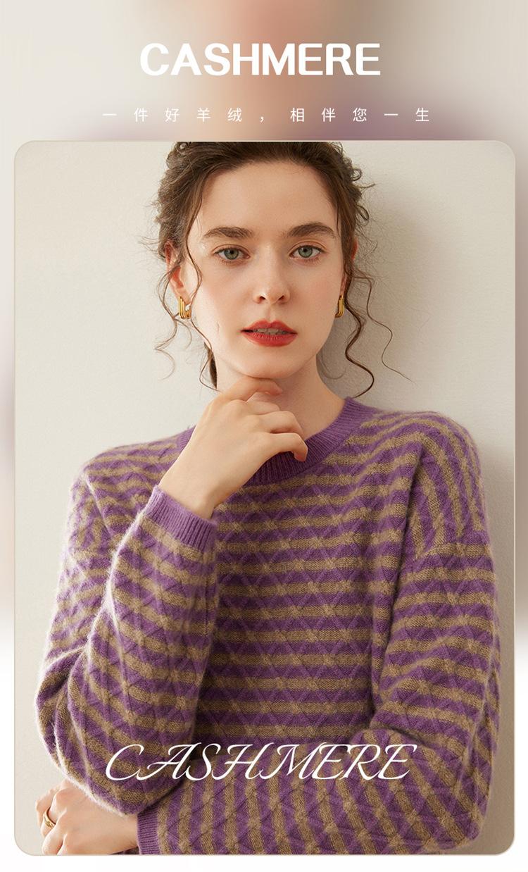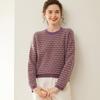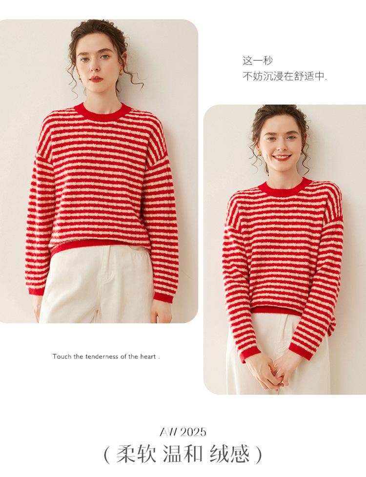 Otoño e Invierno Nuevo Suéter Retro de Cachemira de Cuello Redondo Manga Larga Rayado a Contraste Suave Ceroso Camiseta Base Suéter