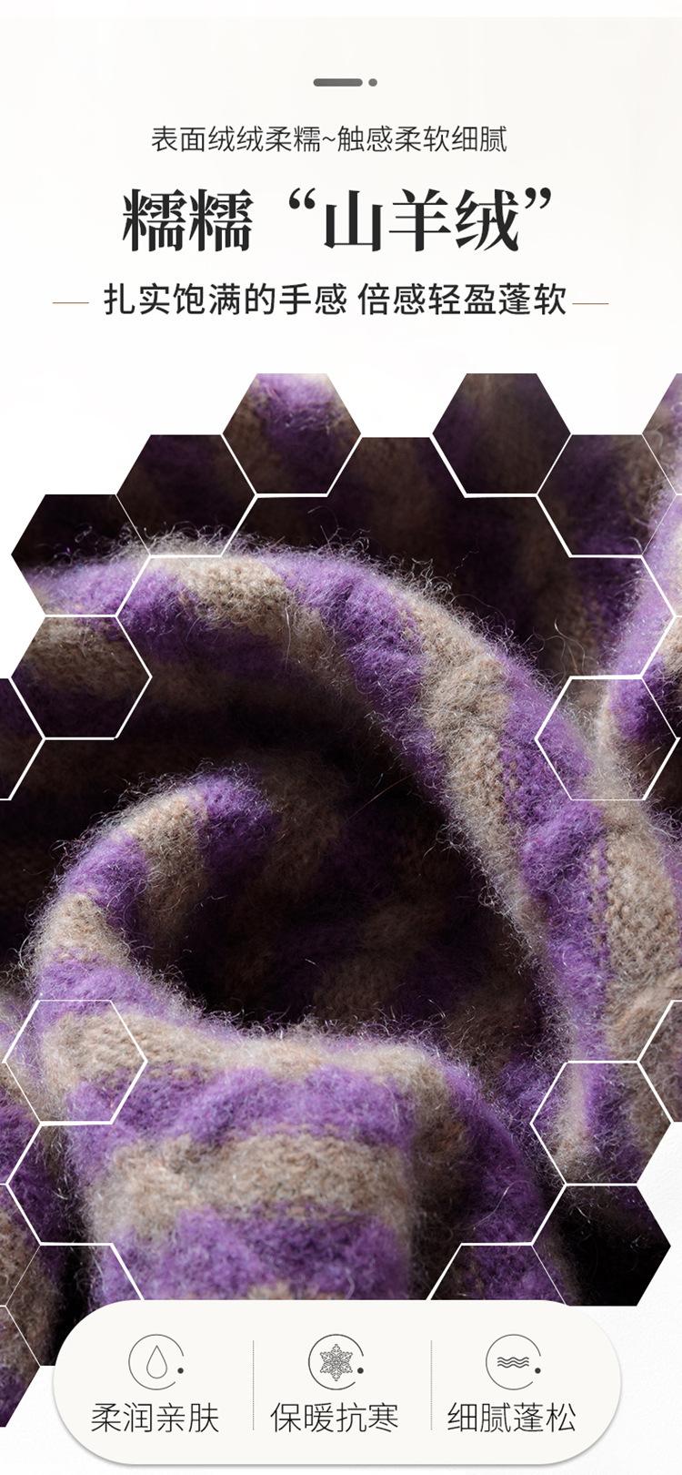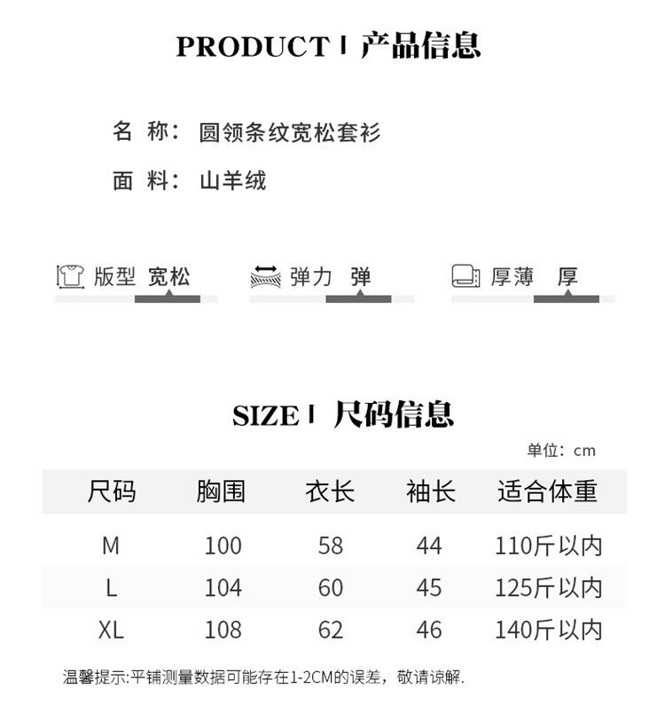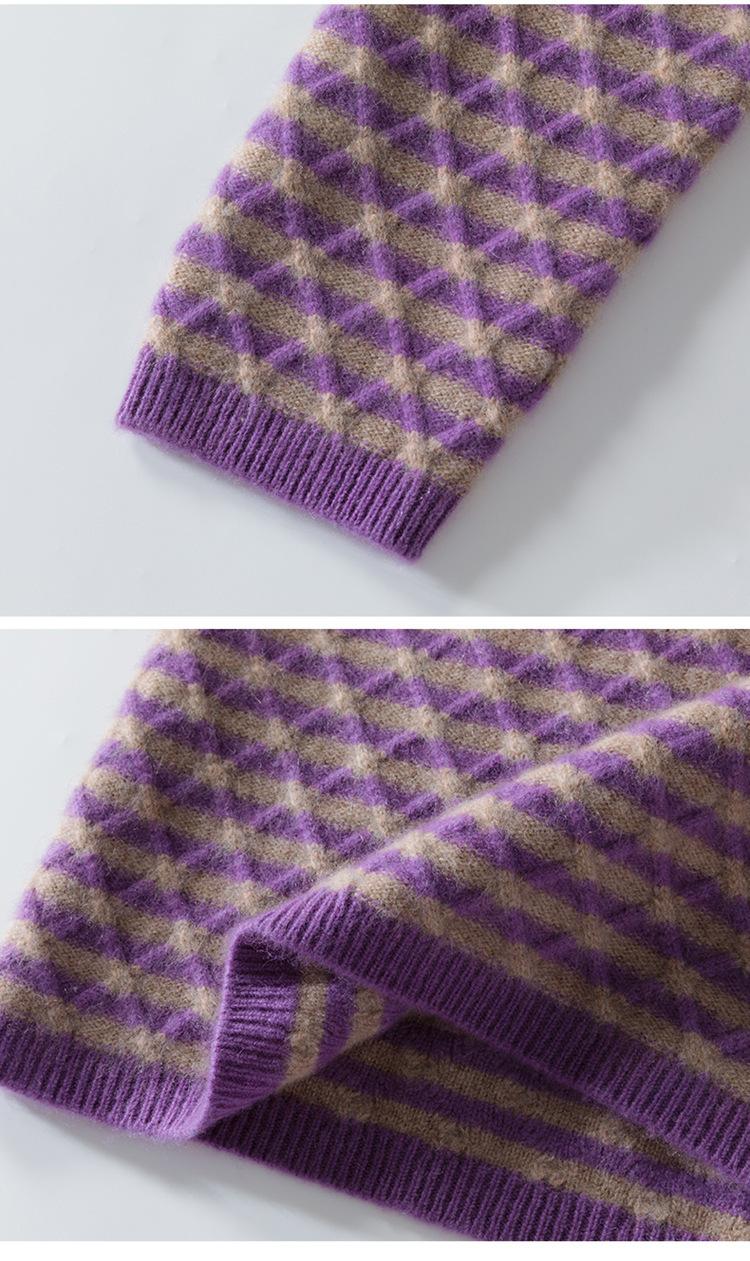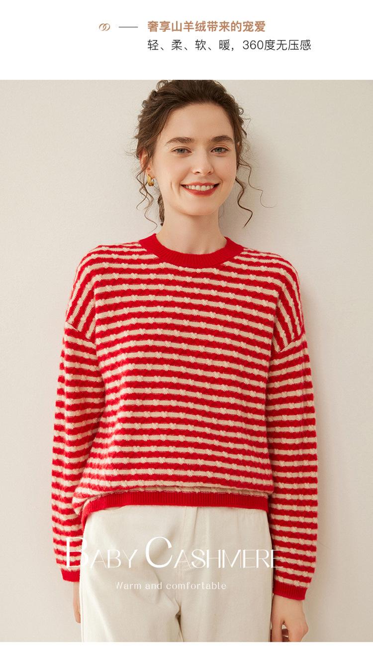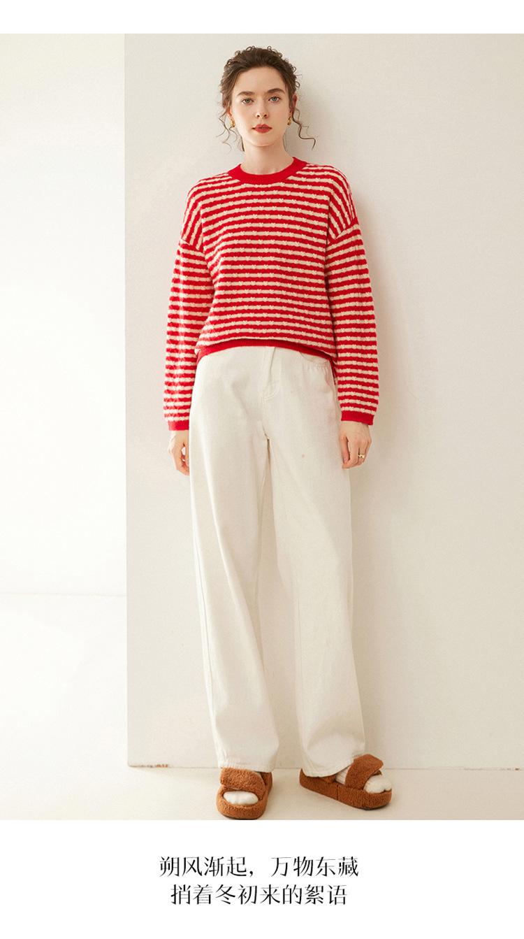 Otoño e Invierno Nuevo Suéter Retro de Cachemira de Cuello Redondo Manga Larga Rayado a Contraste Suave Ceroso Camiseta Base Suéter