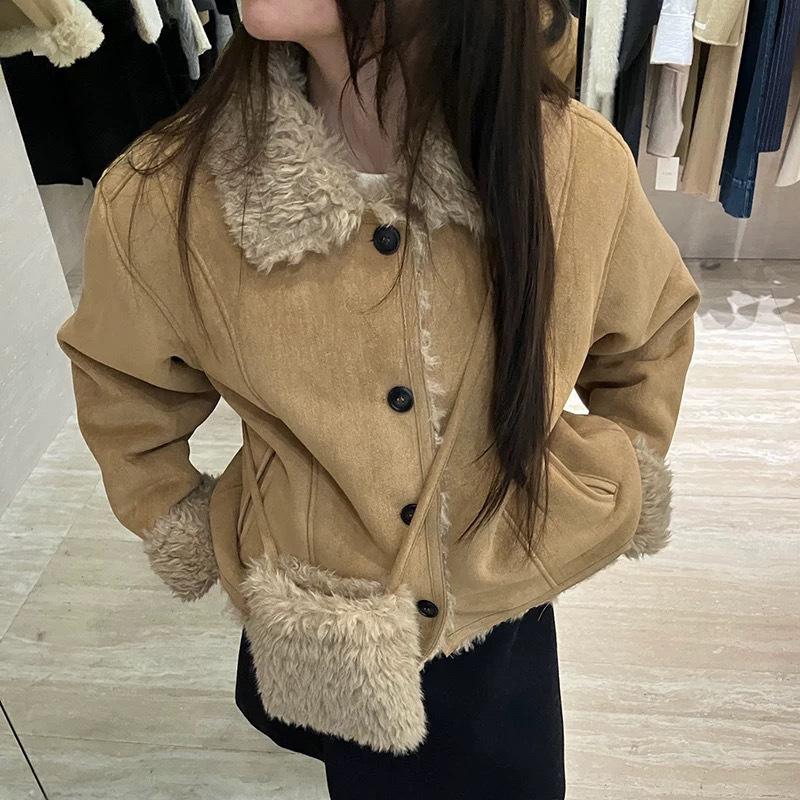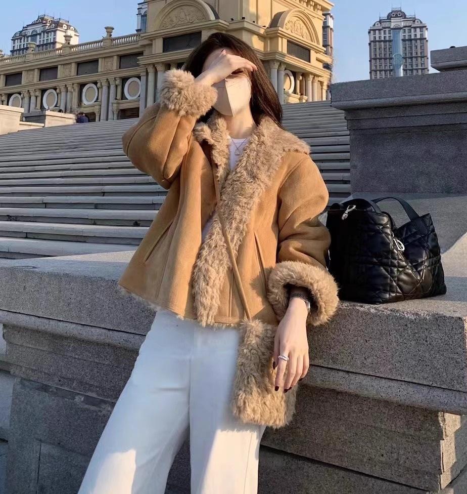 ¡alta calidad! Abrigo de mezclilla retro de lana de cordero estilo coreano para mujer, otoño e invierno, nuevo, moderno, grueso, cálido, temperamental, top