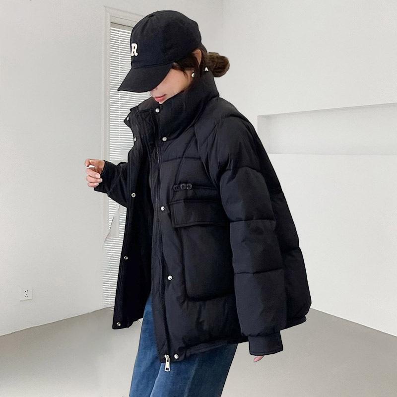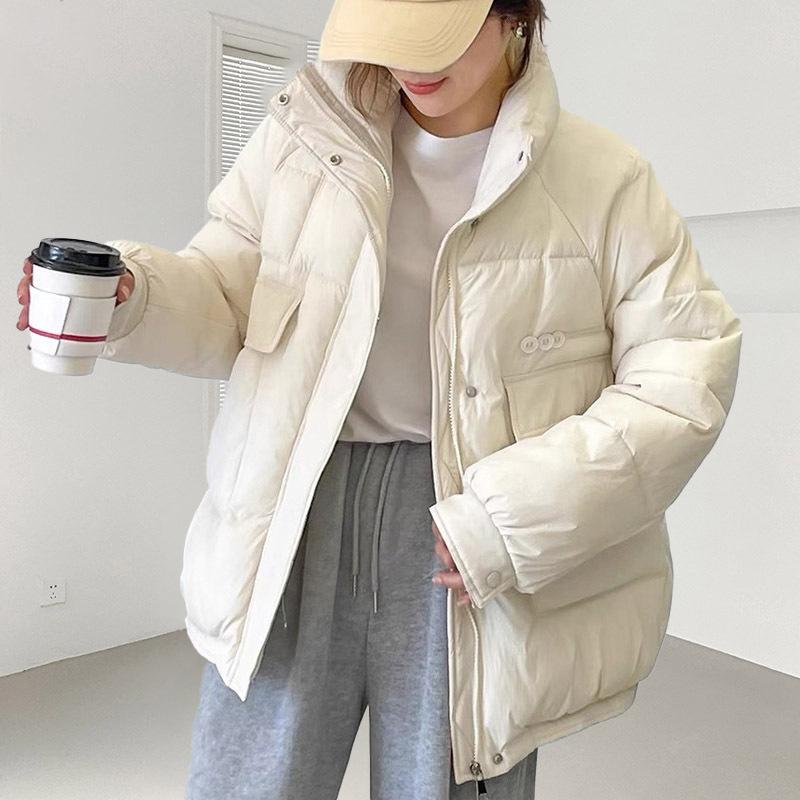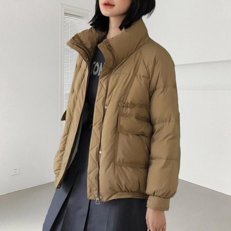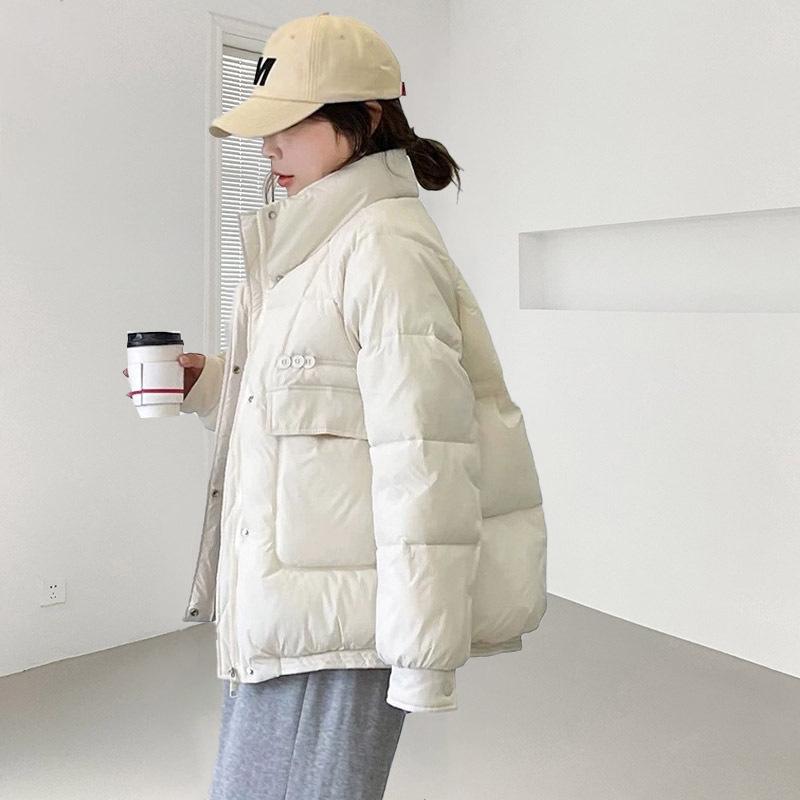 Chamarra corta de plumón en liquidación para mujer, tacto de alta gama, nuevo invierno 2024 estilo coreano, chamarra casual holgada de plumón de pato