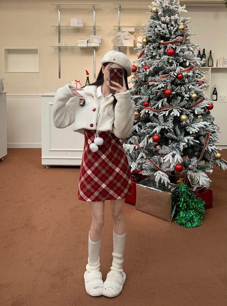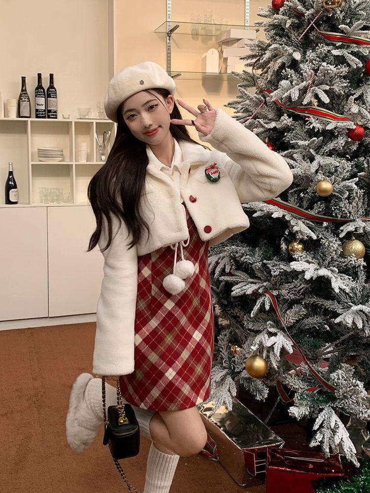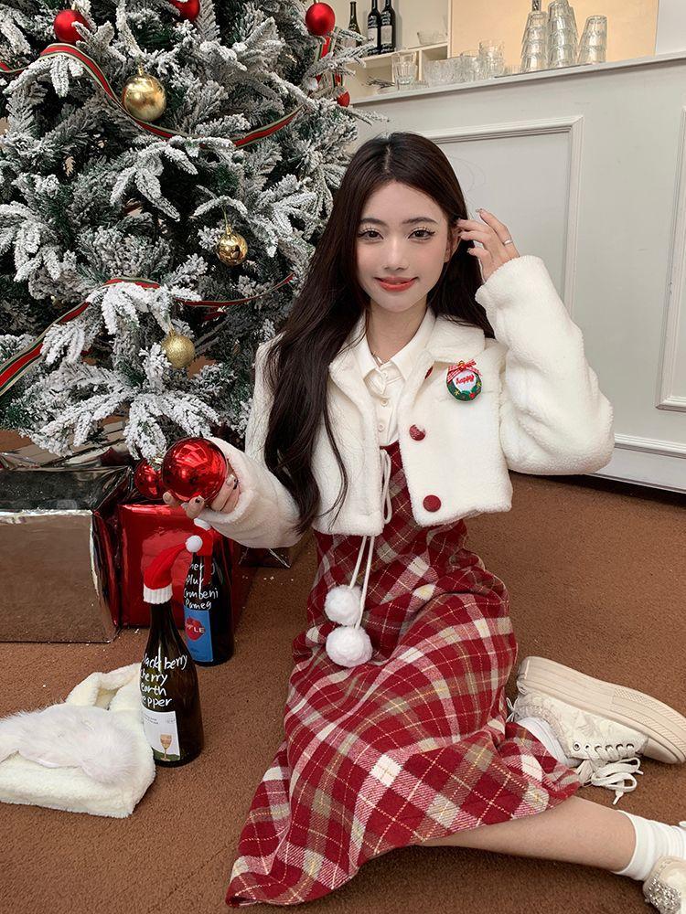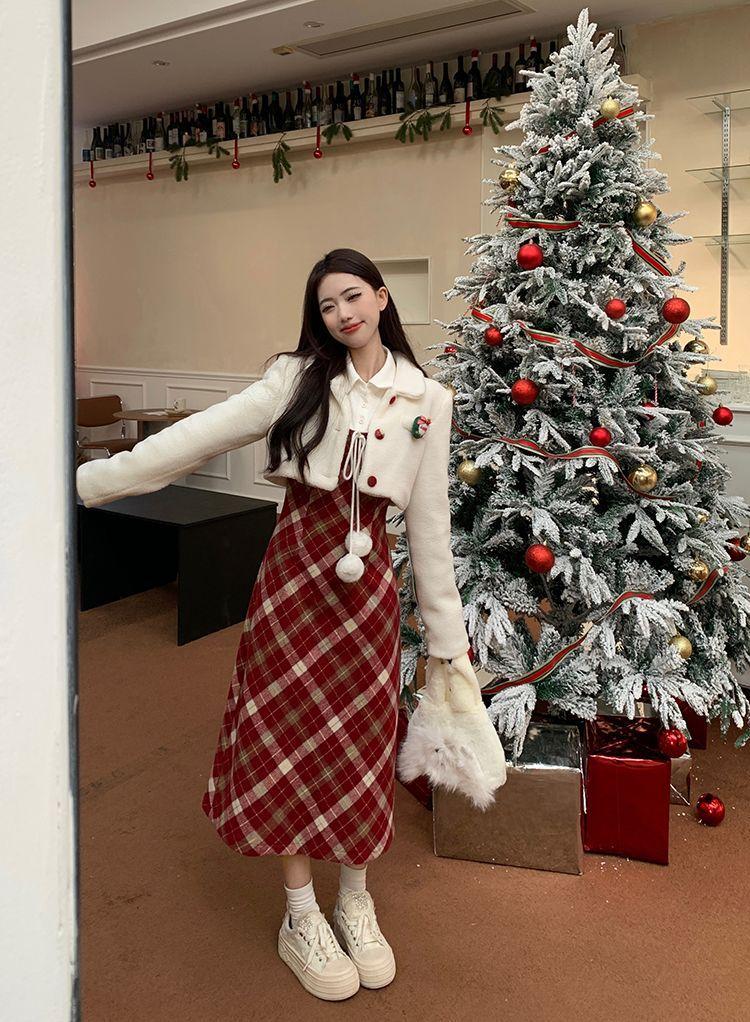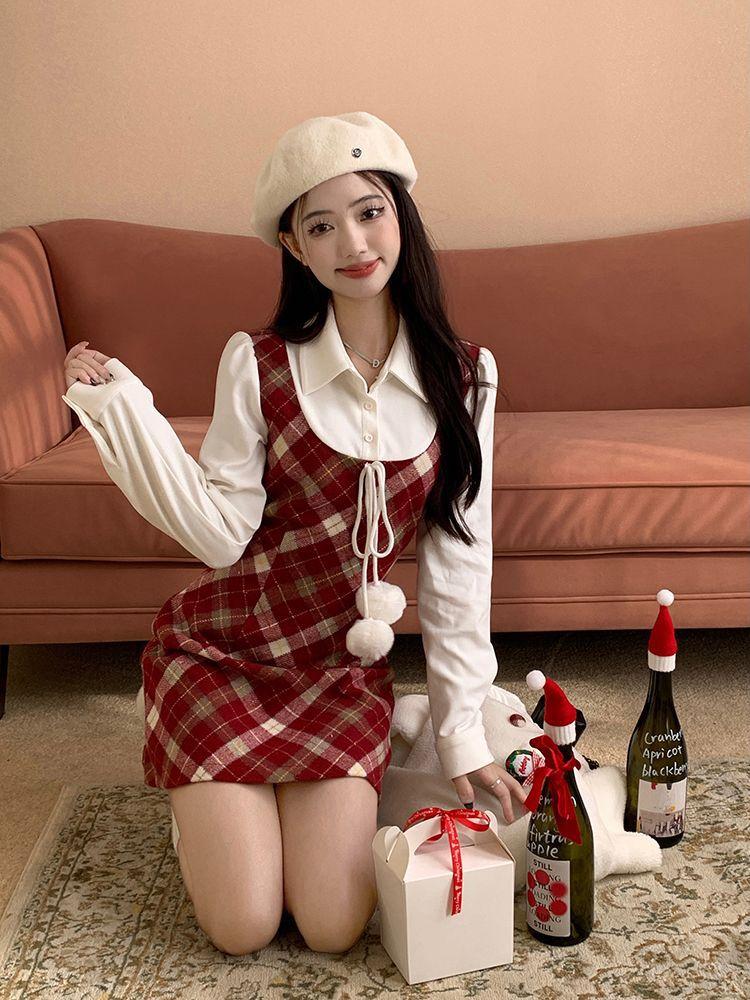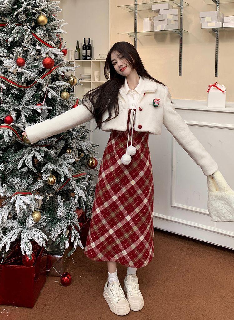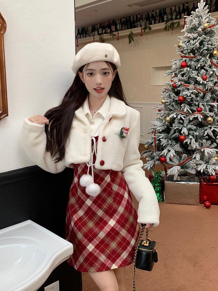 Un Conjunto Completo de Atuendo de Ambiente Navideño, un Traje Vestido de Estilo Fragante Pequeño Rojo de Alta Gama, un Conjunto de Dos Piezas para Mujer para Principios de Primavera