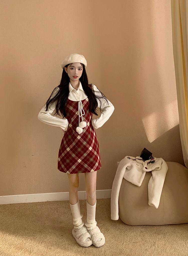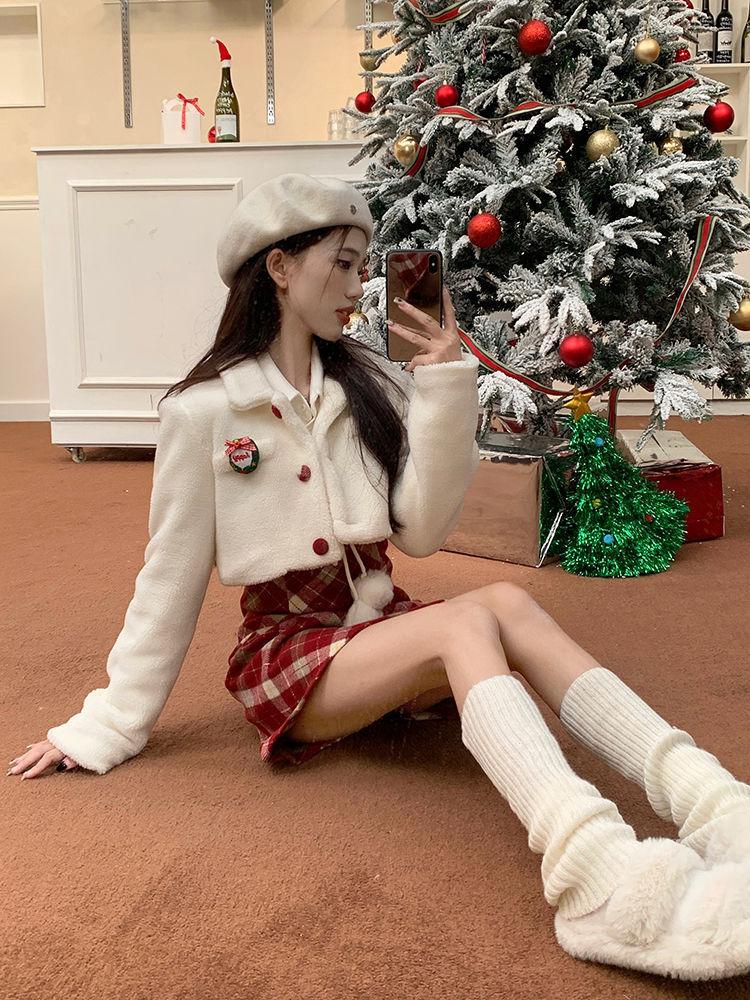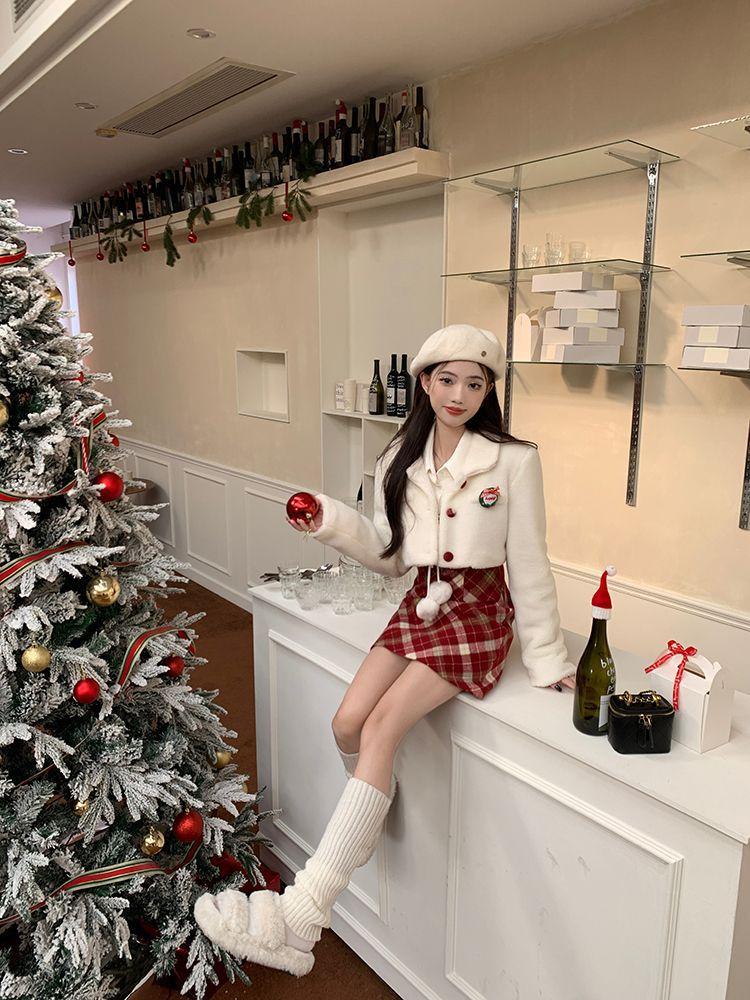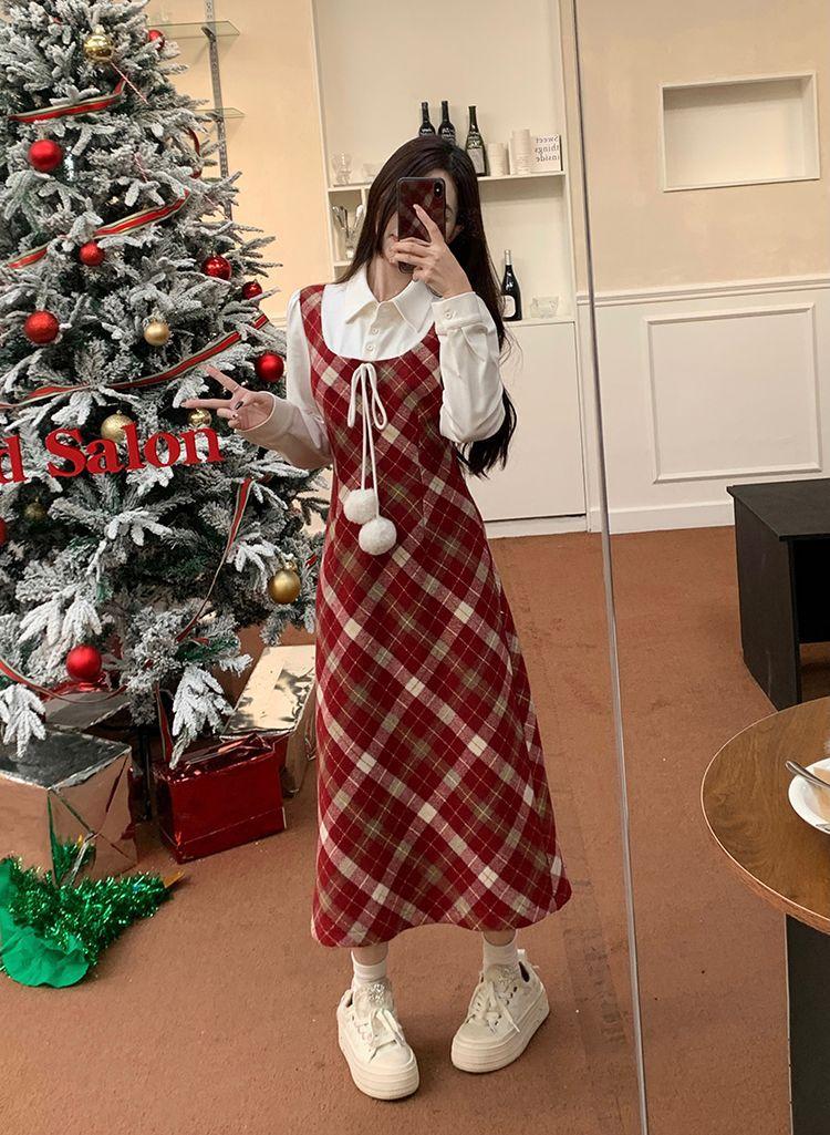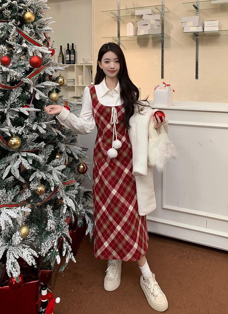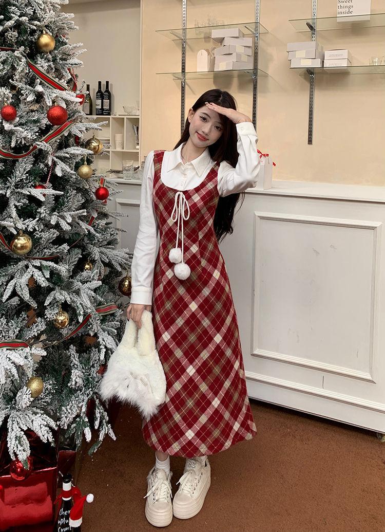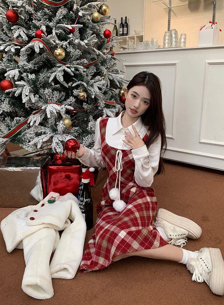 Un Conjunto Completo de Atuendo de Ambiente Navideño, un Traje Vestido de Estilo Fragante Pequeño Rojo de Alta Gama, un Conjunto de Dos Piezas para Mujer para Principios de Primavera
