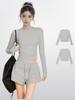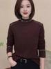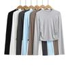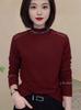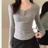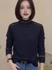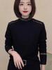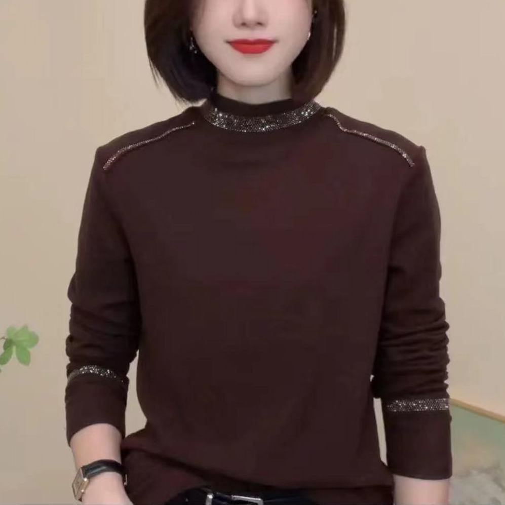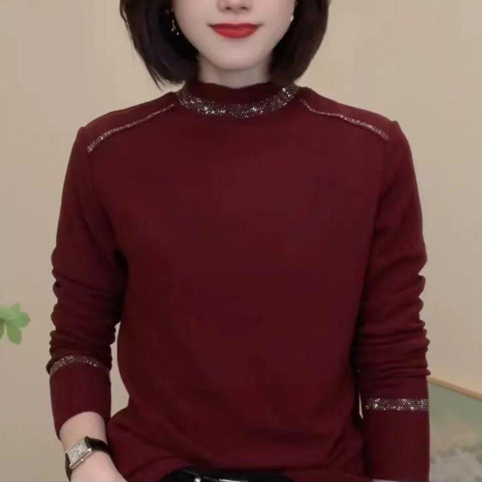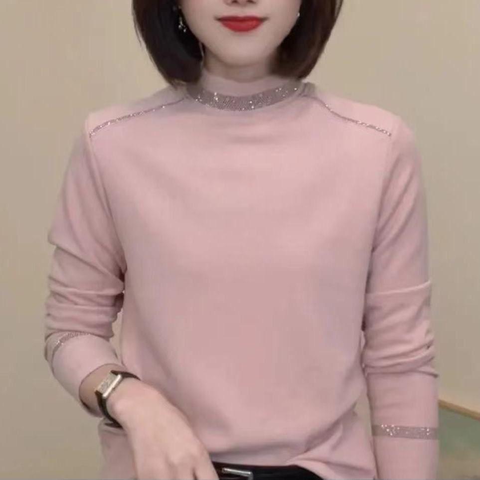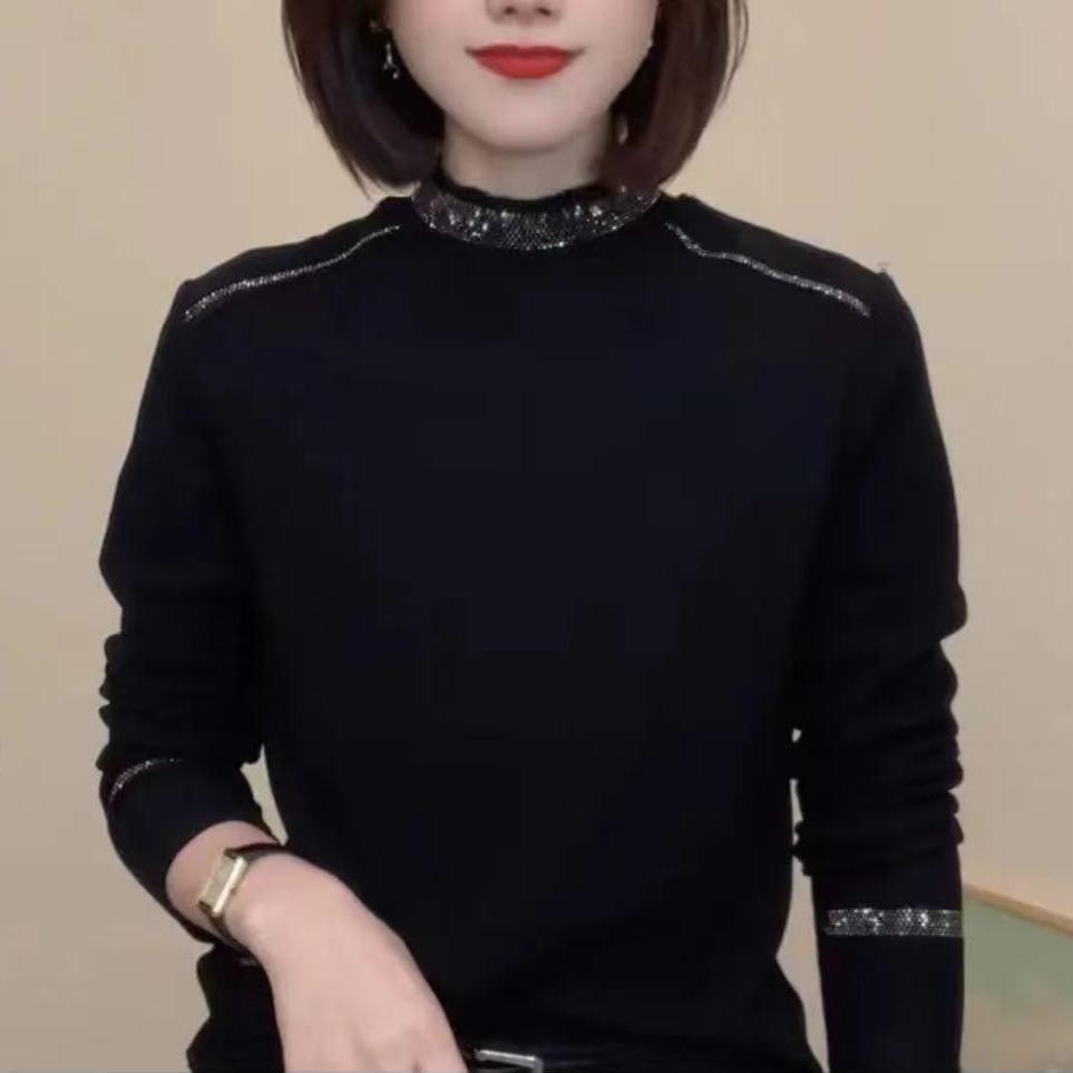 Camiseta de manga larga informal ajustada con diseño de temperamento a la moda con diamantes de imitación de color sólido para otoño e invierno para mujer