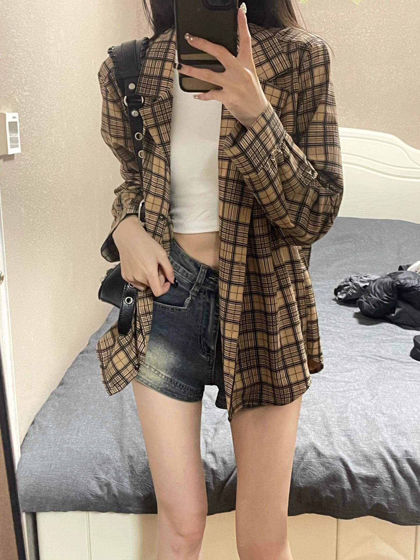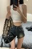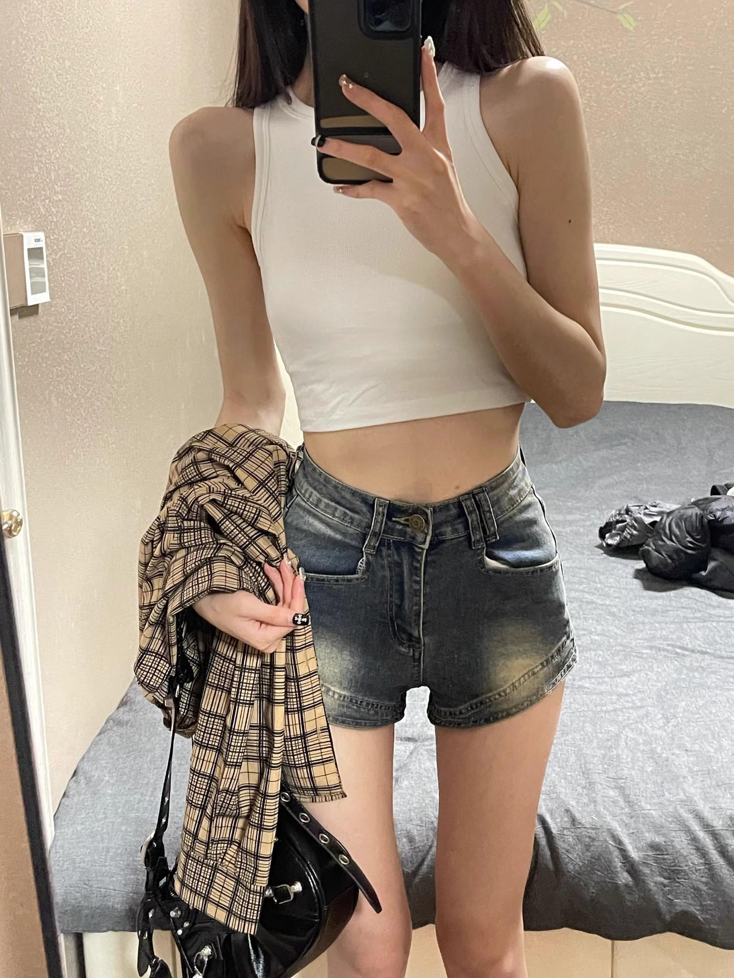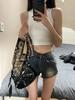 Pantalones vaqueros de cintura alta estilo retro americano para mujer, novedad de verano 2024, pantalones cortos de estilo chic con diseño dulce y picante.