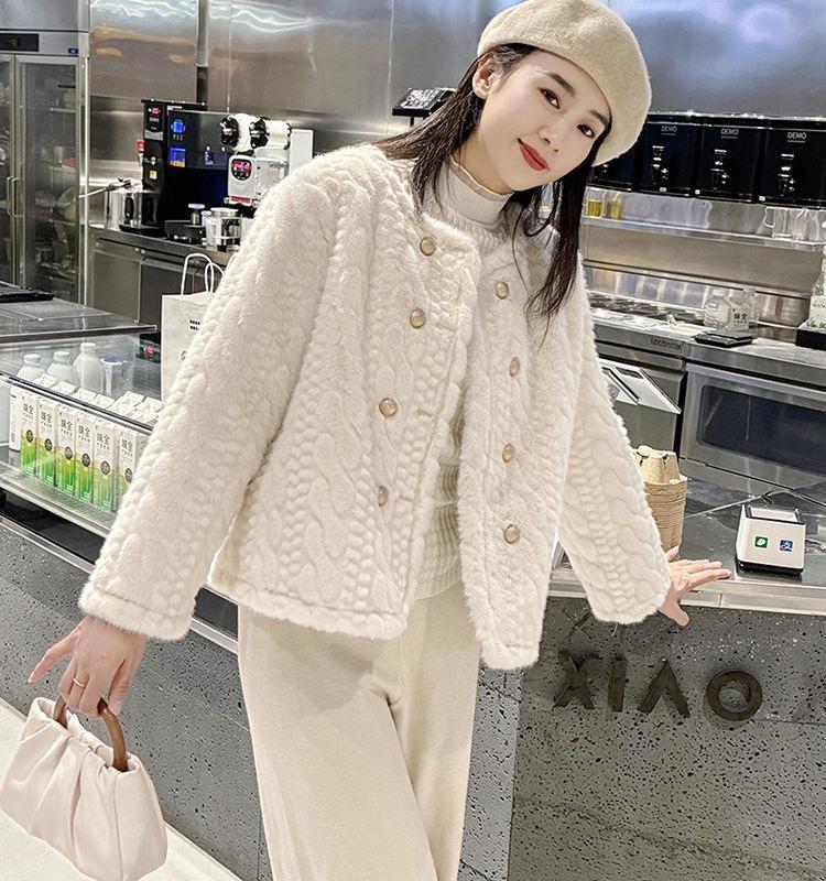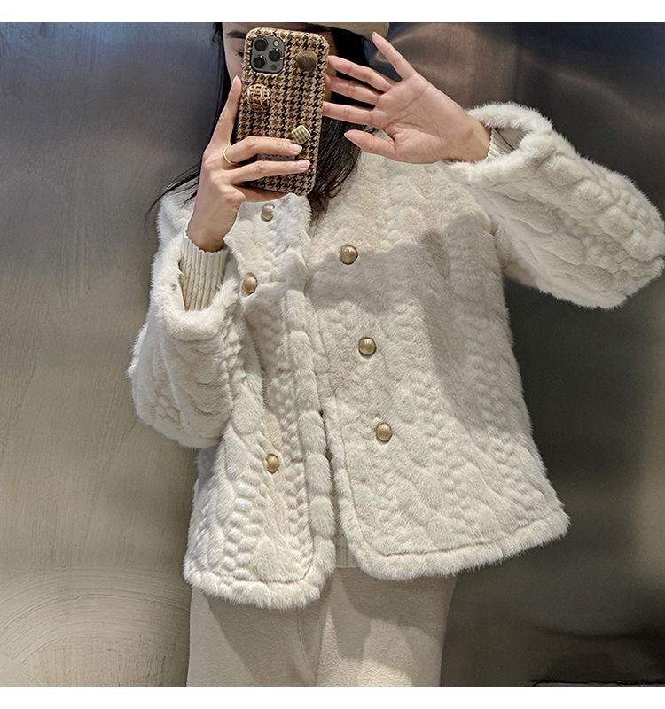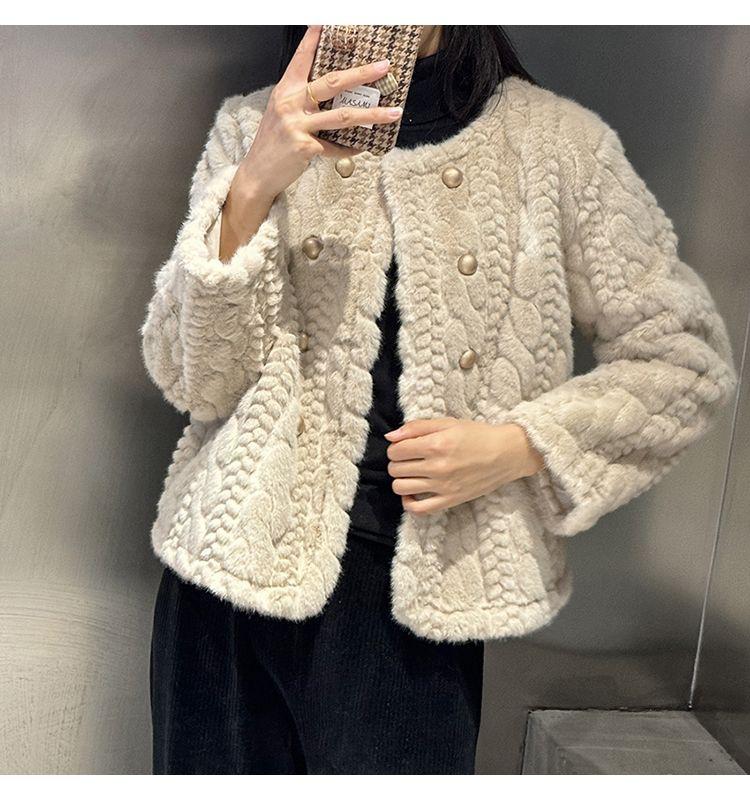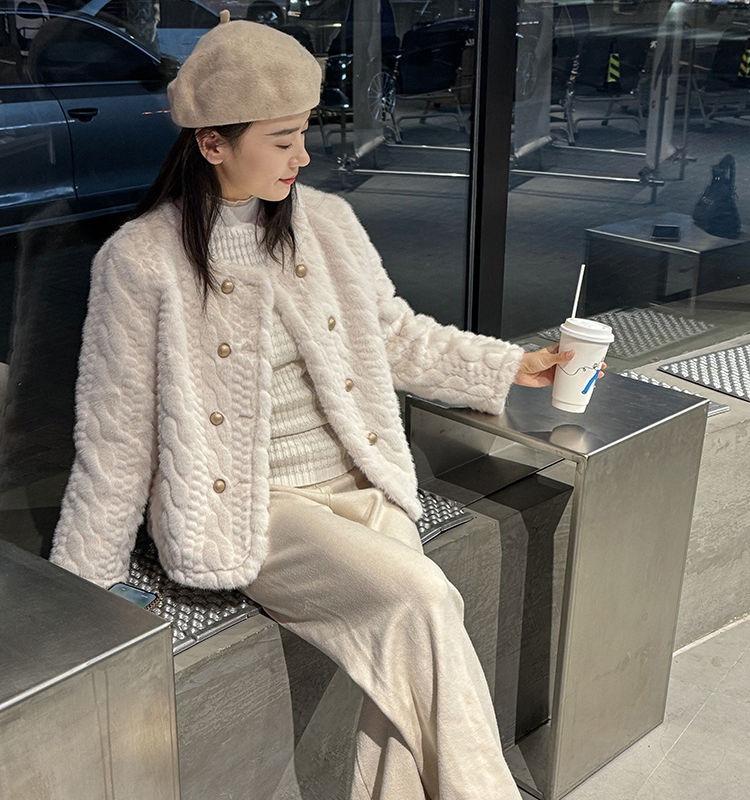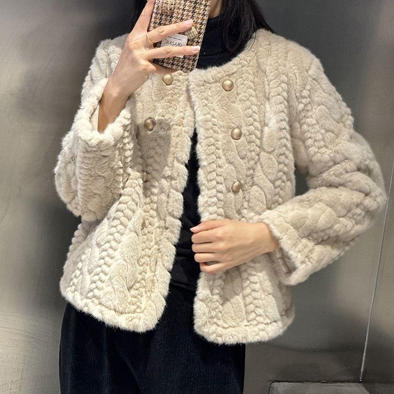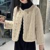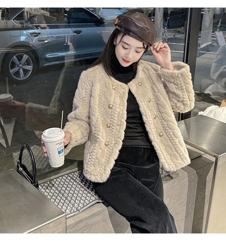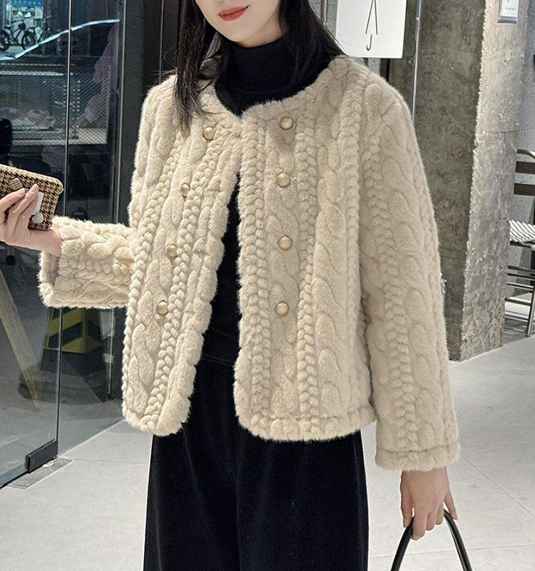 Chaqueta de Piel de Visón Imitación de Estilo Nuevo de Primavera y Otoño 2025 para Mujer, Corta, de Algodón Grueso, Cuello Redondo, Chaqueta de Piel de Fragancia Pequeña