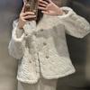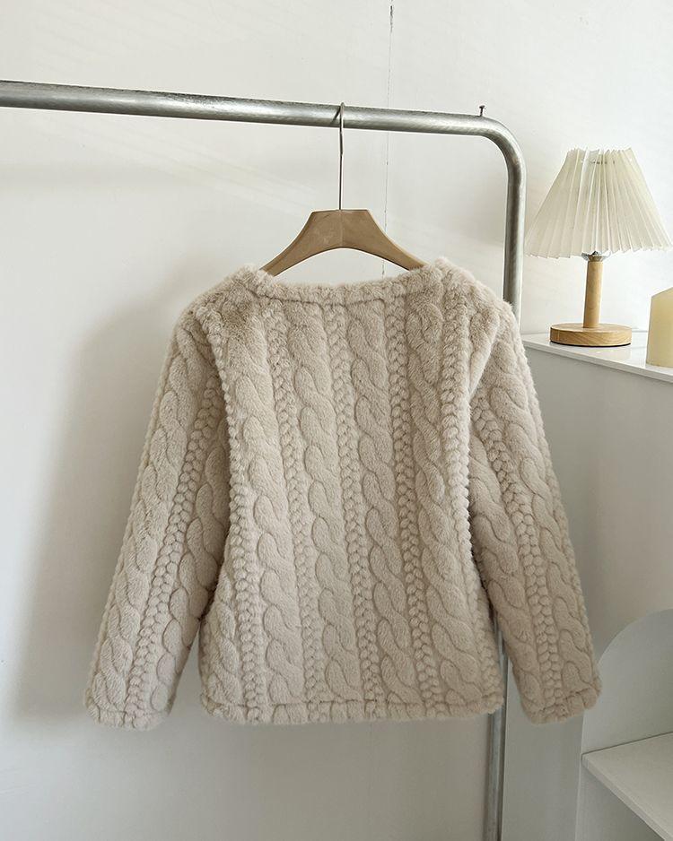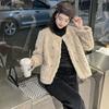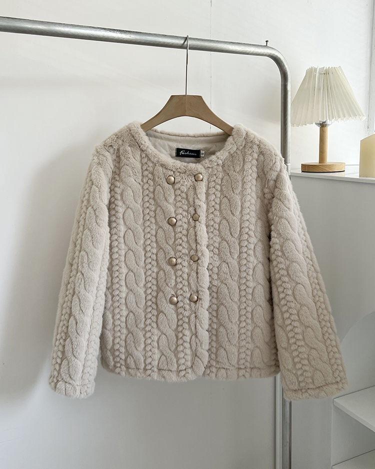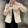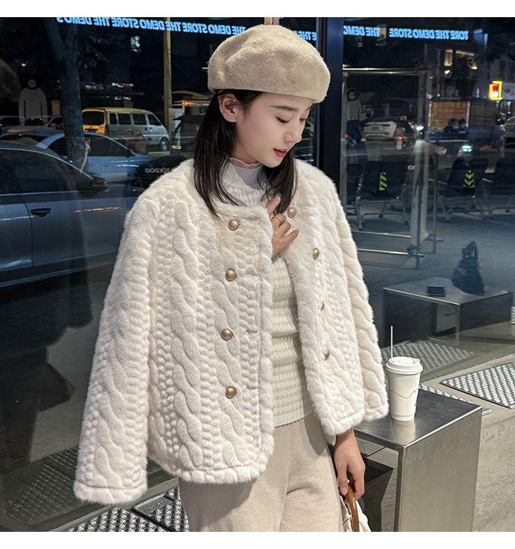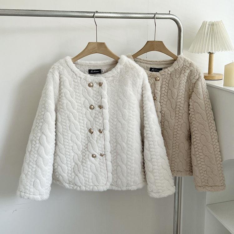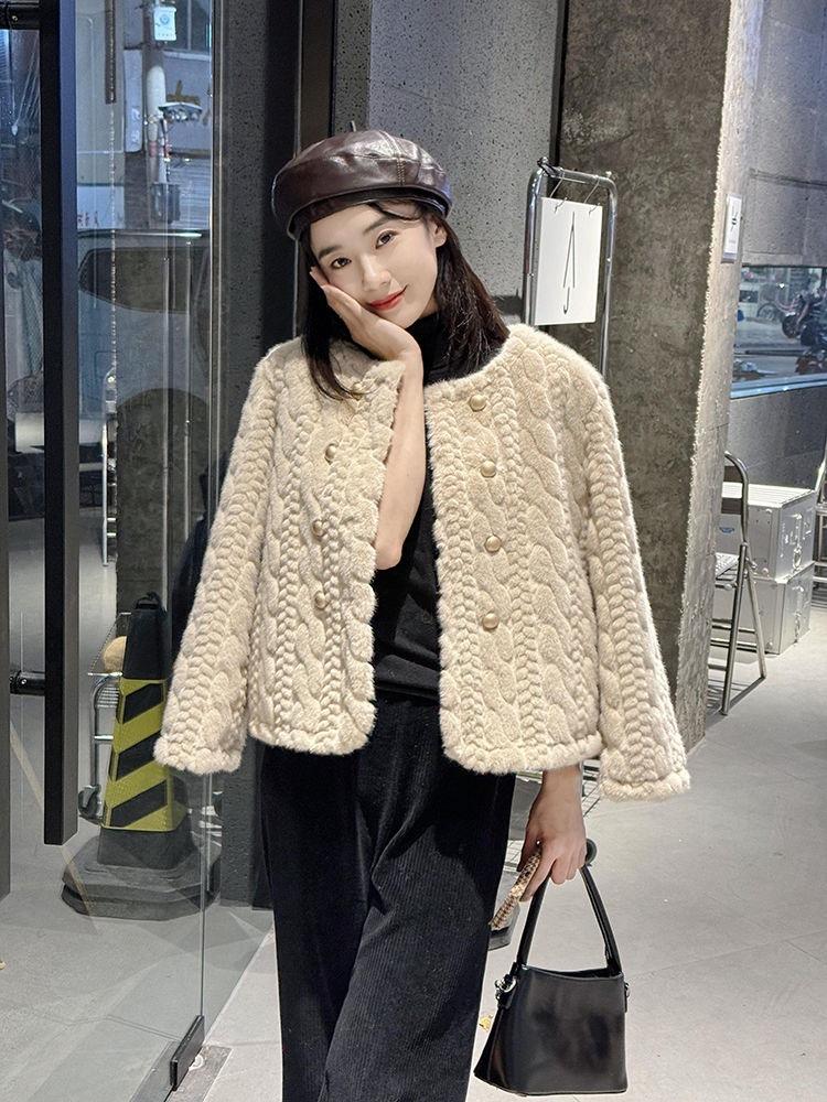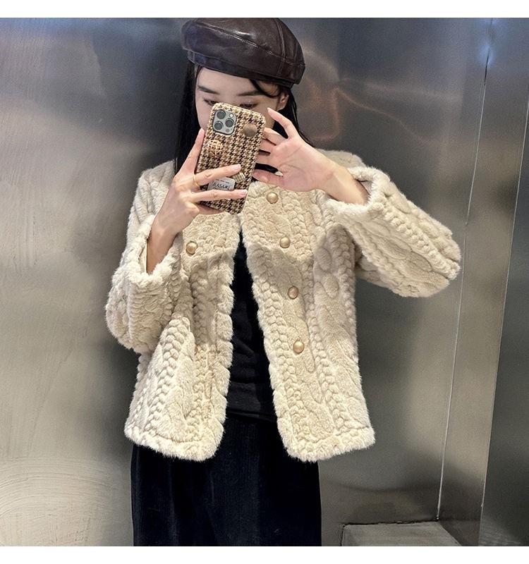 Chaqueta de Piel de Visón Imitación de Estilo Nuevo de Primavera y Otoño 2025 para Mujer, Corta, de Algodón Grueso, Cuello Redondo, Chaqueta de Piel de Fragancia Pequeña