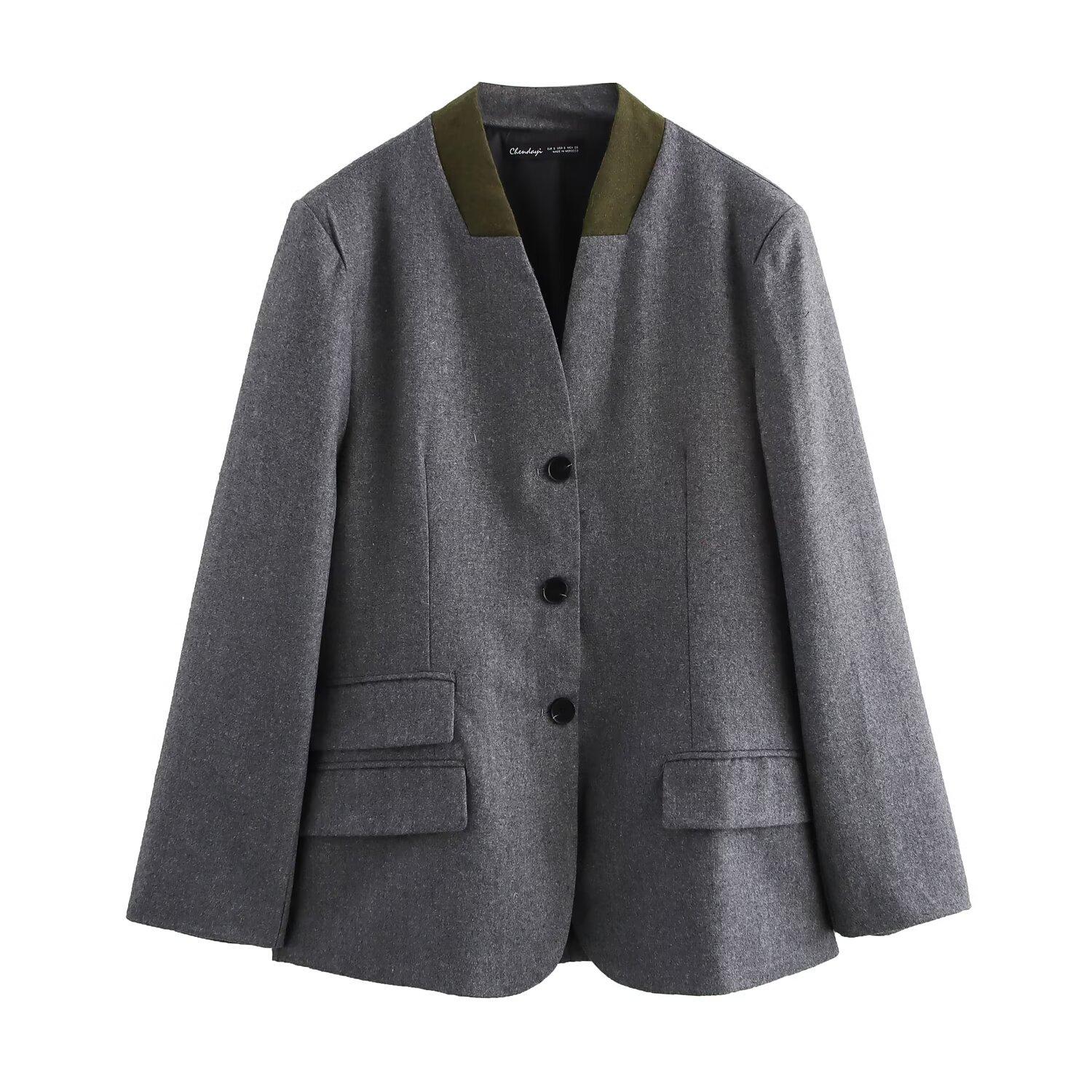 Chaqueta de traje de color sólido de estilo europeo y americano para mujer europea y americana de comercio exterior transfronterizo de Amazon, otoño e invierno de 2024
