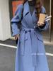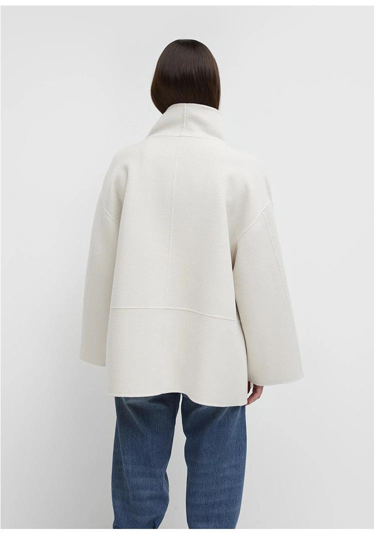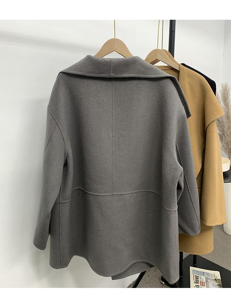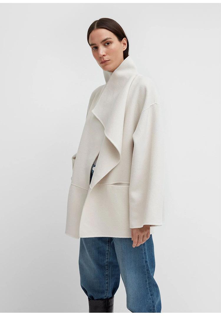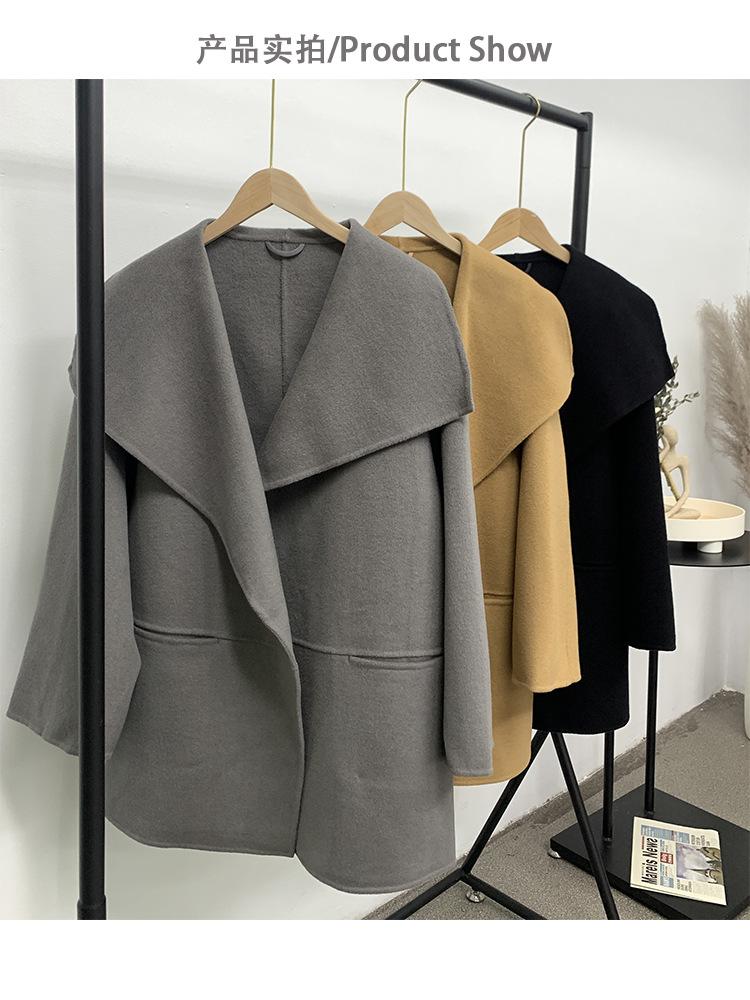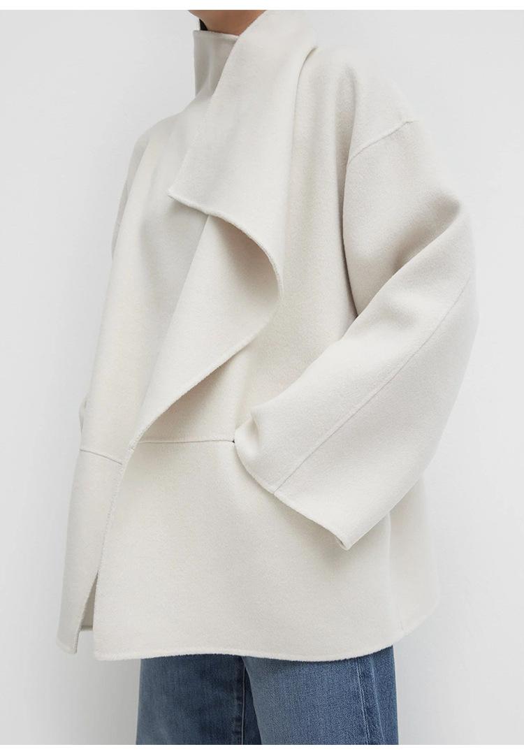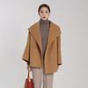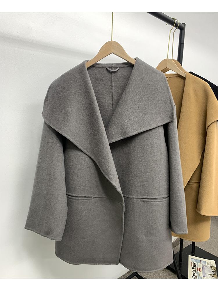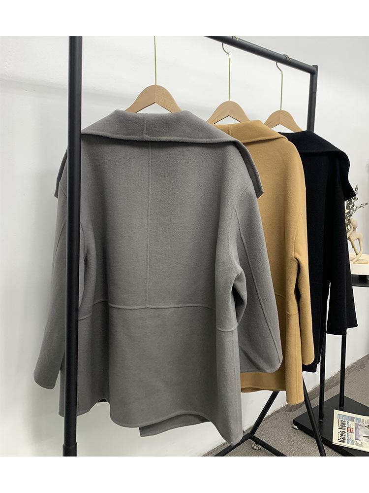 Abrigo de lana de doble cara con solapa grande de estilo nórdico para mujer, abrigo de lana de solapa grande holgado de longitud media para otoño e invierno.