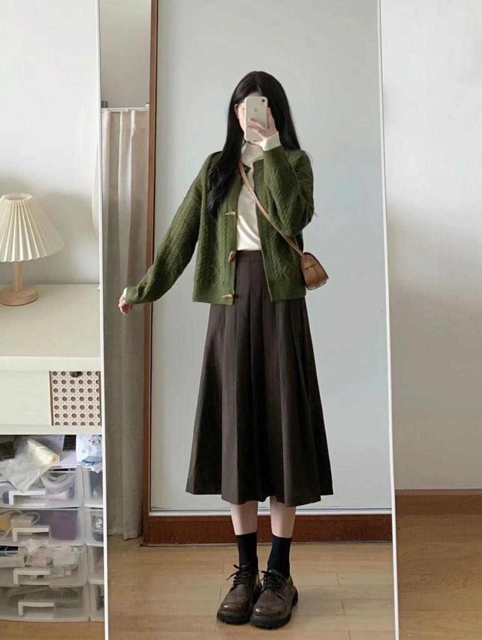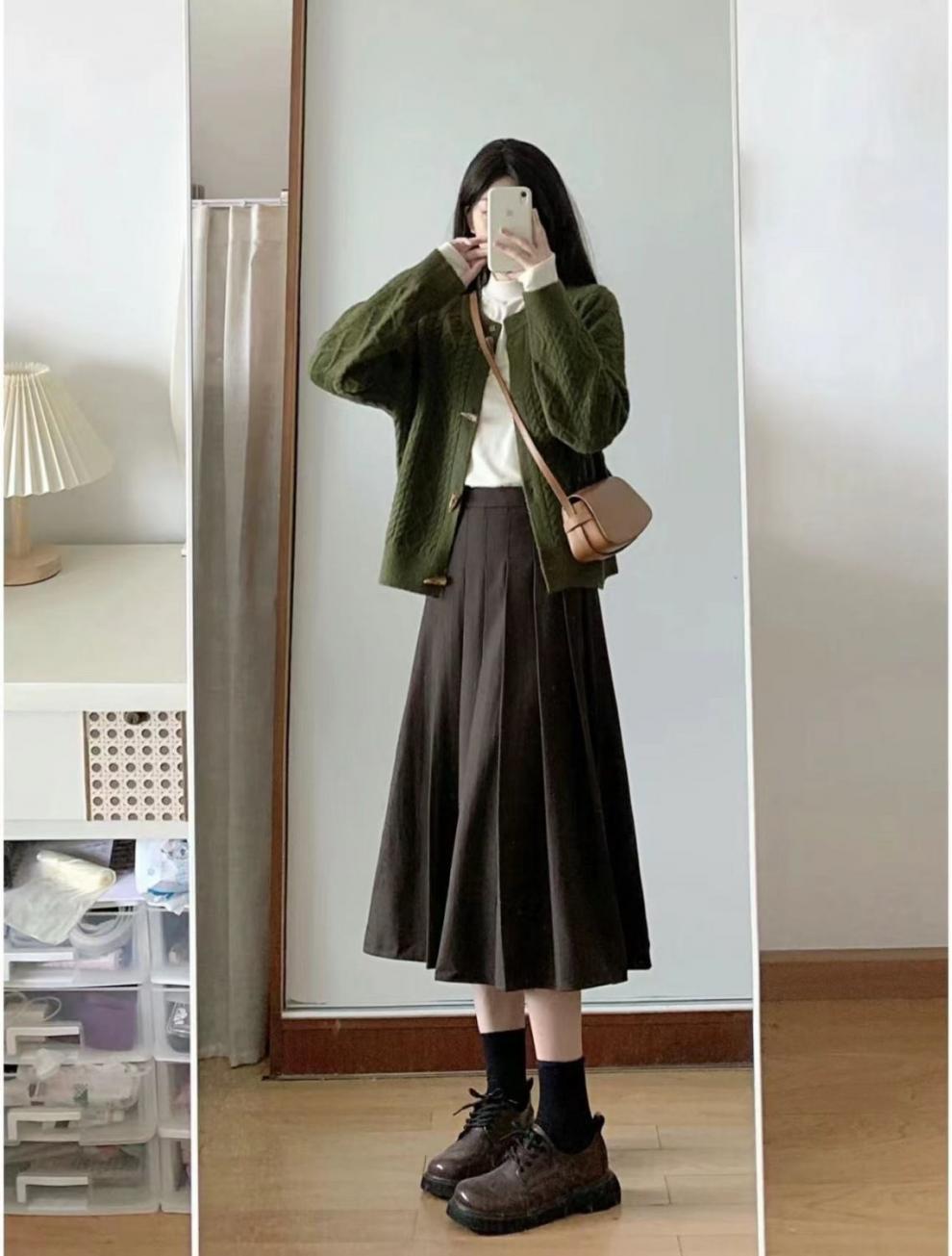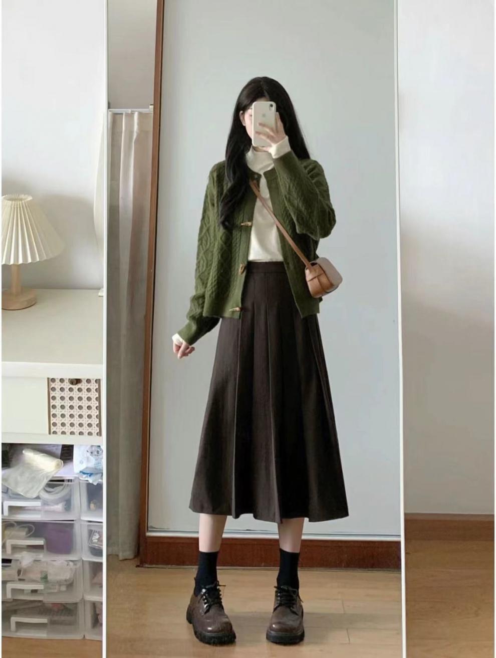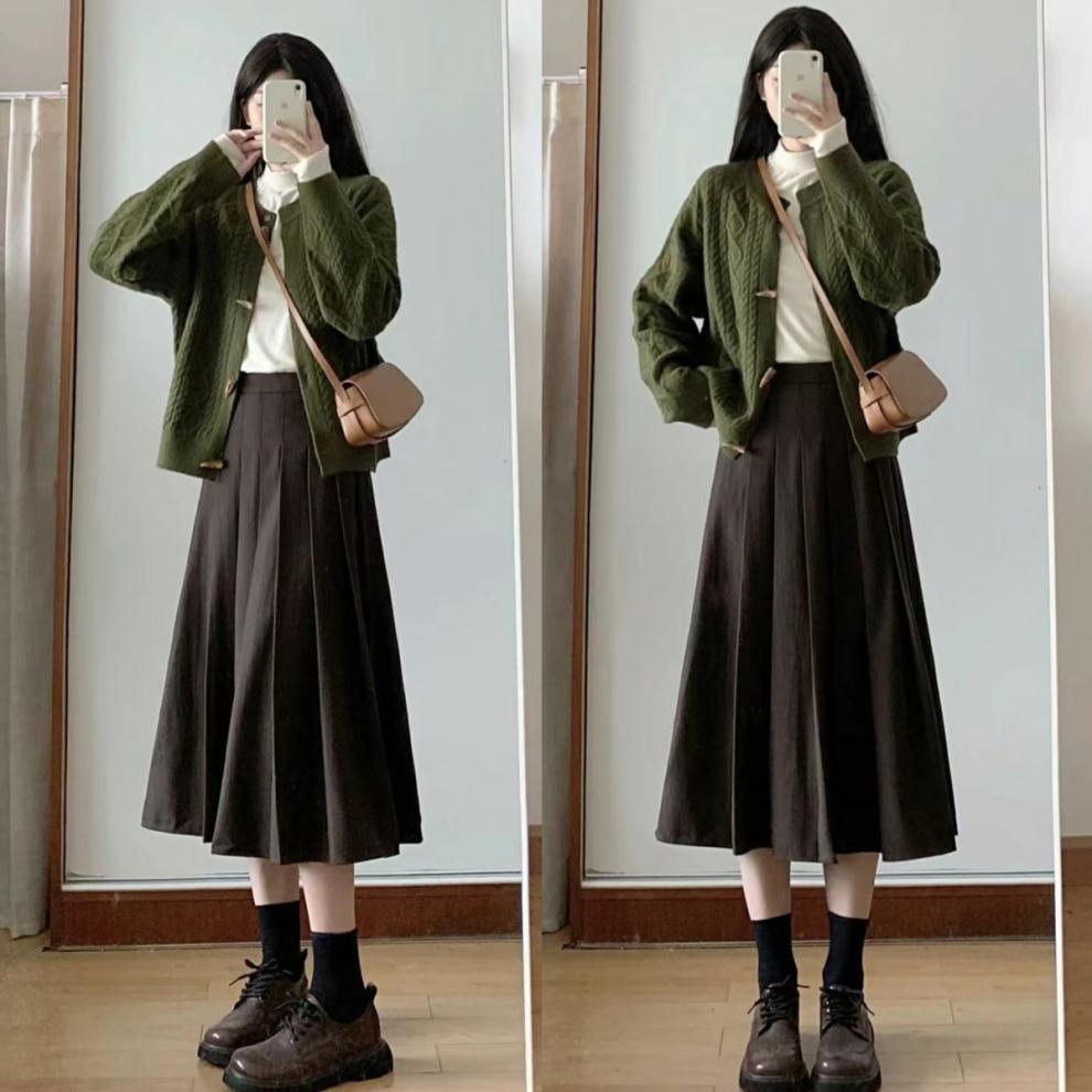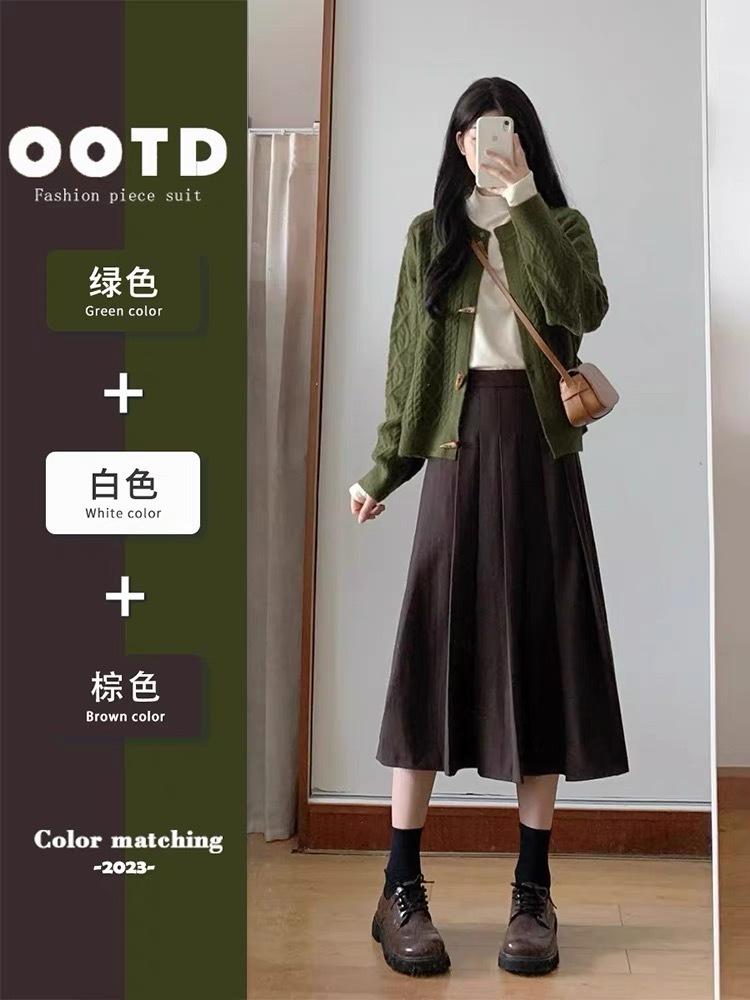 Cardigan + inner layer + skirt [three-piece set], Cardigan + inner wear [two-piece set], Knitted cardigan [sin...