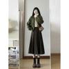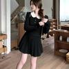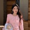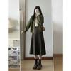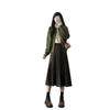 Departamento de té usa un conjunto de primavera y otoño nuevo con hebilla de cuerno, suéter de punto, falda, conjunto de tres piezas, estilo callejero frito ligero