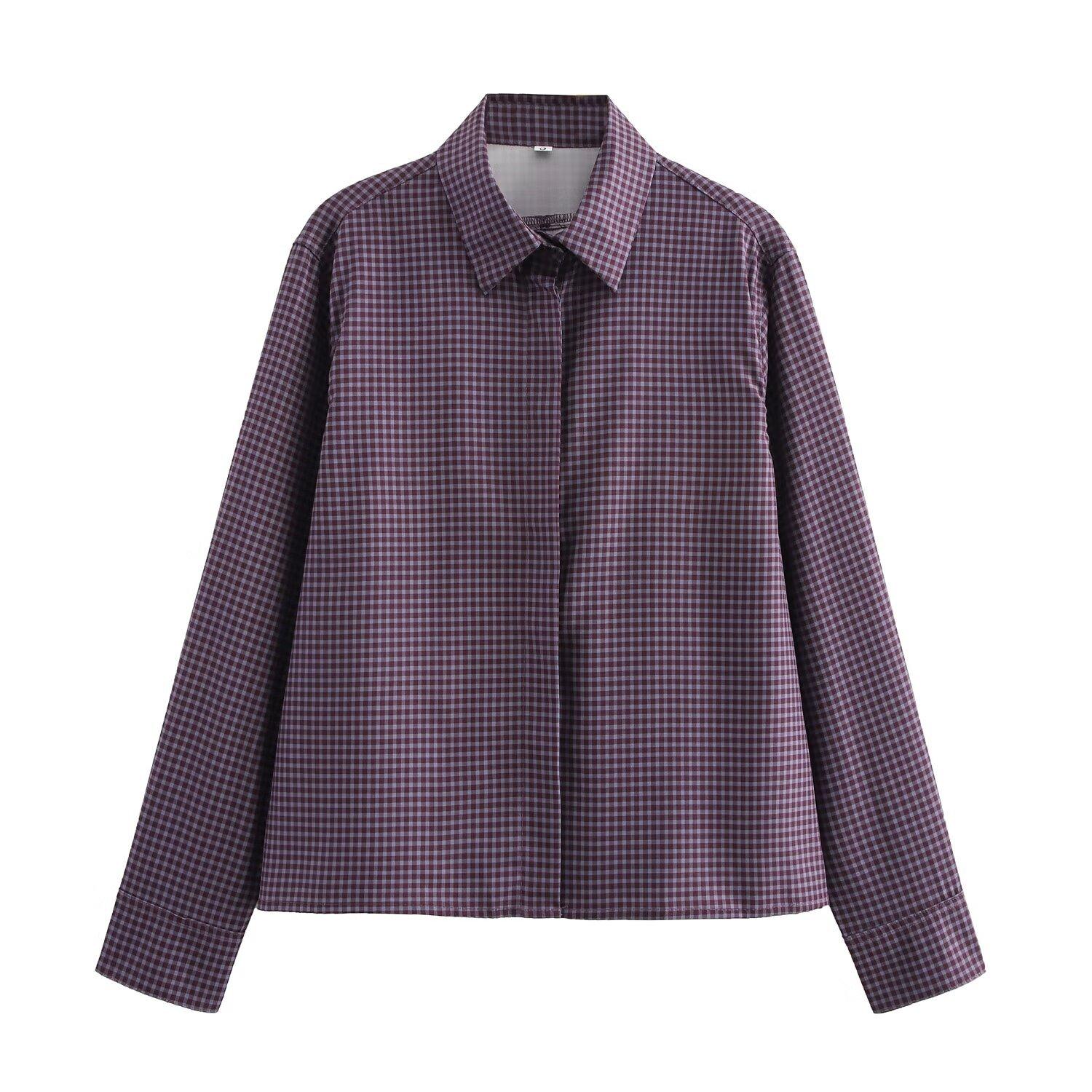 Camisa a cuadros informal de moda urbana para mujer europea y americana de comercio exterior transfronterizo de Amazon, otoño e invierno de 2024