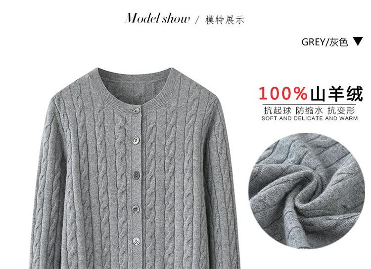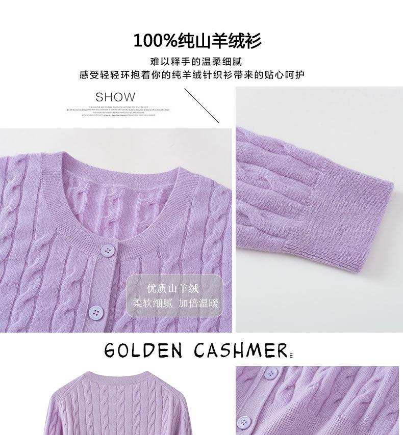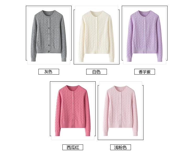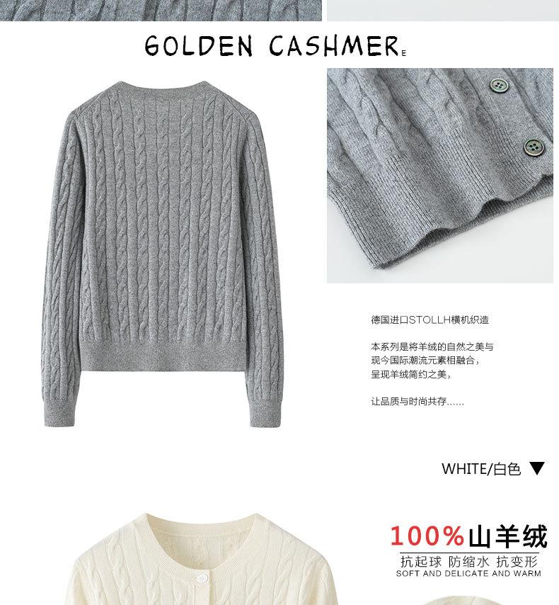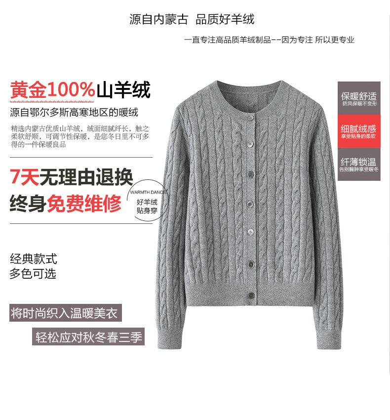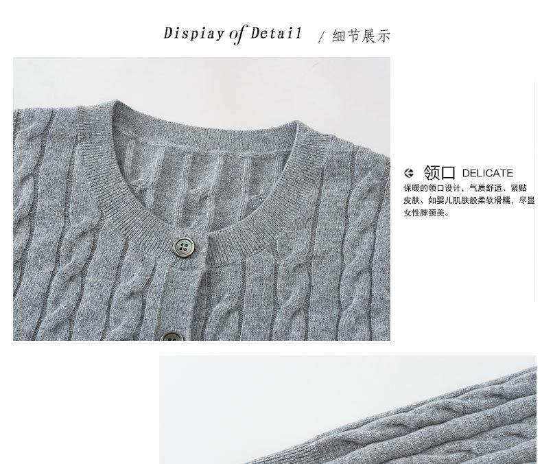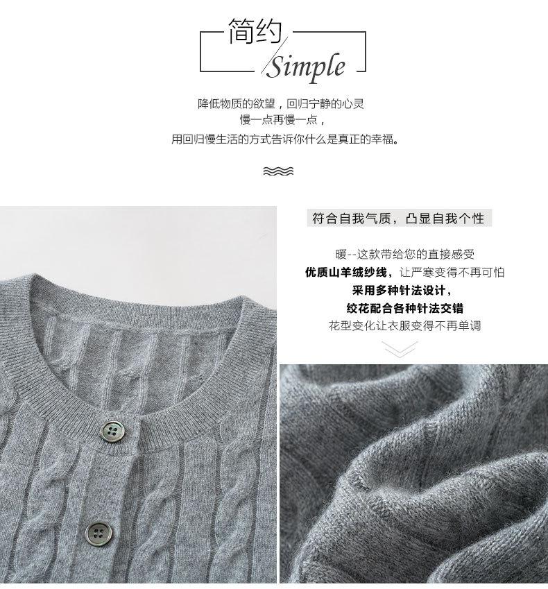 Cárdigan 100% Cachemira Pura Chaqueta Tejida Trenzada Suéter Cuello Redondo Moda Simple Versátil Elegante Suéter de Cachemira para Mujer