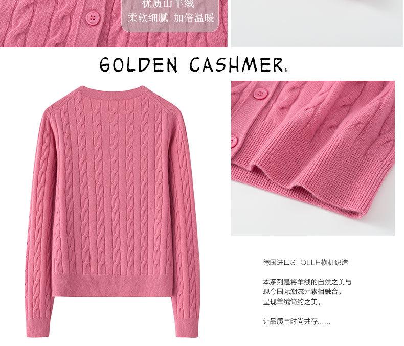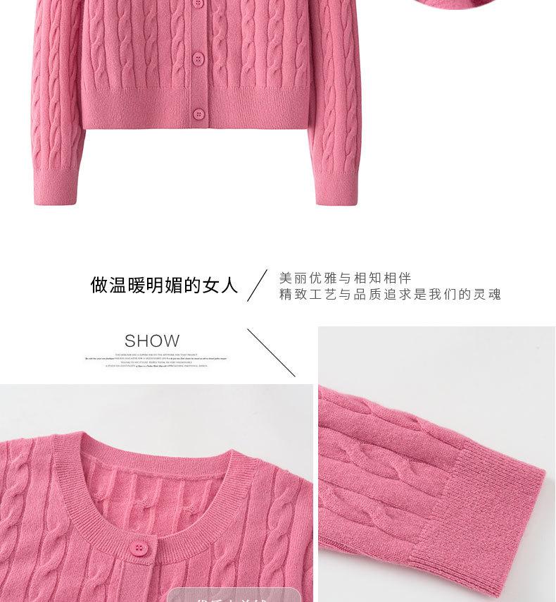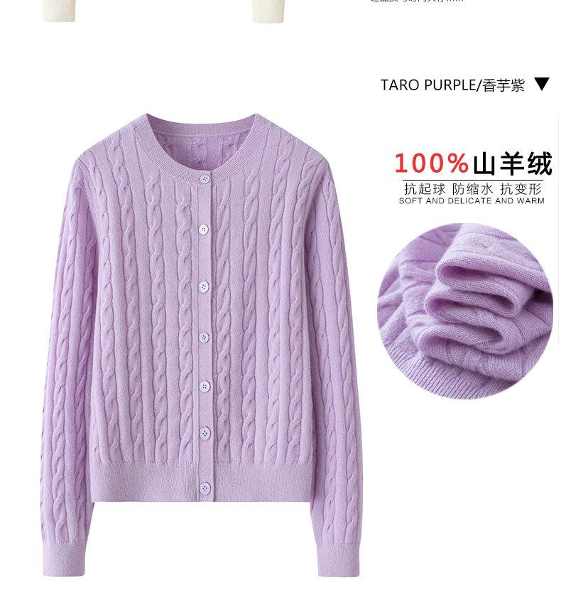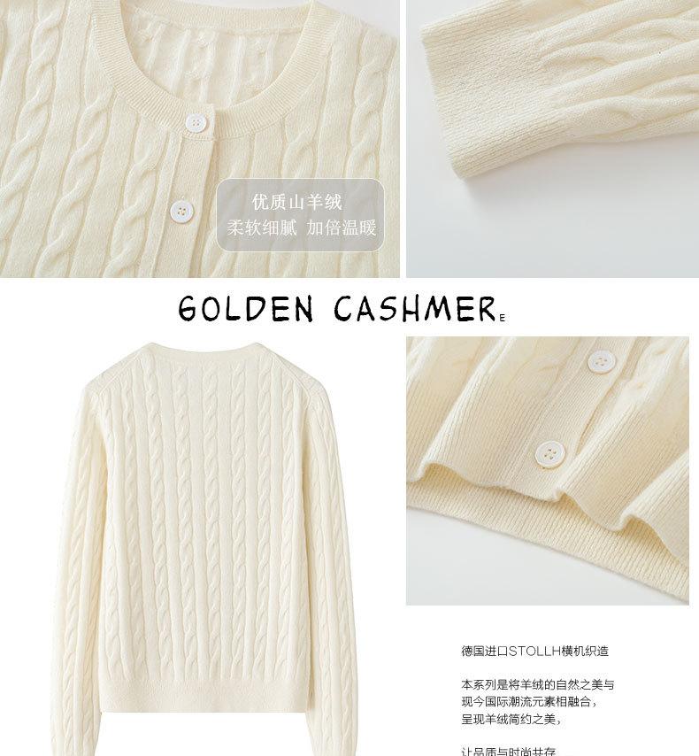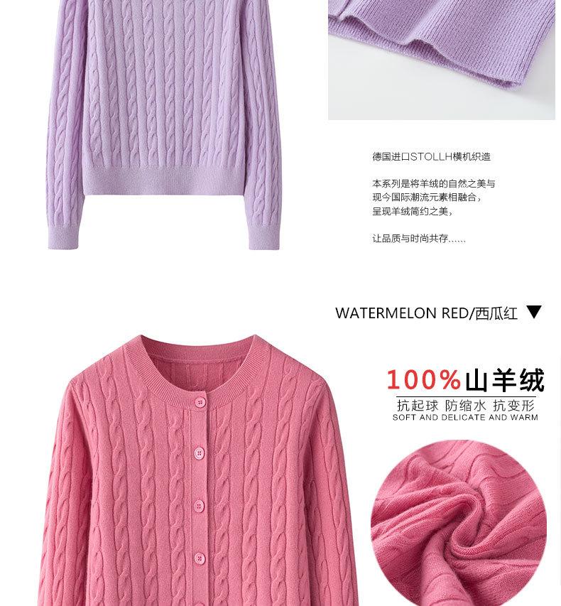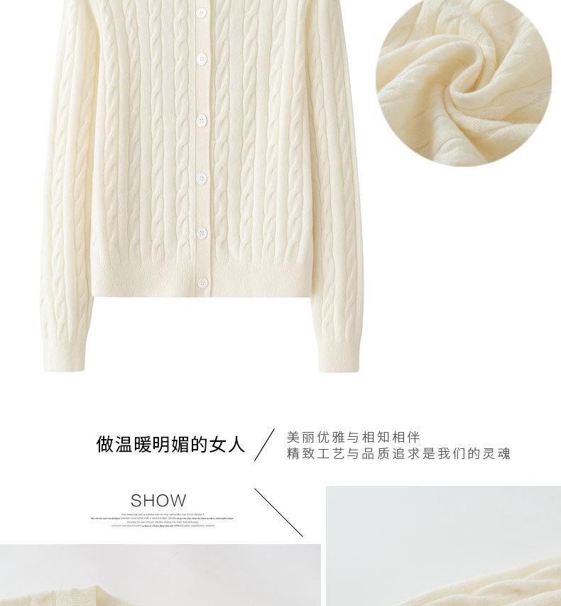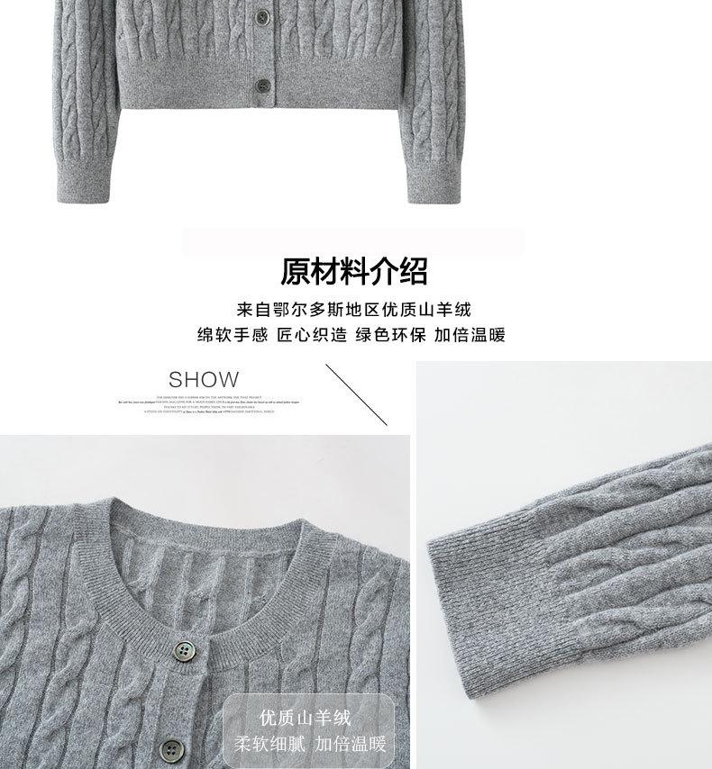 Cárdigan 100% Cachemira Pura Chaqueta Tejida Trenzada Suéter Cuello Redondo Moda Simple Versátil Elegante Suéter de Cachemira para Mujer
